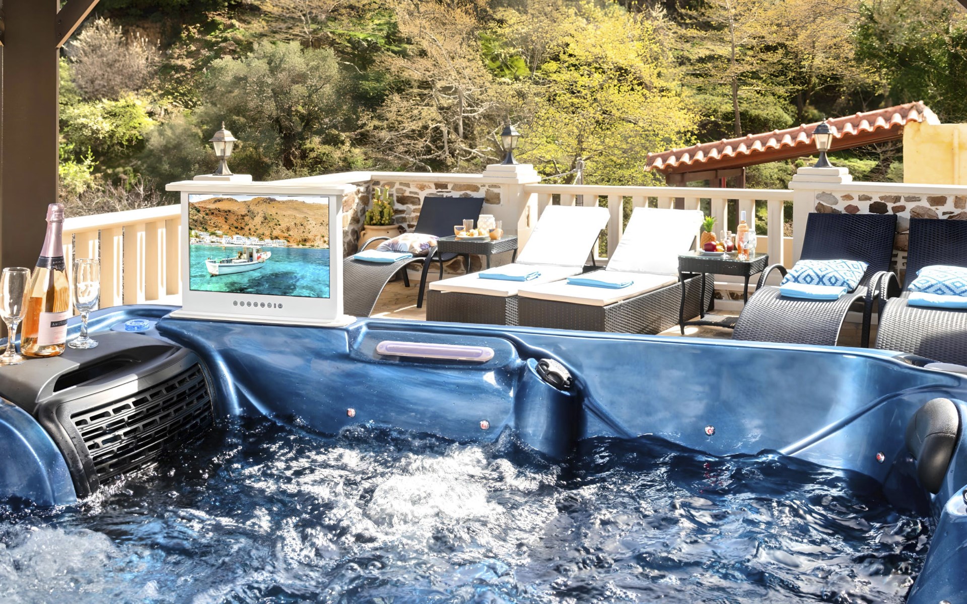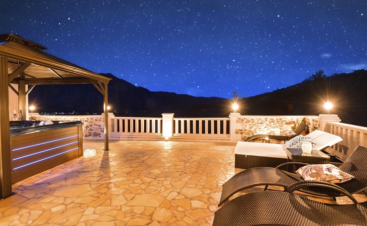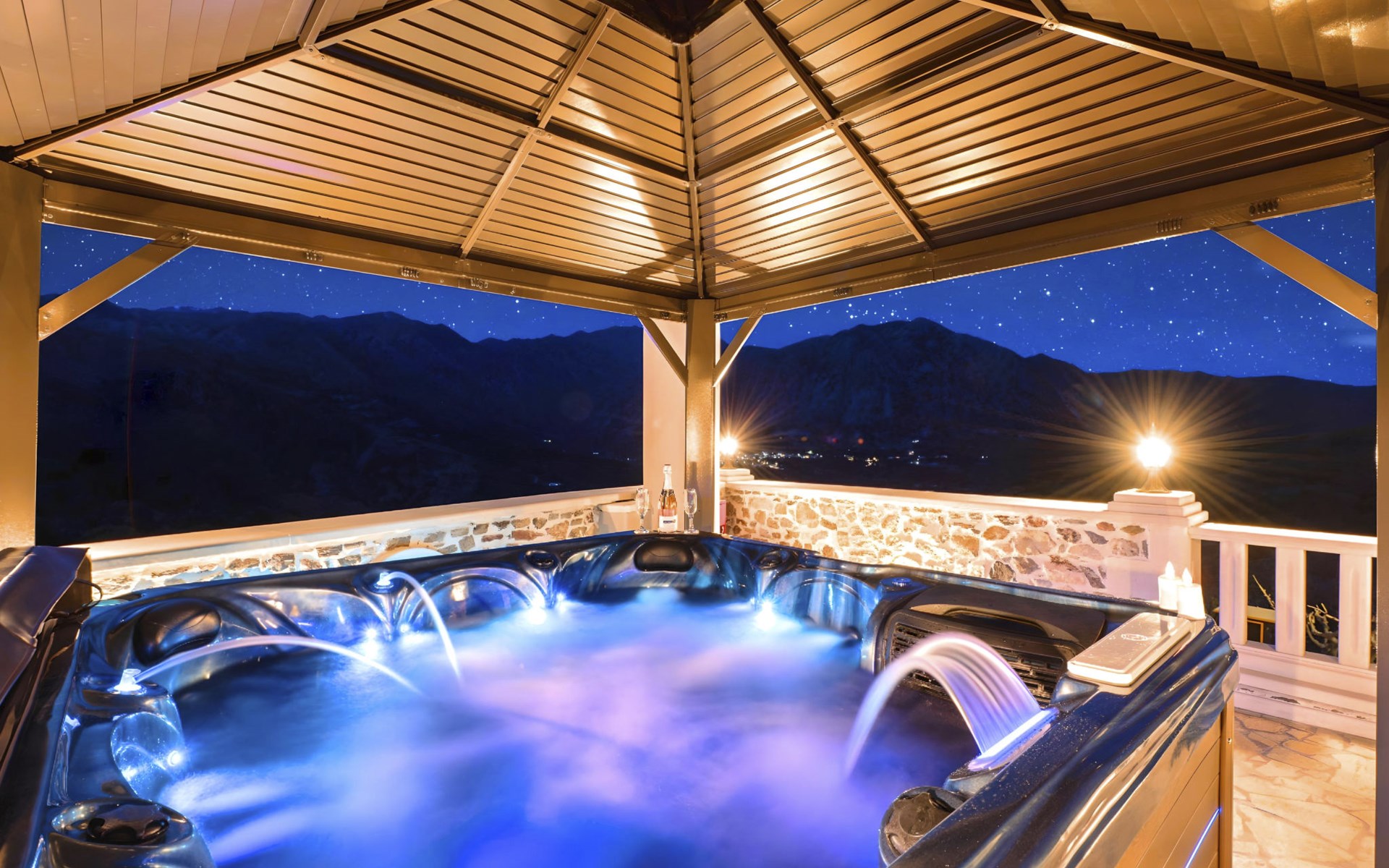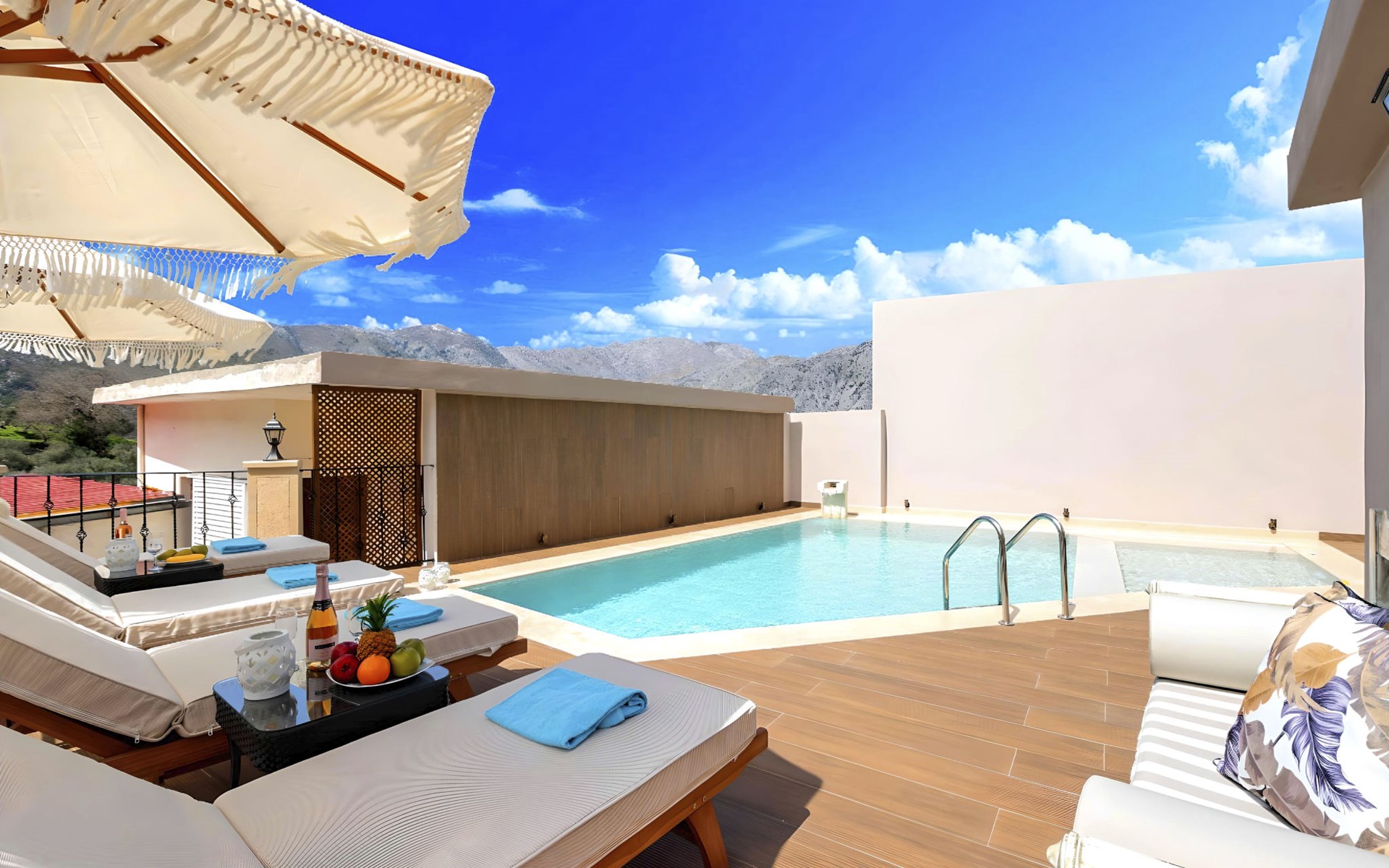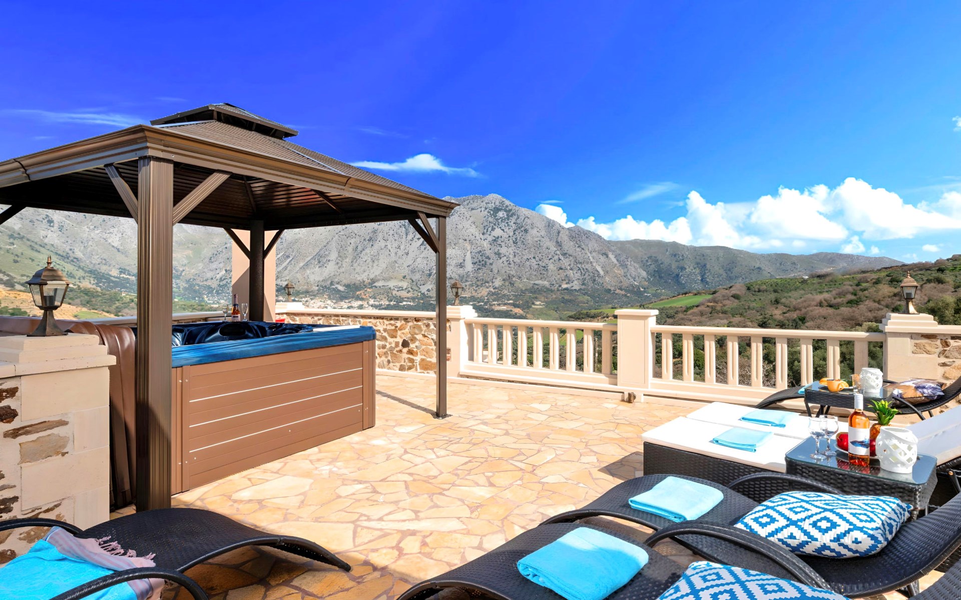 Outside, the mansion showcases its splendid traditional stone architecture, complemented by modern amenities such as a private pool, where guests can enjoy refreshing swims or relax by the poolside. The outdoor area is designed for ultimate relaxation and enjoyment, featuring a terrace and a balcony where you can unwind and soak up the serene surroundings. The mansion's positioning offers a unique vantage point amidst mountains and valleys, providing a tranquil escape from the hustle and bustle.