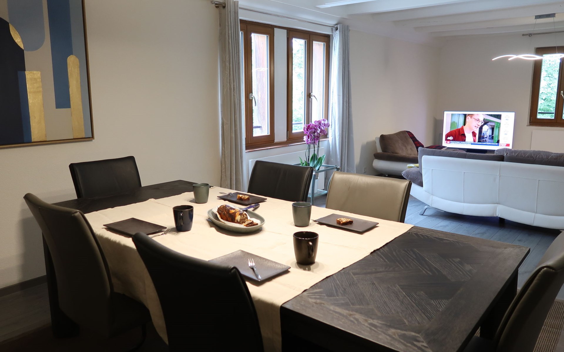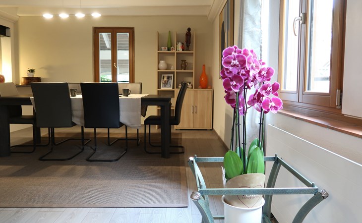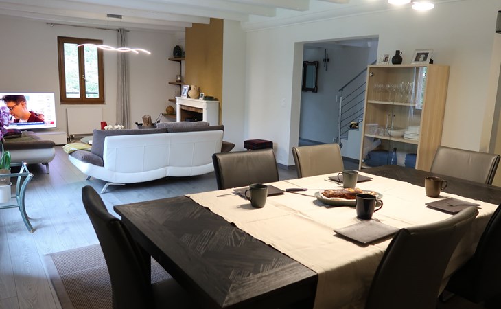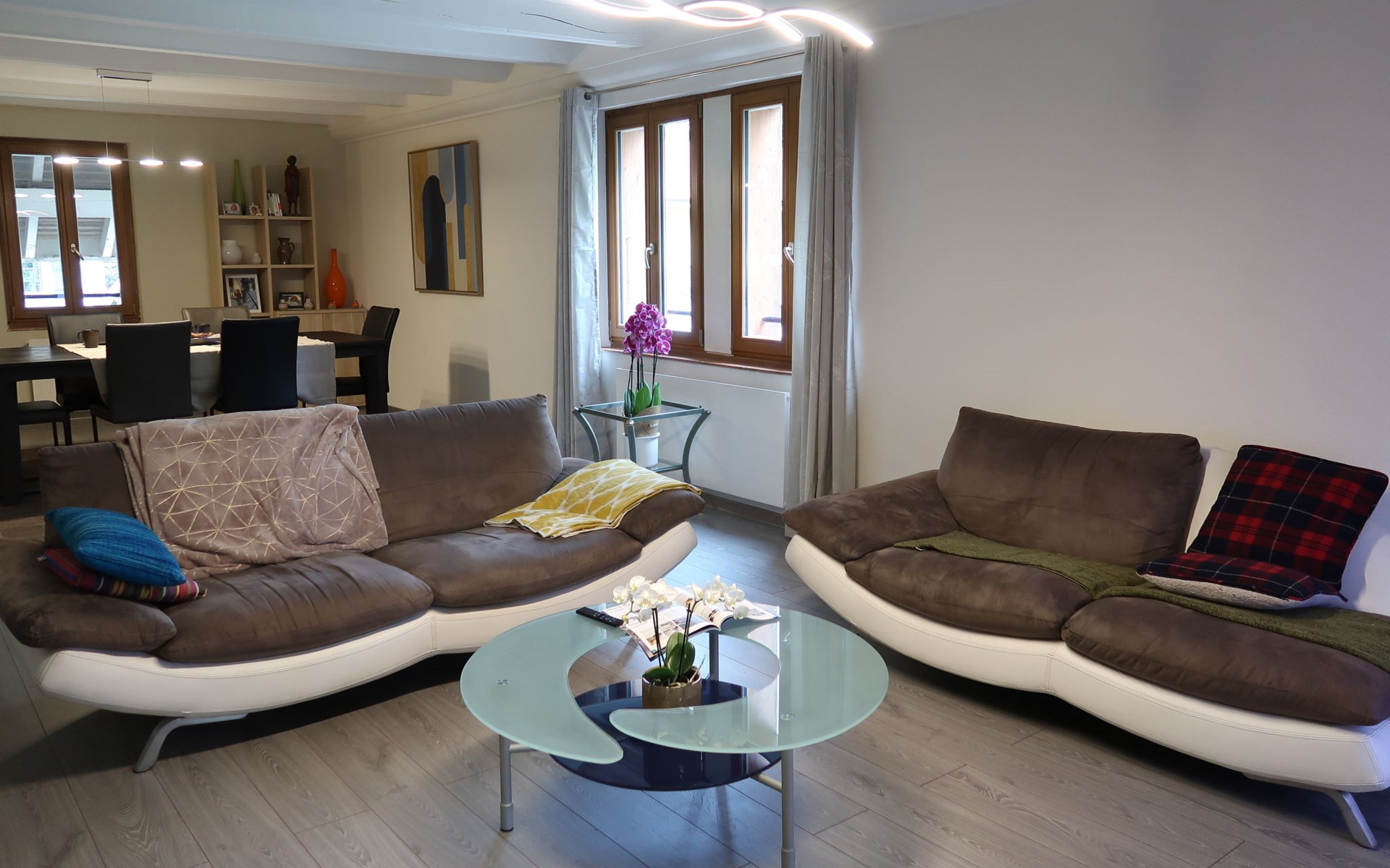 Présinge (L'Avenir) 10 km from Genève: 3-family house "L'Avenir", 2 storeys, surrounded by trees and meadows. In the hamlet L'Avenir, in the residential district, 7.7 km from the lake, located by a road. For shared use: property, park. Private: natural garden, meadow. Patio. In the house: central heating system. Parking (for 2 cars) at the house. Shop 3 km, restaurant 3 km, bus stop "Presinge, L'Avenir" 100 m, railway station "Genève" 11 km. Golf course (18 hole) 6 km. Nearby attractions: l'ONU 13 km, Palexpo 14 km, Annemasse (F) 4 km, Yvoire 23 km, Annecy (F) 54 km. Well-known ski regions can easily be reached: Chamonix (F) 79 km. Well-known lakes can easily be reached: Lac Léman 9 km. Hiking paths: Salève 10 km. Please note: car recommended.