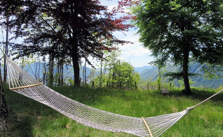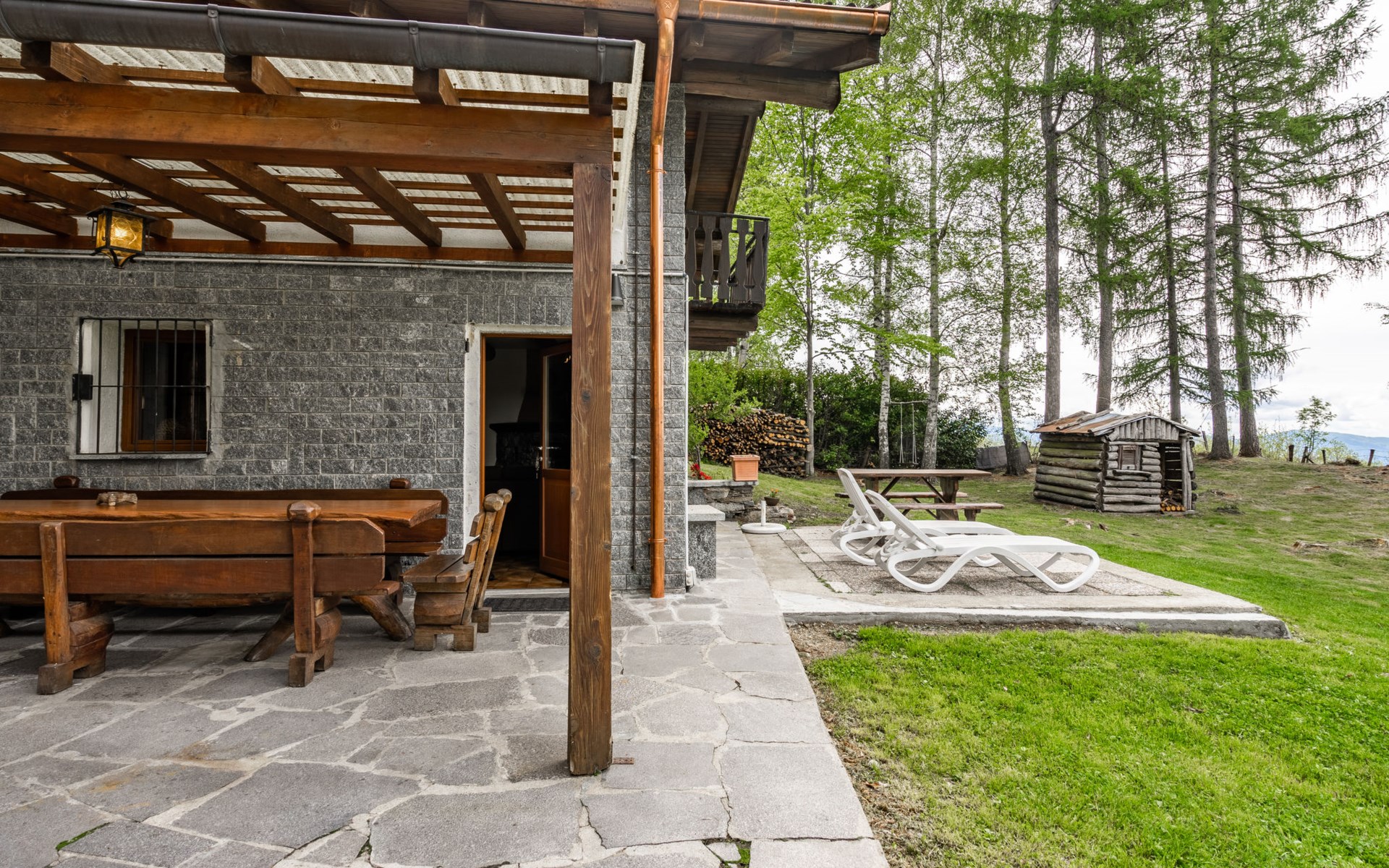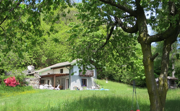 "rustico" cottage "Baita Nini", 800 m a.s.l., surrounded by trees. 7.5 km from the centre of Cannero Riviera, 1.5 km from the centre of Trarego, in a secluded, quiet, elevated position, 7.5 km from the lake, in the woods. Private: natural state property 2'000 m2 (fenced) with lawn and trees. Motor access to the house (1 km mountain road). Parking (for 2 cars). Supermarket 7 km, restaurant 3 km, bar 1.5 km, bus stop 7.5 km, grass beach "Cannero Riviera" 7.5 km. Nearby attractions: Verbania 22 km. Please note: car recommended.