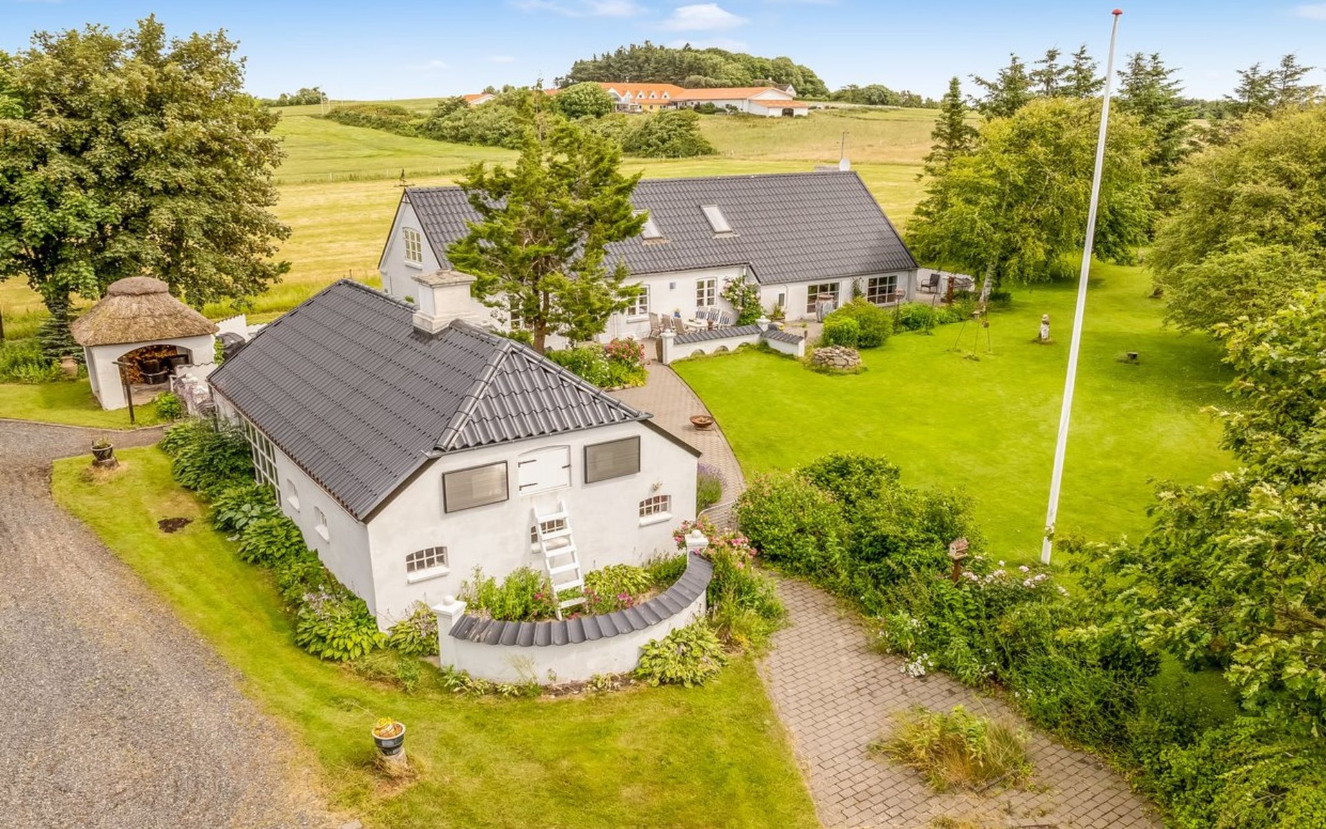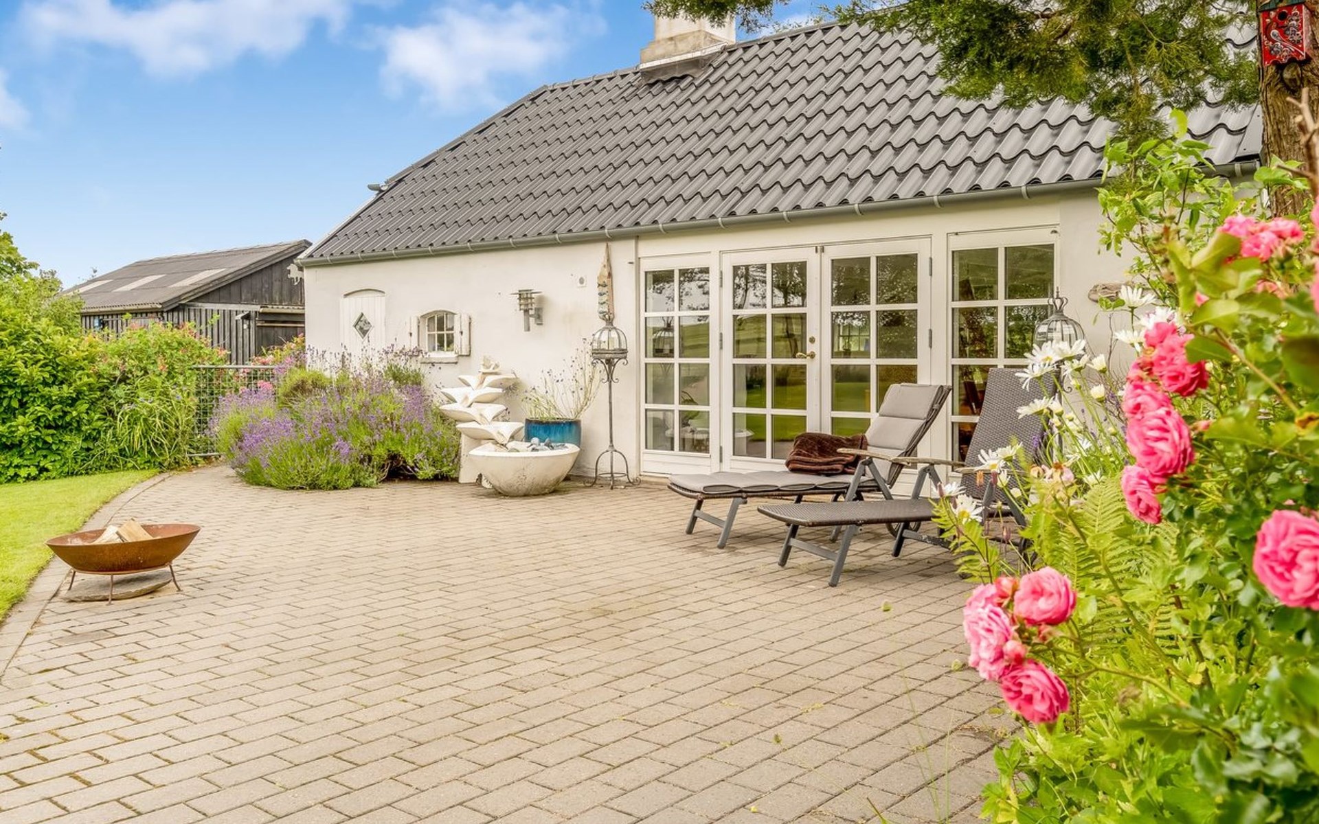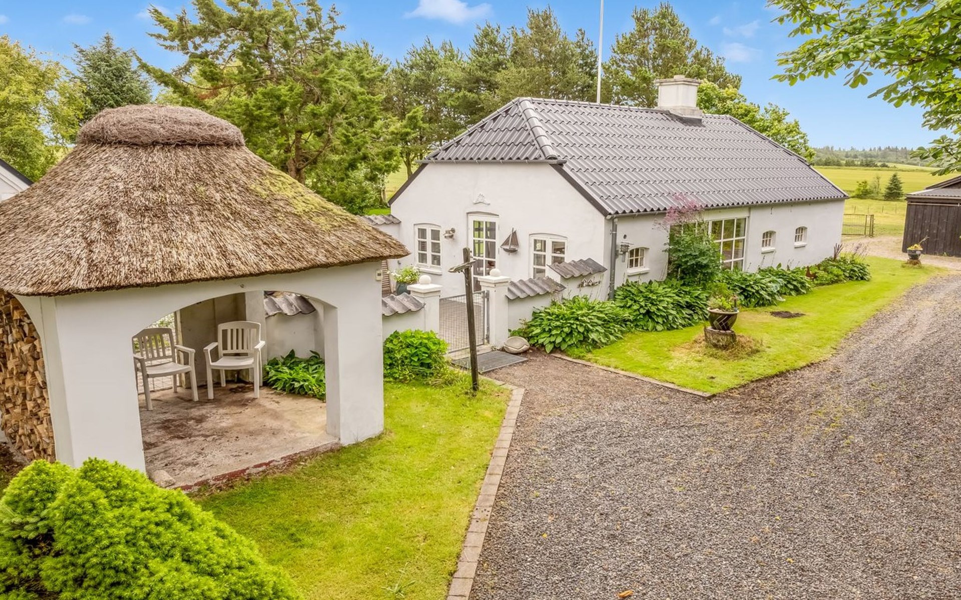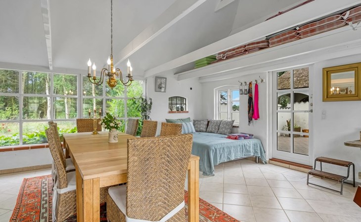 Single-family house, built in 2001. 1.8 km from the sea. Private: natural state property 12'000 m2. Barbecue. In the house: washing machine, tumble dryer. Parking at the house. Grocery 400 m. Golf course 10 km. The owner does not accept any youth groups.