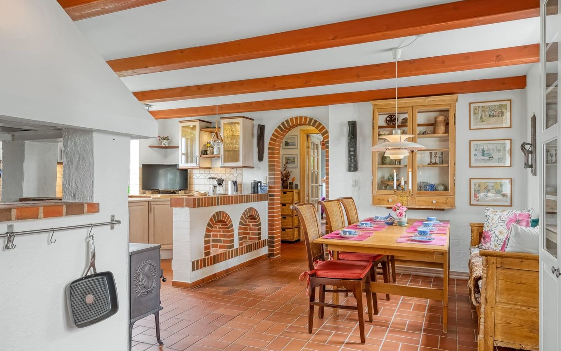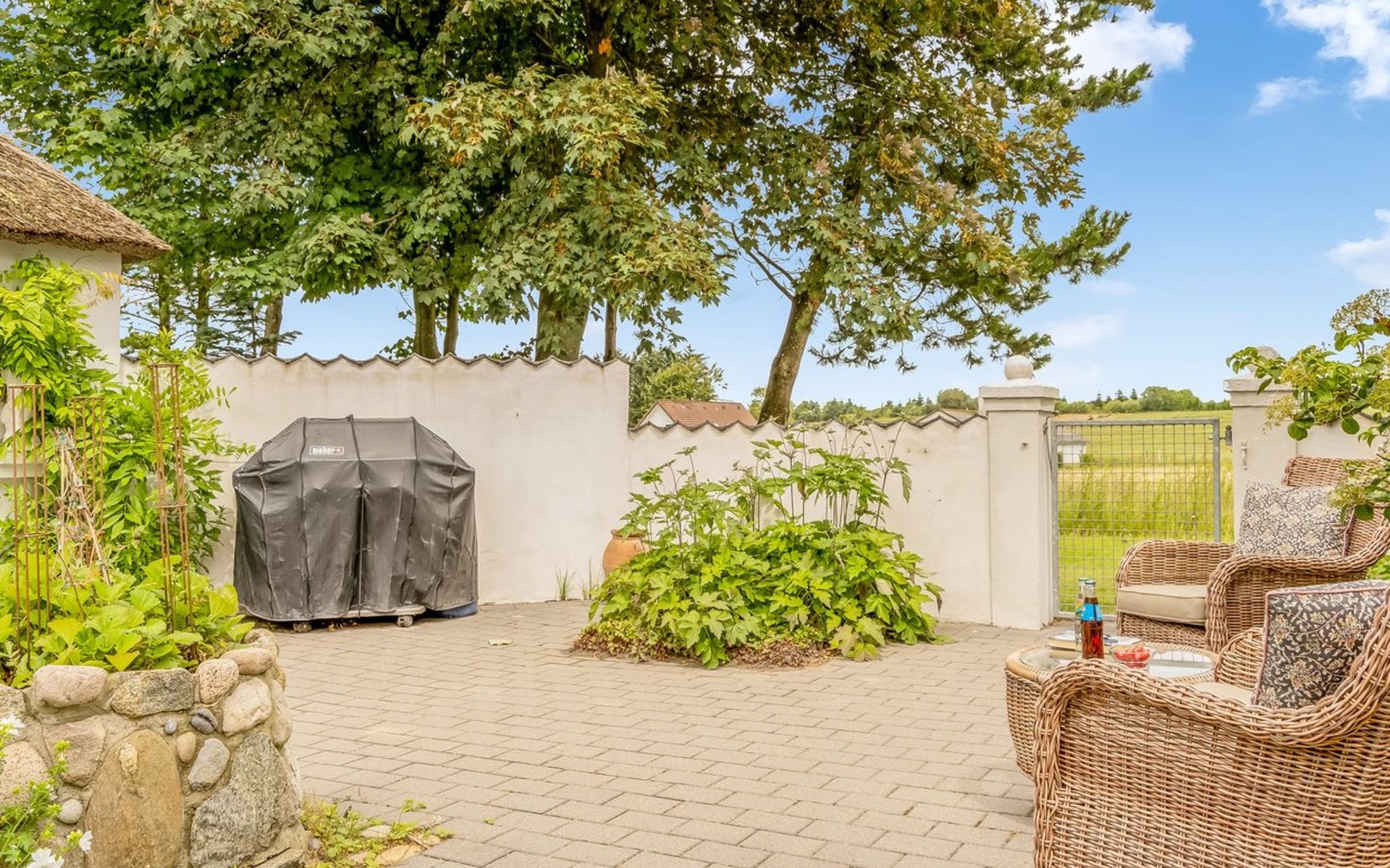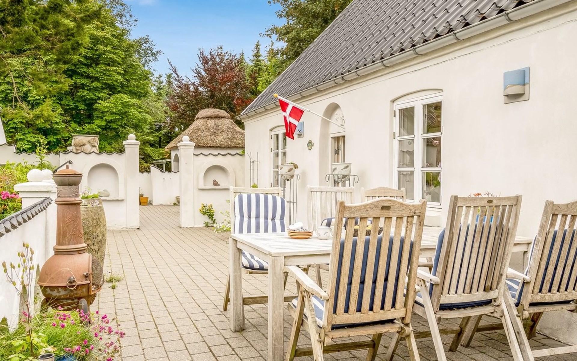 Single-family house, built in 2001. 1.8 km from the sea. Private: natural state property 12'000 m2. Barbecue. In the house: washing machine, tumble dryer. Parking at the house. Grocery 400 m. Golf course 10 km. The owner does not accept any youth groups.