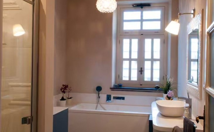 Inside, you will find well thought-out furnishings that leave nothing to be desired. The flat offers a total of six bedrooms that can be darkened to guarantee a restful night's sleep. Comfort is provided by the air conditioning, which ensures pleasant temperatures throughout the flat. Large groups can easily organise themselves in the three bathrooms, which are equipped with a shower and bathtub. In addition to the practical washing machine, there is a gas cooker, an espresso pot, a capsule coffee machine, a kettle and a dishwasher to make self-catering a pleasure.