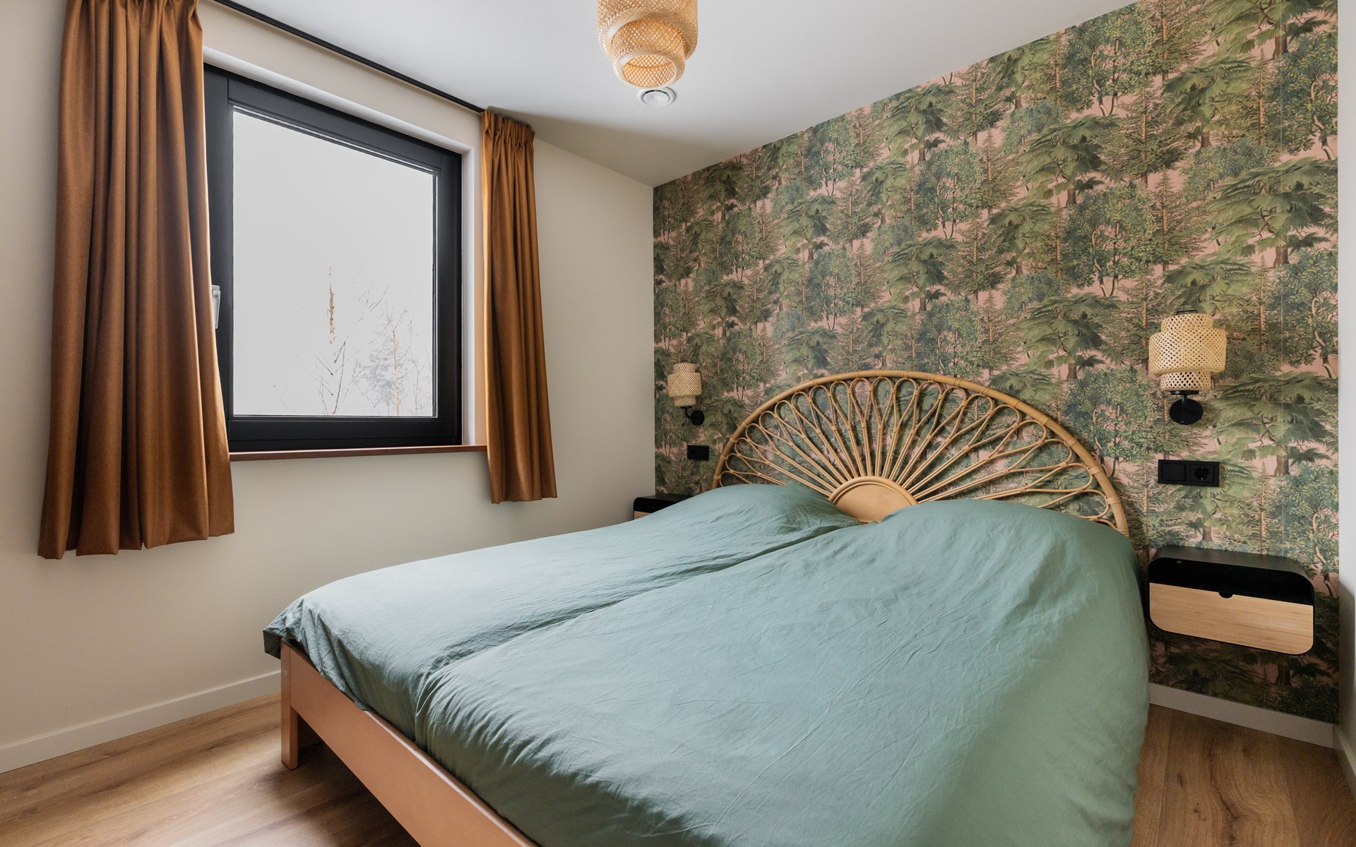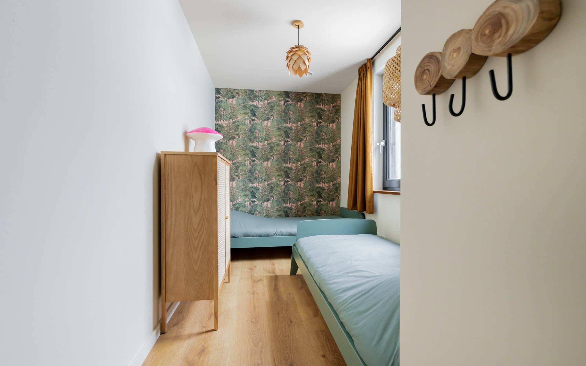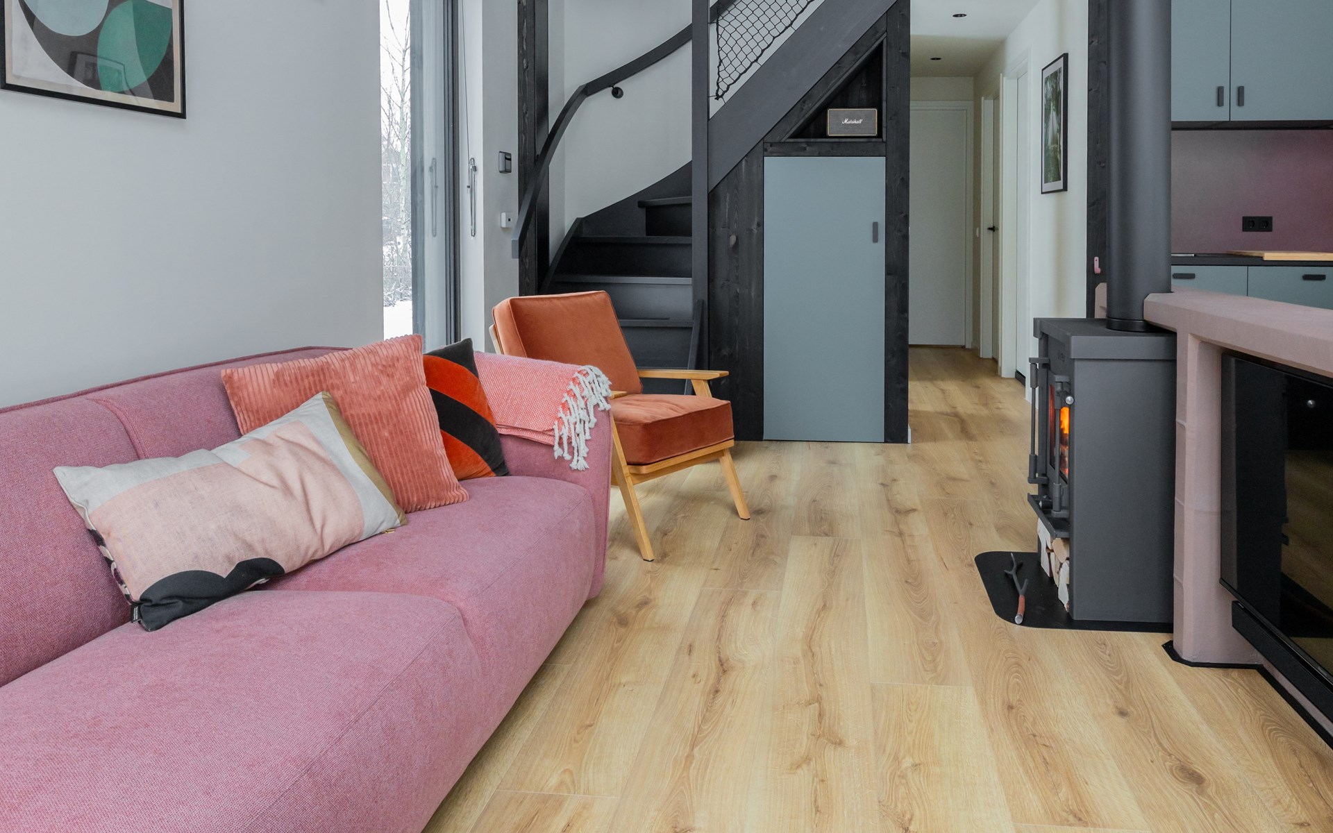 At the dining table for six people you can enjoy long dinners, game nights and views of the surrounding greenery. The seating area invites you to relax with a smart TV, soundbar and an atmospheric Jacobus wood-burning stove. A Bluetooth speaker is also available for your favorite music.