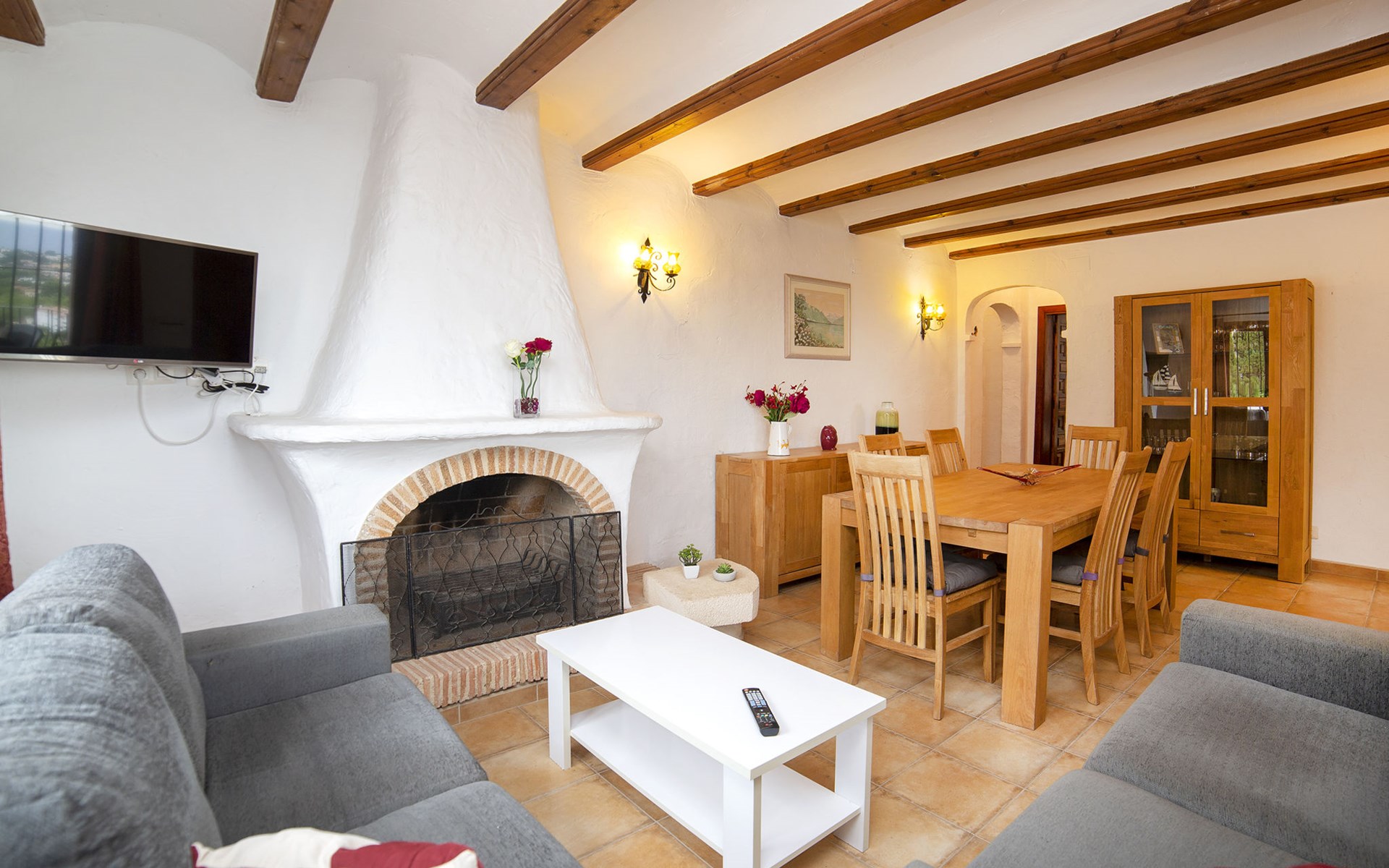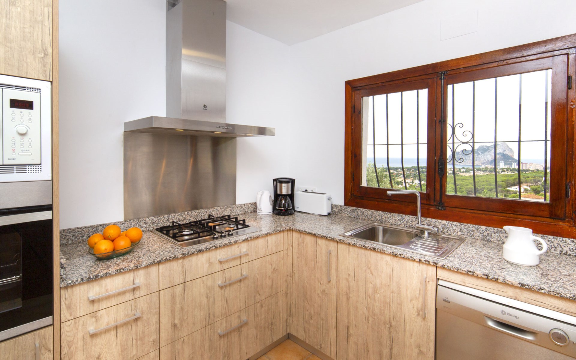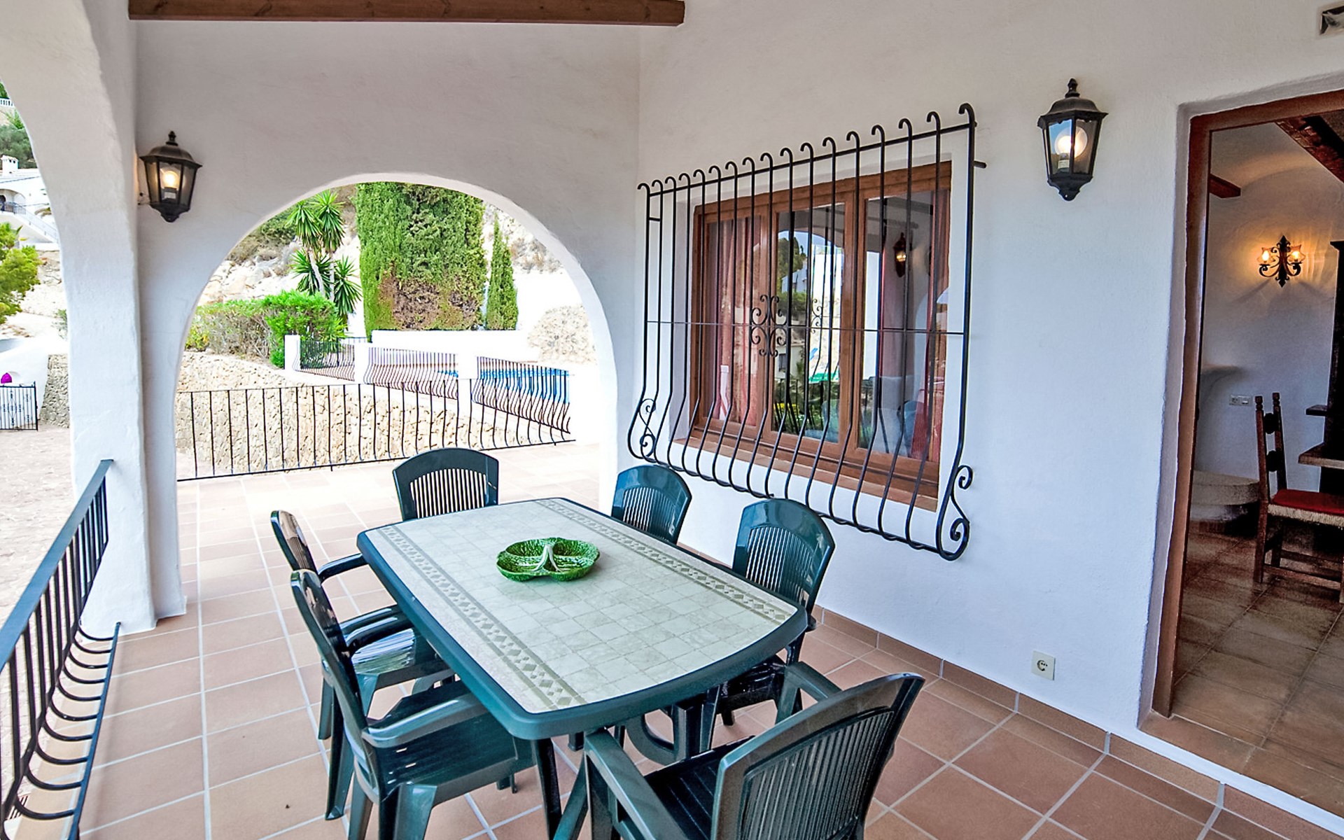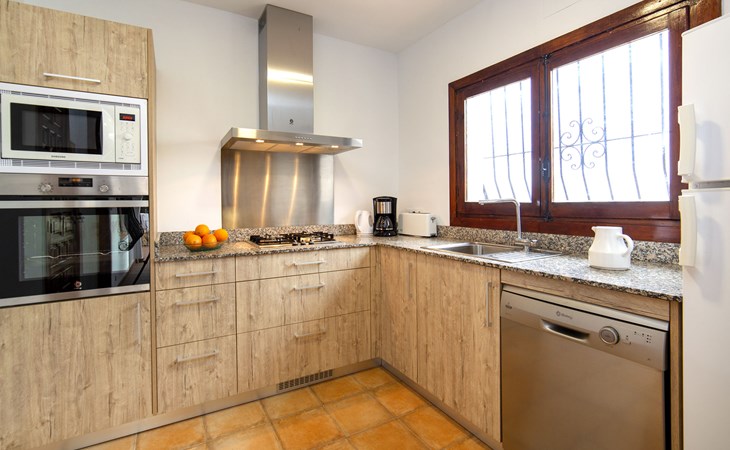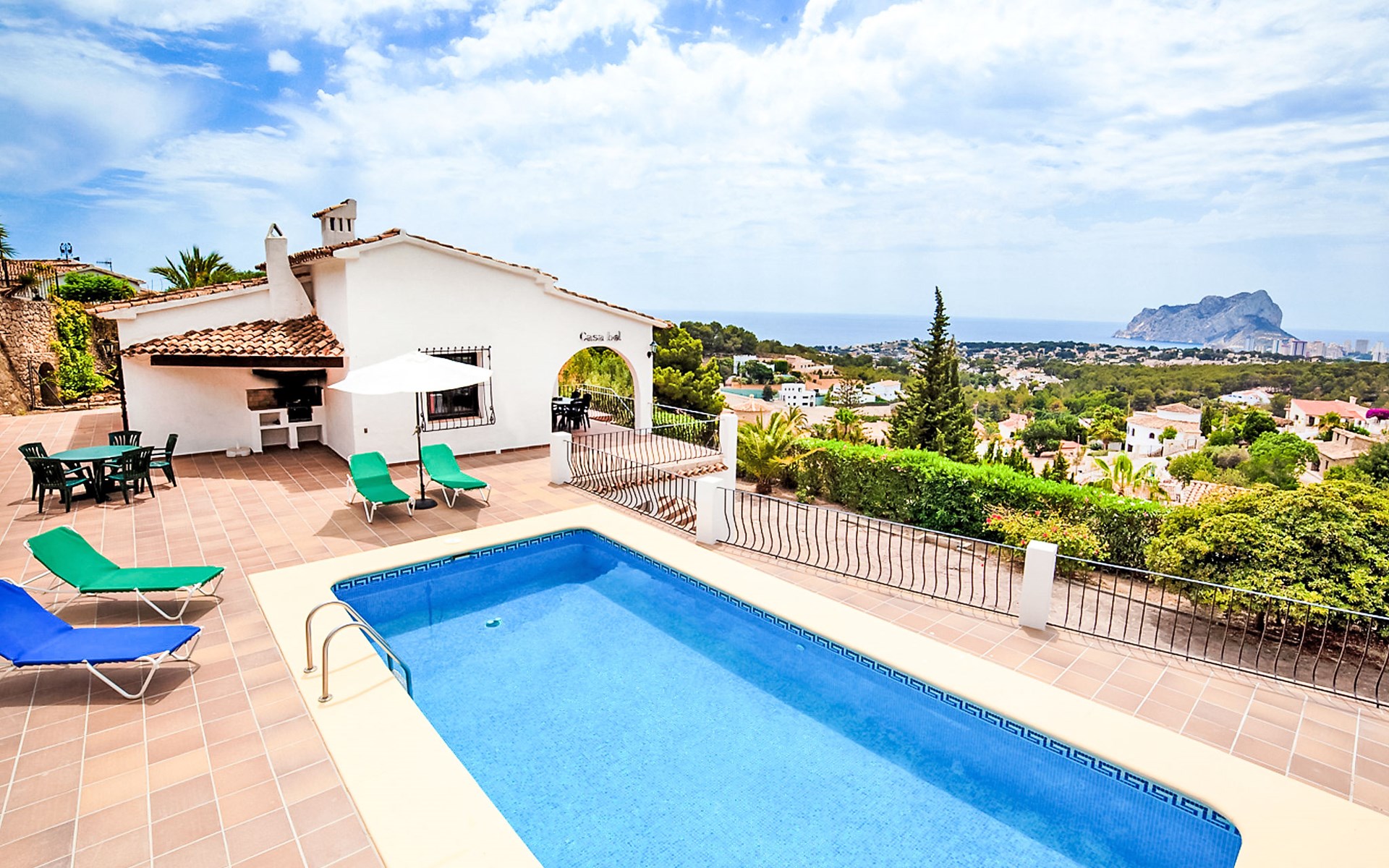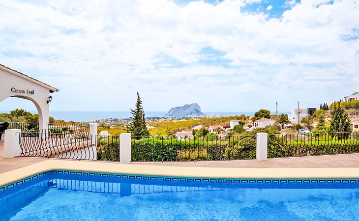 La Fustera: Beautiful, comfortable villa "Bel", renovated in 2019. 7 km from the centre of Calpe, in the district Tossal, in an elevated position, 2 km from the sea, 2.3 km from the beach, in the countryside. Private: property 1'085 m2 (fenced), swimming pool angular (4 x 8 m, seasonal availability: 01.Jan. - 31.Dec.) with internal staircase. Outdoor shower, pergola, barbecue. In the house: washing machine. Parking on the premises. Shop 2 km, grocery 2 km, supermarket 2 km, restaurant 2 km, bar 2 km, bakery 2 km, café 2 km, internet café 2 km, pub garden 2 km, bus stop "Estacion Bus Calpe" 6 km, sandy beach "Playa La fustera" 2.4 km, swimming bay 2 km. Sports harbour 2.5 km, marina 2.5 km, golf course (9 hole) 8.5 km, surf school 2.5 km, sailing school 2.5 km, tennis 7 km. Nearby attractions: Aqualandia - Mundomar 28 km, Terra Mítica - Terra Natura 29 km, Benidorm Palace 25 km.