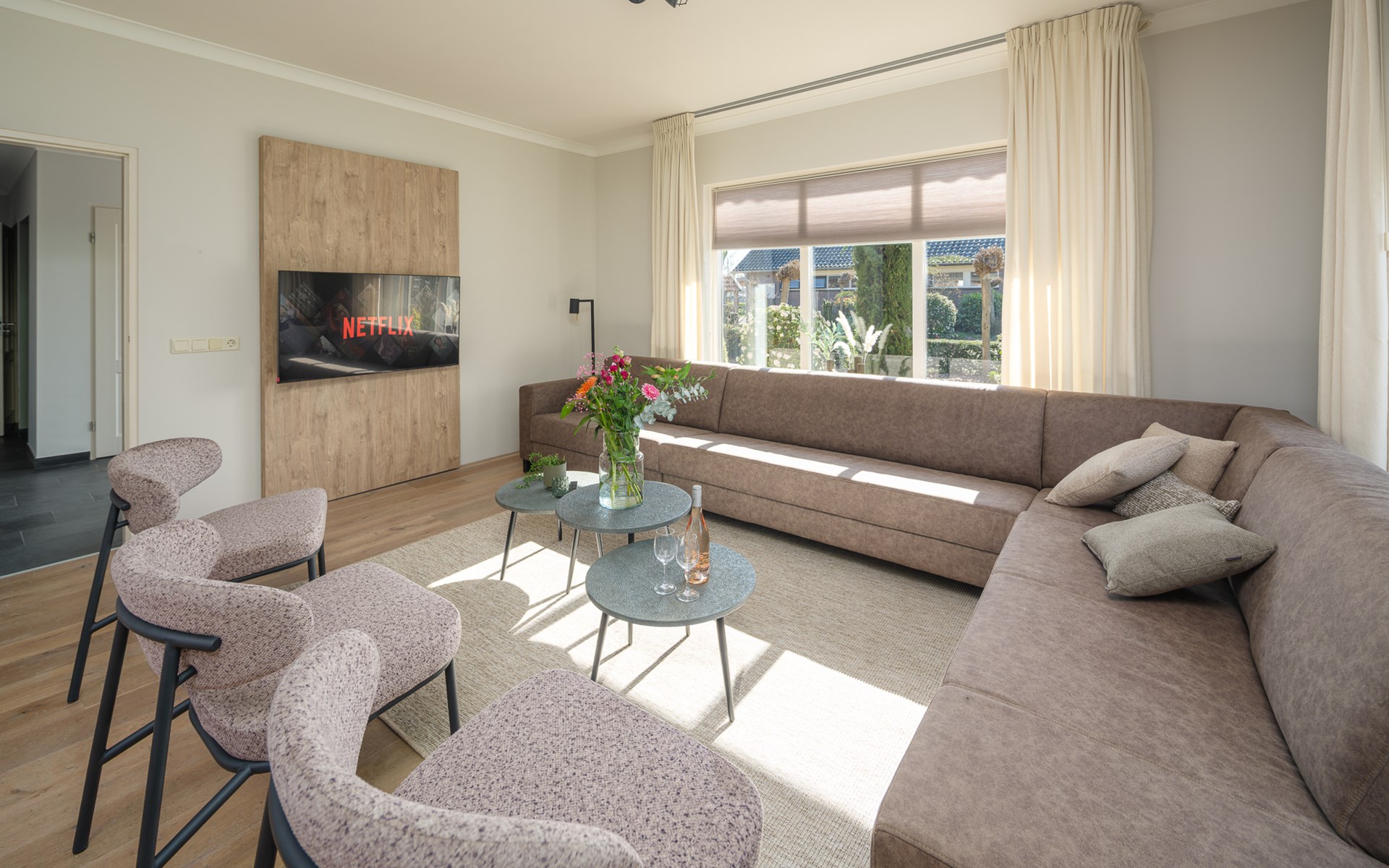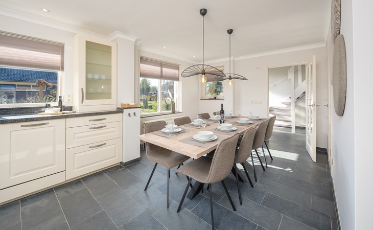 The accommodation is fully equipped with zeven spacious bedrooms and three modern bathrooms. For ultimate relaxation, you can unwind in the hot tub or enjoy the sauna. The fully equipped kitchen is perfect for cooking and dining together, while the cozy living room is ideal for spending time with your group. Outside, you’ll find a large garden, perfect for barbecues or a casual drink. Togetherness truly comes to life here.