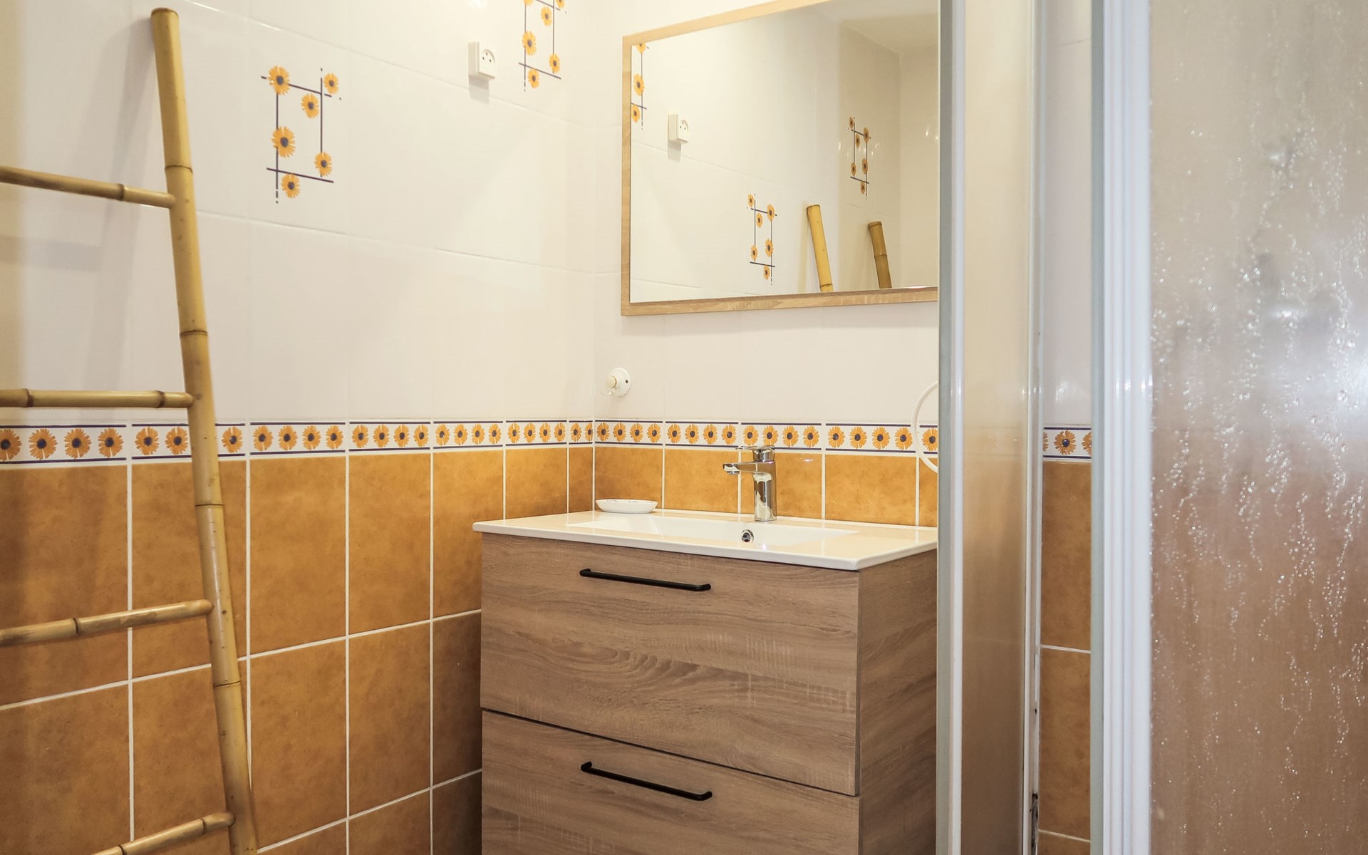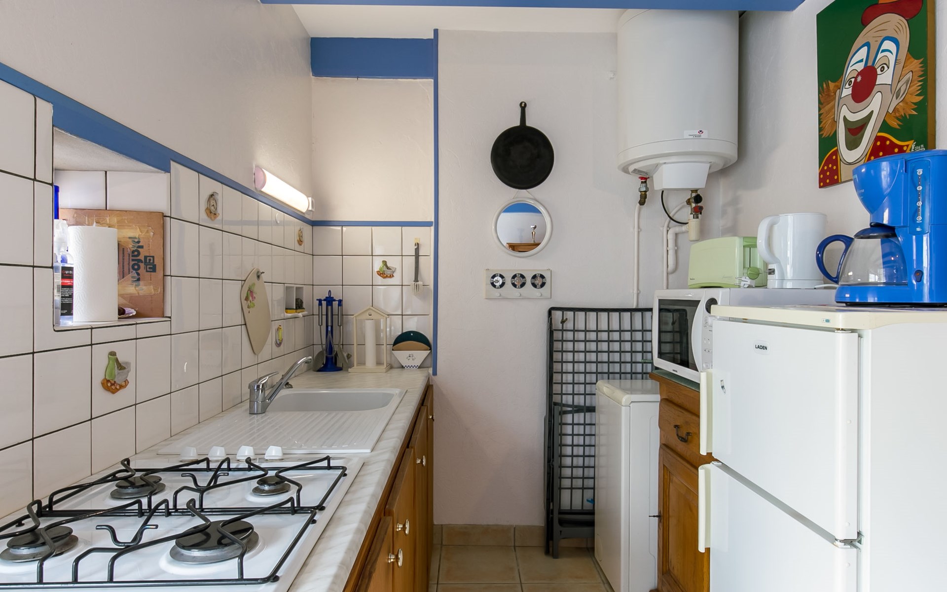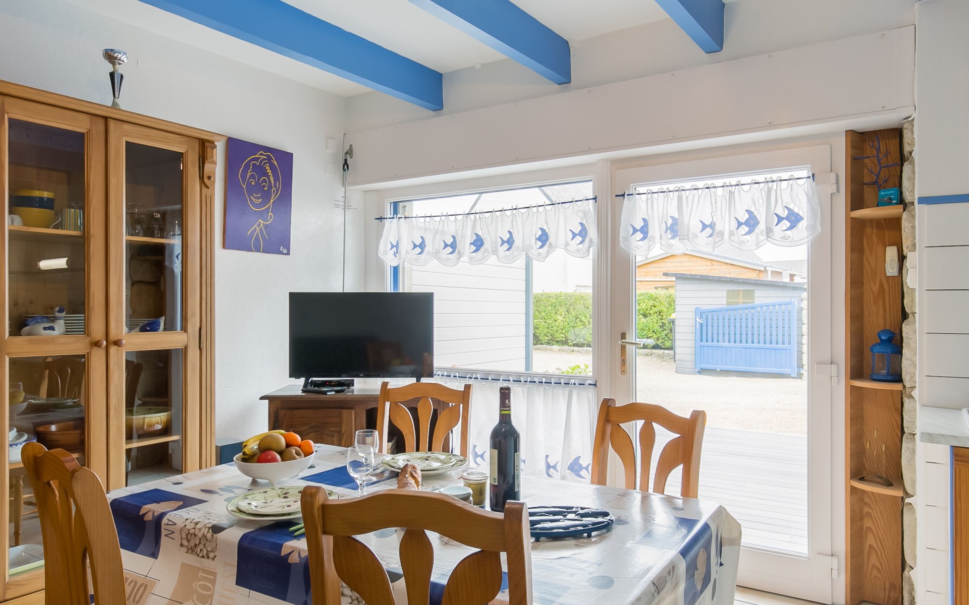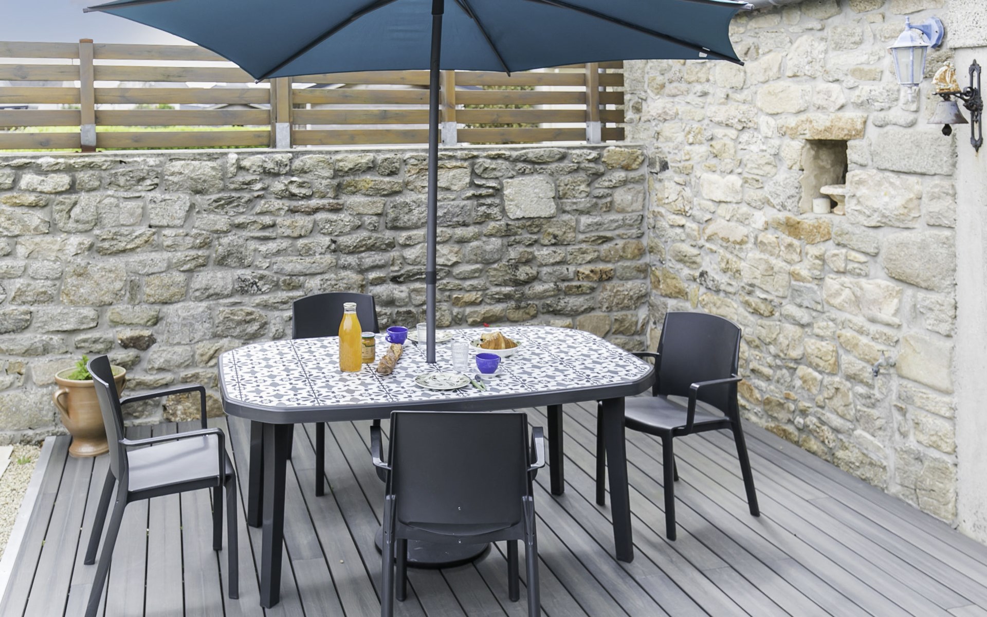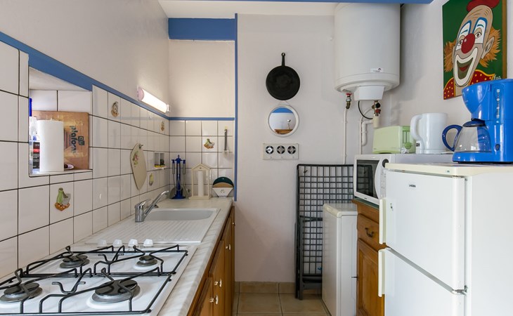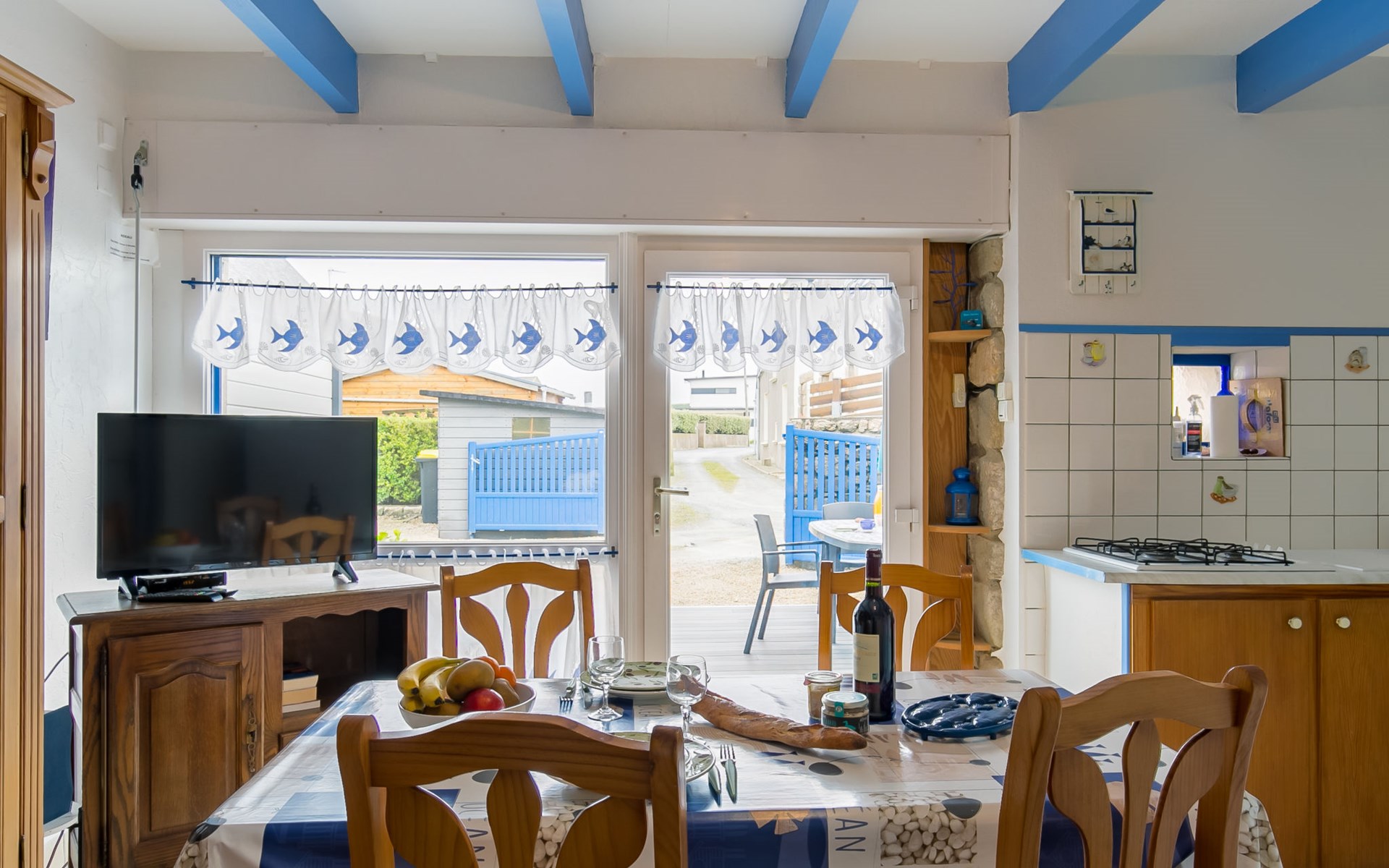 Small terraced house "Ty Kerveal", semi-detached. In the district of Kerveal 1 km from the centre of Santec, 5 km from the centre of Saint Pol-de-Léon, 23 km from the centre of Morlaix, 250 m from the sea, 250 m from the beach. For shared use: property 1'000 m2, courtyard, parking on the premises. Shop 1 km, supermarket 5 km, bakery 1 km, bus stop "Mairie" 850 m, sandy beach "Plage du Staol" 250 m, indoor swimming pool 5 km, thermal baths "Thalasso Roscoff" 6 km. Sports harbour 9 km, golf course (9 hole) 17 km, surf school 1.7 km, sailing school 6.7 km. Nearby attractions: Roscoff 6 km, Jardin Exotique Roscoff 8 km, St.Pol-de-Léon 6 km, Morlaix 26 km, Huelgoat 60 km, Oceanopolis Brest 65 km. Hiking paths: GR34, sentier des douaniers 250 m. Owner lives in separate semi-detached house.