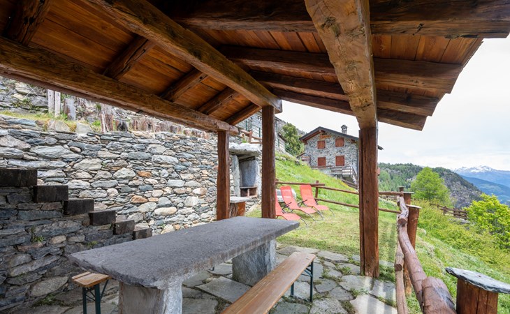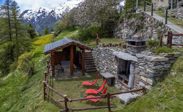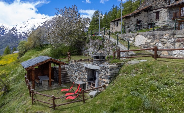 Baulin 13 km from Arvier: Rustic, historical 2-family house "Baita Baulin", 1'700 m a.s.l.. 2 apartments in the property. In the hamlet Baulin 14 km from the centre of Avise, 28 km from the centre of Aosta, in a quiet, sunny position, in a cul-de-sac. For shared use: terraced garden with lawn. Pergola, garden furniture, barbecue house. In the house: storage room for bicycles, washing machine. Parking at the house, public parking on the road. Supermarket 13 km, restaurant 3 km, bar 3 km, café 3 km, bus stop 14 km, thermal baths "Pré-Saint-Didier" 28 km. Nearby attractions: Parco Nazionale del Gran Paradiso 28 km. Well-known ski regions can easily be reached: Courmayeur Mont Blanc 34 km. Please note: car recommended. Animals in the neighbourhood. Additional accommodations can be booked.