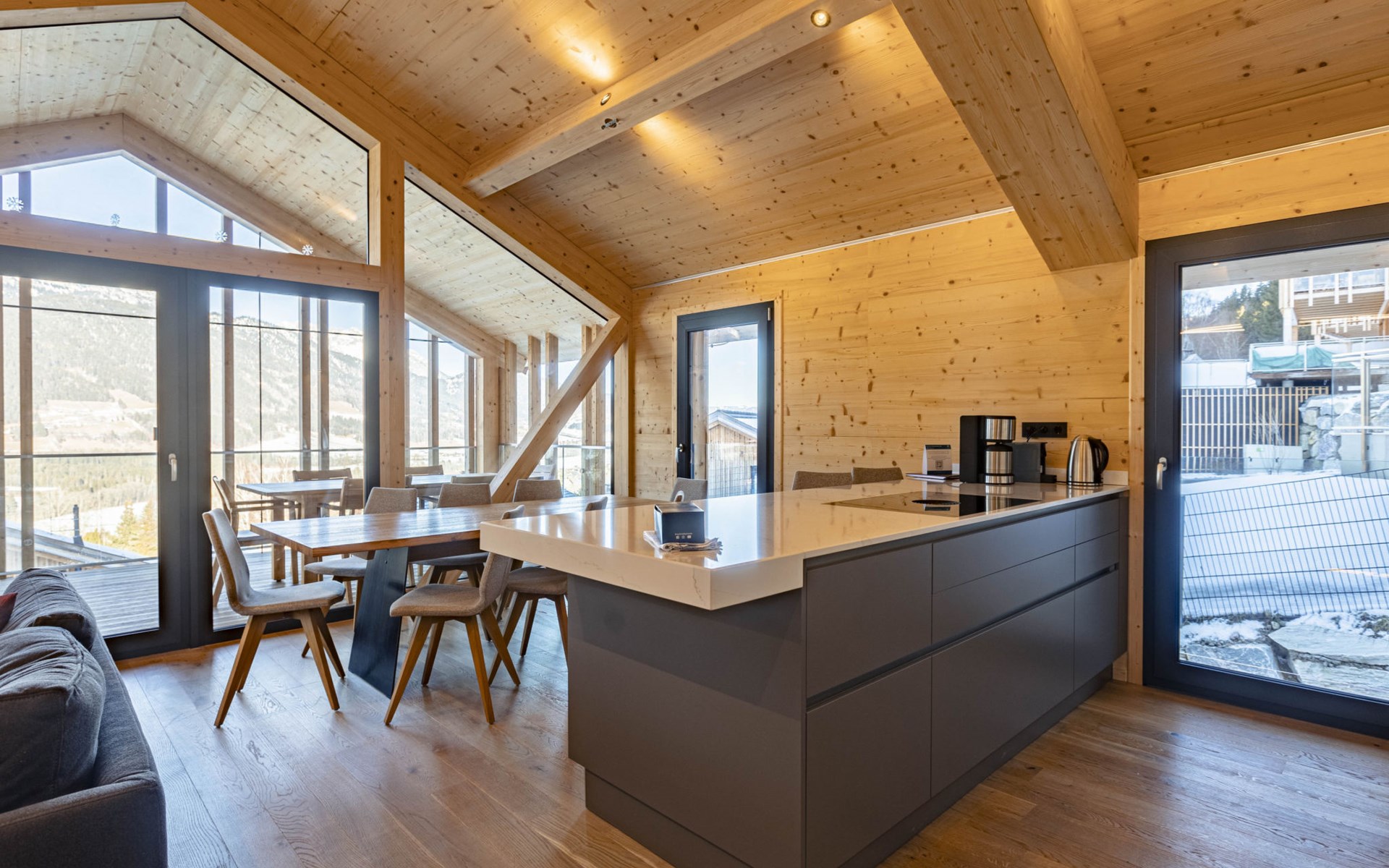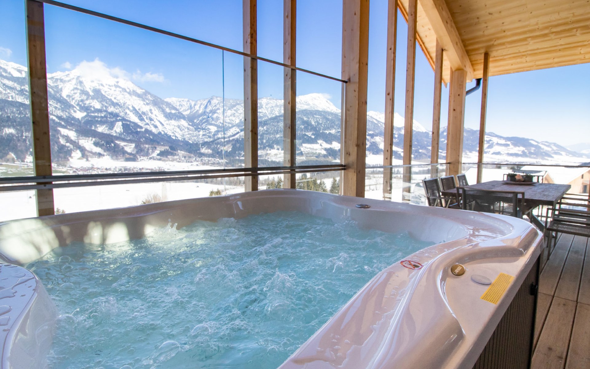 Haus im Ennstal: Modern, comfortable holiday village "Hauser Kaibling by Alps Resorts". Above Haus, in a sunny position on a slope, 5 km from the lake, directly by the skiing area. Private: swimming pool (seasonal availability: 01.Jan. - 31.Dec.). In the house: central heating system. Parking at the house. E-charging station. Supermarket 1 km, restaurant 1 km. Skisport facilities 300 m, ski rental, children's ski school. Well-known ski regions can easily be reached: Hauser Kaibling 300 m, Planai, Reiteralm. Well-known lakes can easily be reached: Freizeitsee Aich 4 km. Hiking paths: Schladminger Tauern. Please note: In case of good snow conditions, the house is accessible on skis. The photograph shows a typical example. All houses/apartments are individually designed/furnished. The holiday properties may differ in living space, floorplan, equipment and furnishing. ATTENTION: Schladming-Dachstein Summer Card included (end of May to end of October).