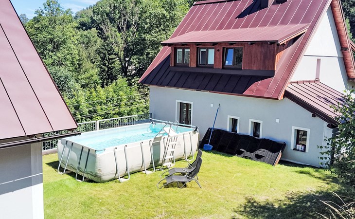 Comfortable house "Tanvald", 3 storeys, detached. In the district of Šumburk, in the resort 1 km from the centre of Tanvald, in a quiet, sunny, elevated position, 50 m from the edge of the forest, 4 km from the skiing area. Private: property, garden. Pergola, terrace, garden furniture, barbecue. In the house: central heating system, washing machine, tumble dryer. Parking at the house. Shop, supermarket 1 km, restaurant 500 m, bar, café 700 m, bicycle rental 500 m, bus stop 500 m, railway station. Minigolf 4 km, ski rental 4 km, ski school 4 km, children's ski school 4 km, cross country ski track 4 km. Nearby attractions: Rozhledna Štěpánka 4 km, Maják Járy Cimmermana 4 km, Rozhledna Špičák 6 km, Rozhledna Světlá / Albrechtice 7 km, Zoo Liberec 27 km, Aquapark Babylon Liberec 27 km. Well-known ski regions can easily be reached: U Čápa 4 km, Rejdice 7.5 km, Tanvaldský Špičák 6 km. Hiking paths: Vodní nádrž Souš 10 km.