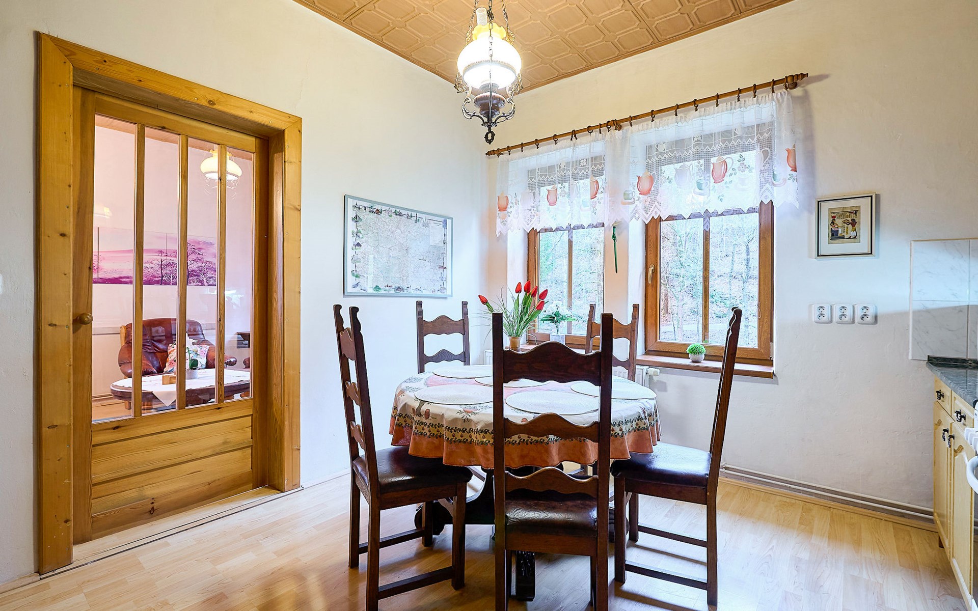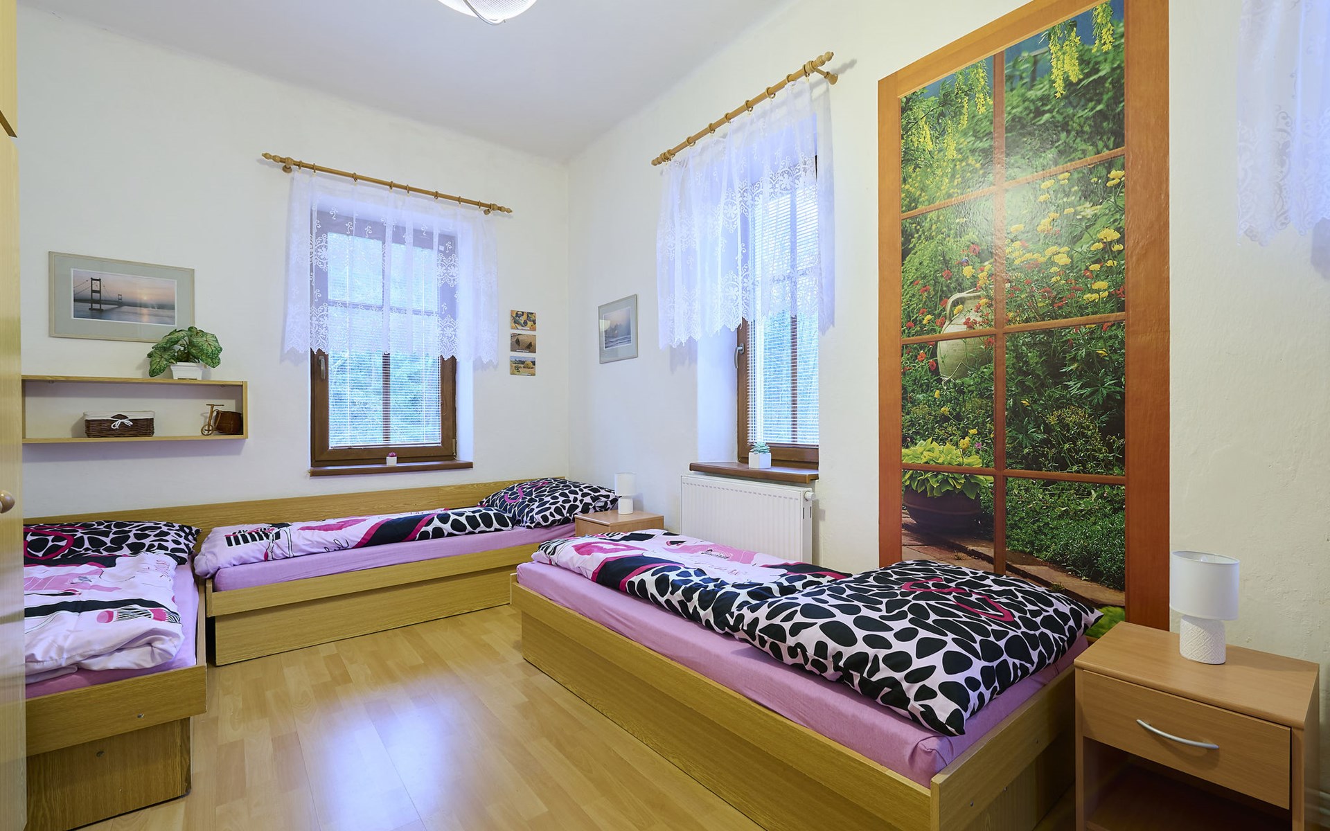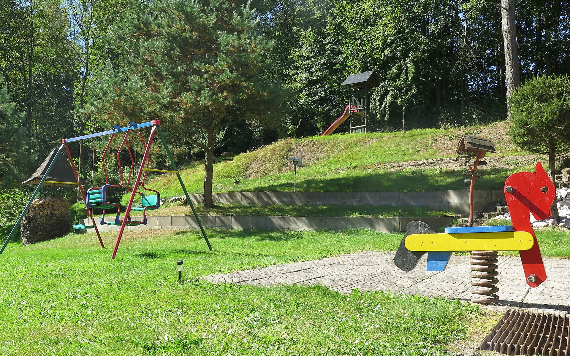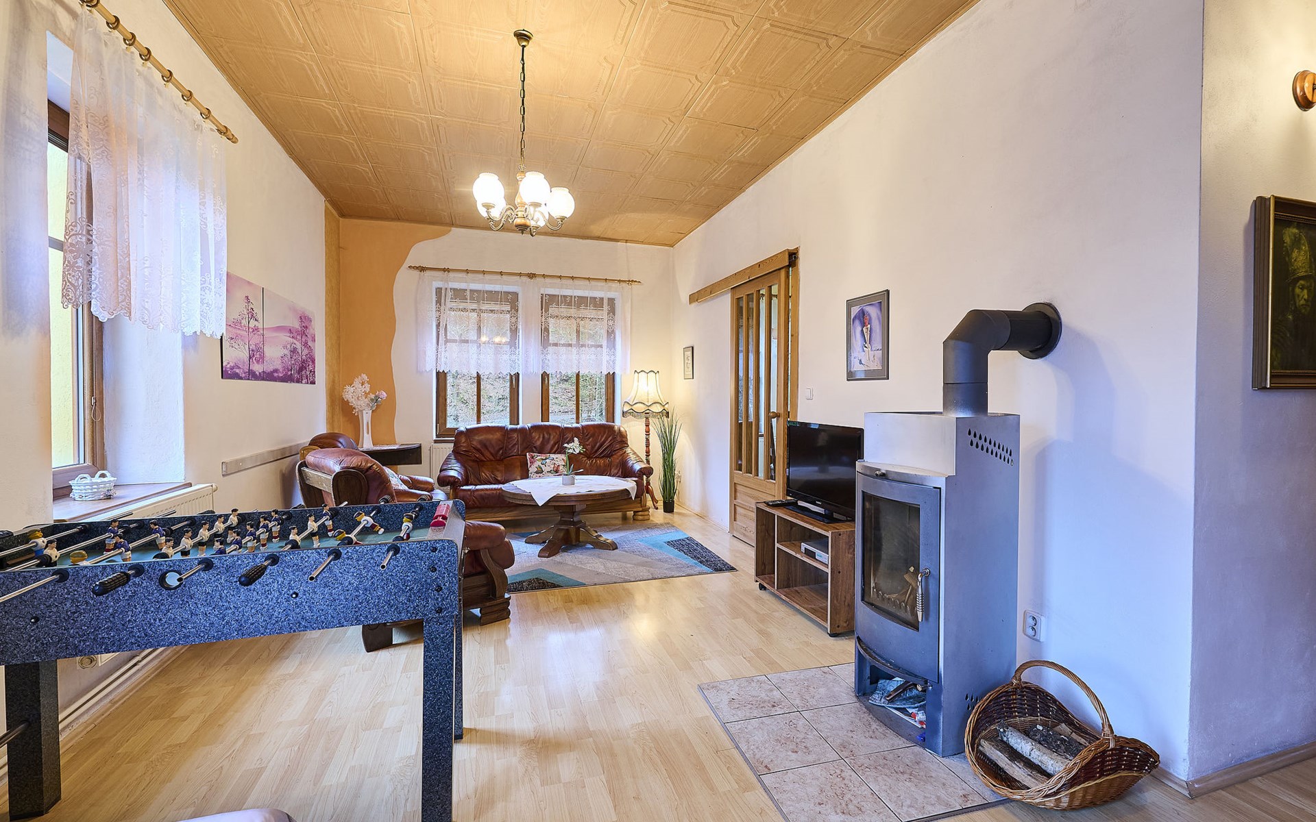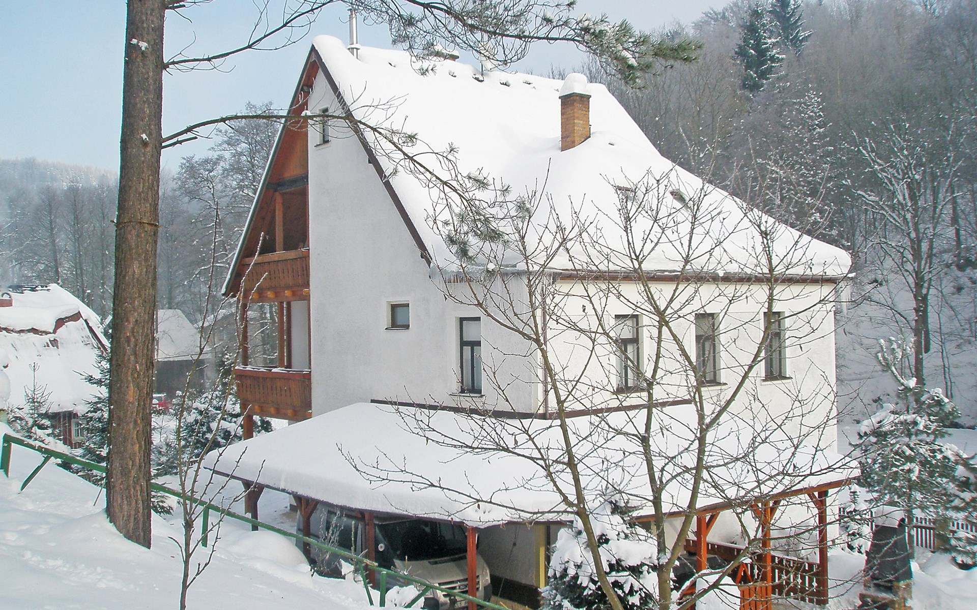 Zlatá Olešnice, 16 km from Tanvald: The former mill with it's own power station is a family villa nowadays. It is situated on the Zlatnik stream, a romantic position beautiful, historical single-family house "Zlata Olesnice", 2 storeys, renovated in 2004. Below Zlatá Olešnice, on the outskirts, in a secluded, quiet, sunny position, 50 m from the edge of the forest, 20 m from the stream, in a cul-de-sac, in the countryside. Private: property 4'000 m2, garden 1'000 m2 (fenced) with lawn and trees, pond. Patio (20 m2), terrace (30 m2), garden furniture, barbecue, fireplace, children's playground (slide, swing). In the house: storage room for skis, central heating system, washing machine. Motor access to the house. Roofed, parking at the house. Grocery, restaurant, bus stop 300 m, outdoor swimming pool 800 m, indoor swimming pool 20 km. Ski lift 1.5 km, skisport facilities 18 km, slopes 5 km, ski school 18 km, children's ski school 5 km, cross country ski track 50 m. Covered parking. Ski storage boxes available. Ideal for families with children.