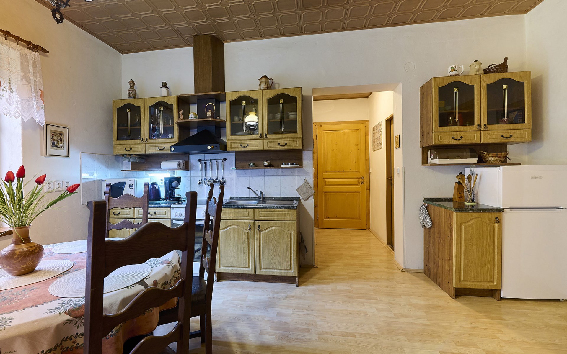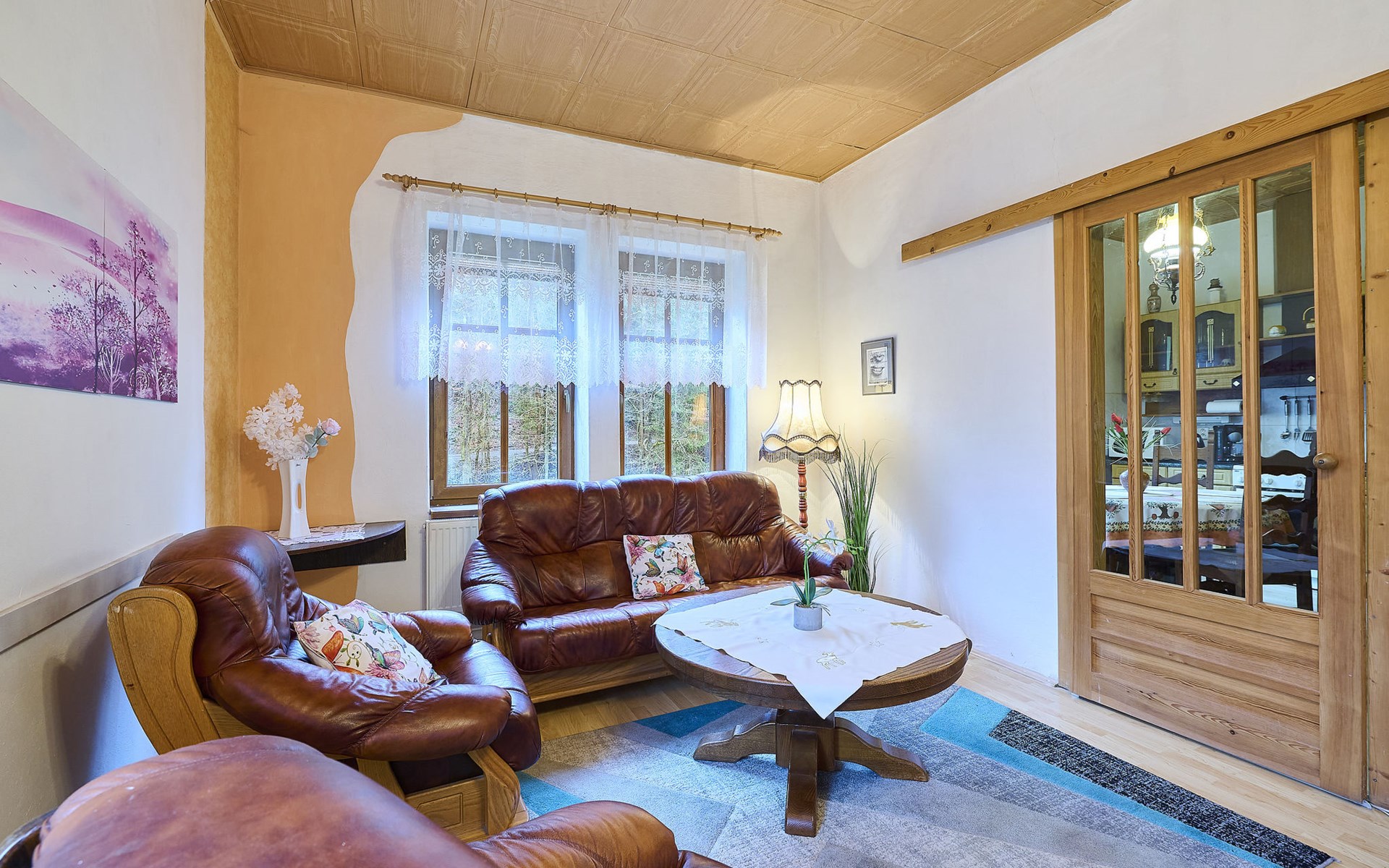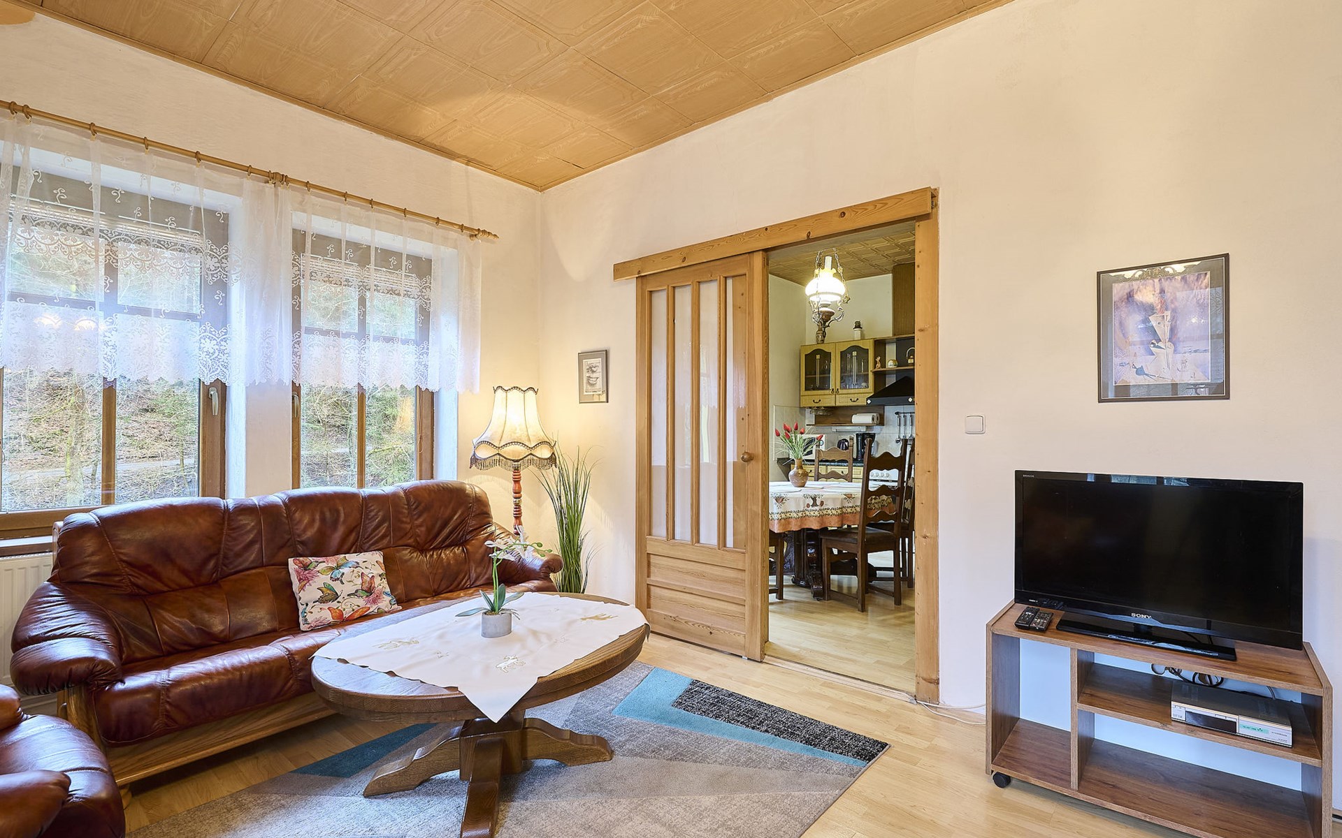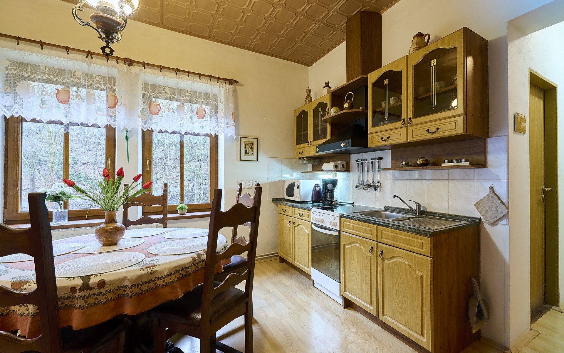 Zlatá Olešnice, 16 km from Tanvald: The former mill with it's own power station is a family villa nowadays. It is situated on the Zlatnik stream, a romantic position beautiful, historical single-family house "Zlata Olesnice", 2 storeys, renovated in 2004. Below Zlatá Olešnice, on the outskirts, in a secluded, quiet, sunny position, 50 m from the edge of the forest, 20 m from the stream, in a cul-de-sac, in the countryside. Private: property 4'000 m2, garden 1'000 m2 (fenced) with lawn and trees, pond. Patio (20 m2), terrace (30 m2), garden furniture, barbecue, fireplace, children's playground (slide, swing). In the house: storage room for skis, central heating system, washing machine. Motor access to the house. Roofed, parking at the house. Grocery, restaurant, bus stop 300 m, outdoor swimming pool 800 m, indoor swimming pool 20 km. Ski lift 1.5 km, skisport facilities 18 km, slopes 5 km, ski school 18 km, children's ski school 5 km, cross country ski track 50 m. Covered parking. Ski storage boxes available. Ideal for families with children.