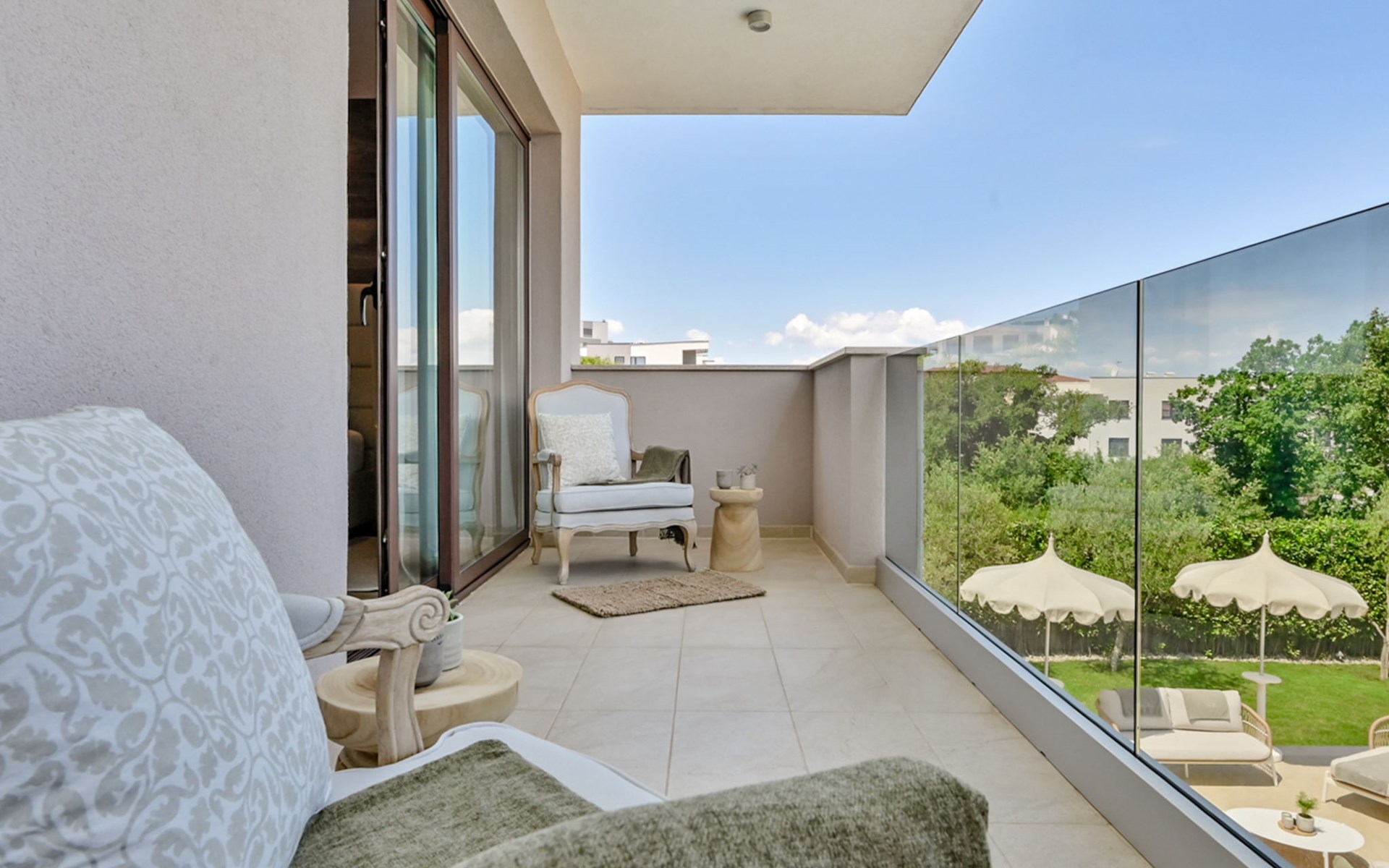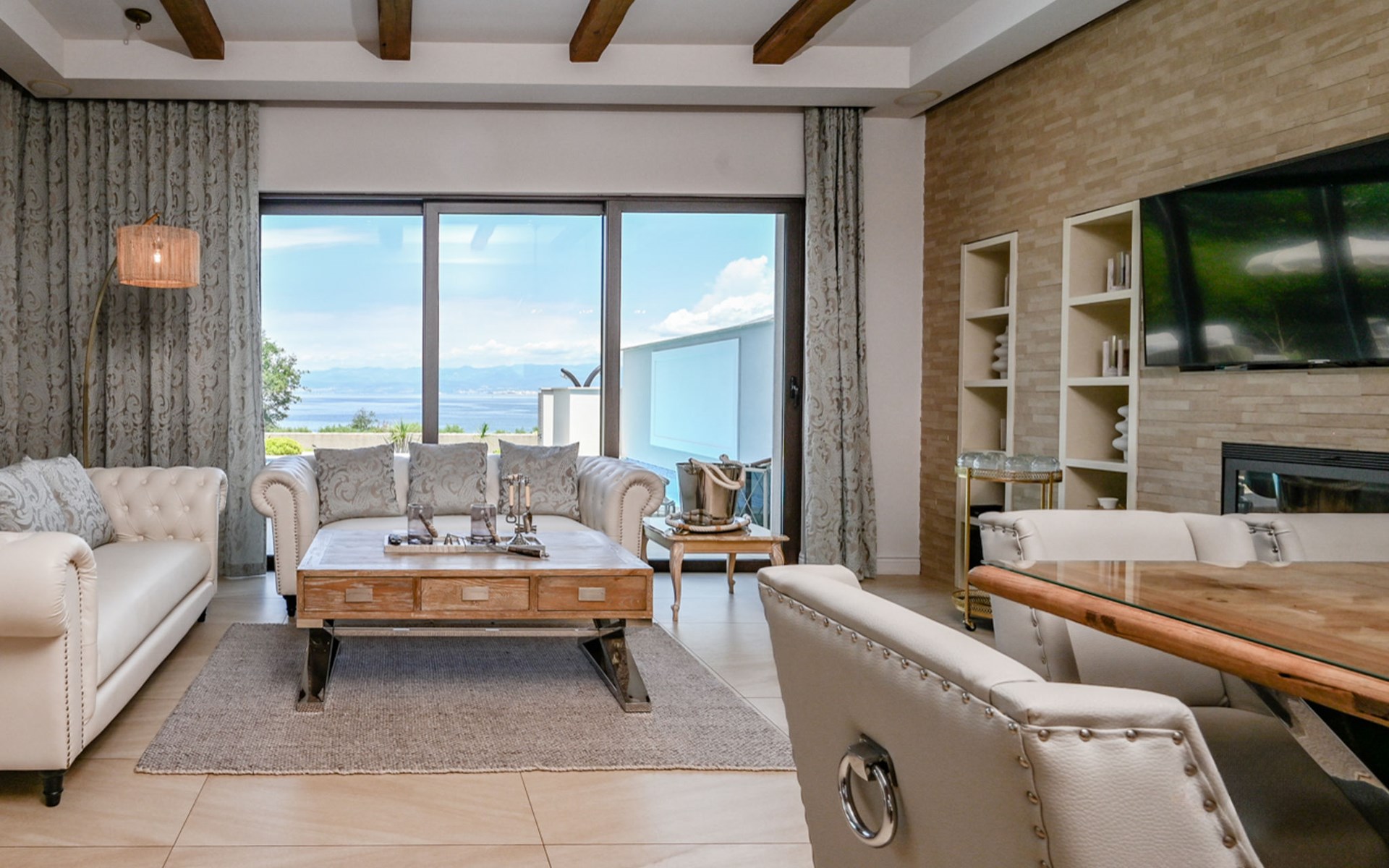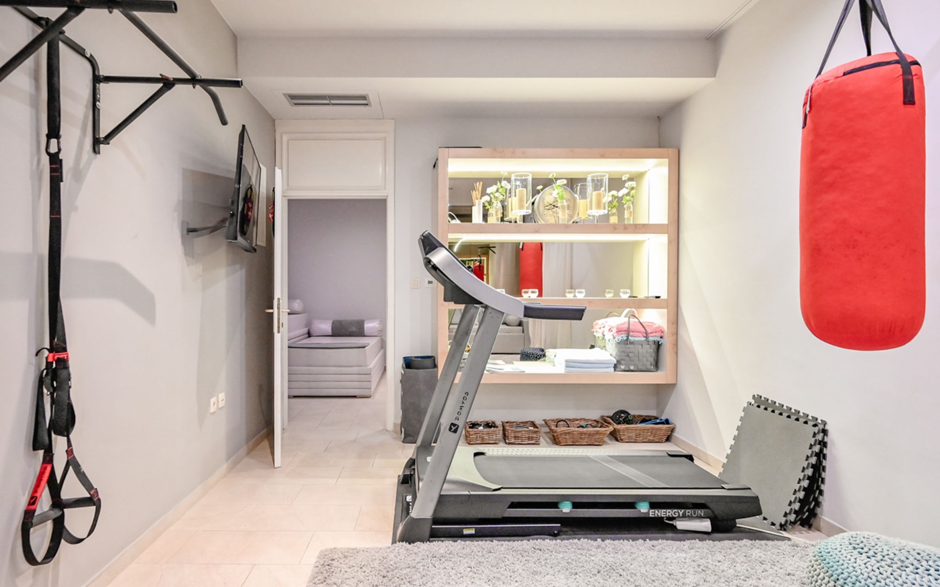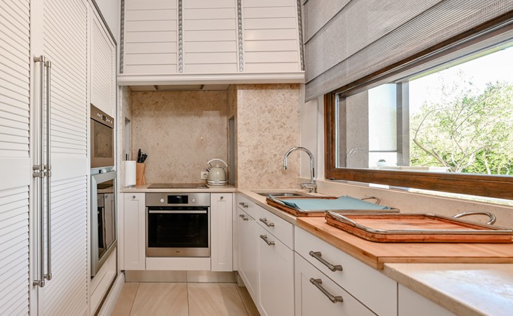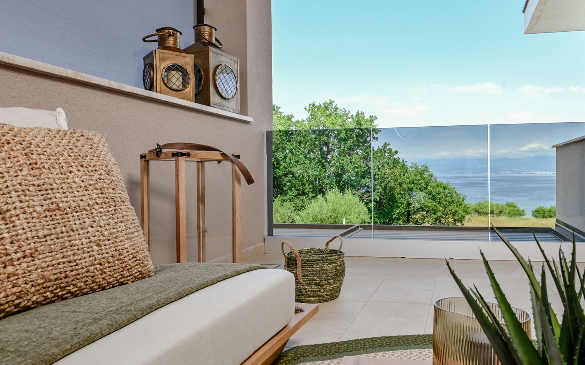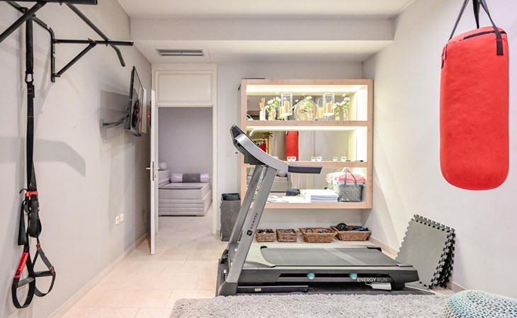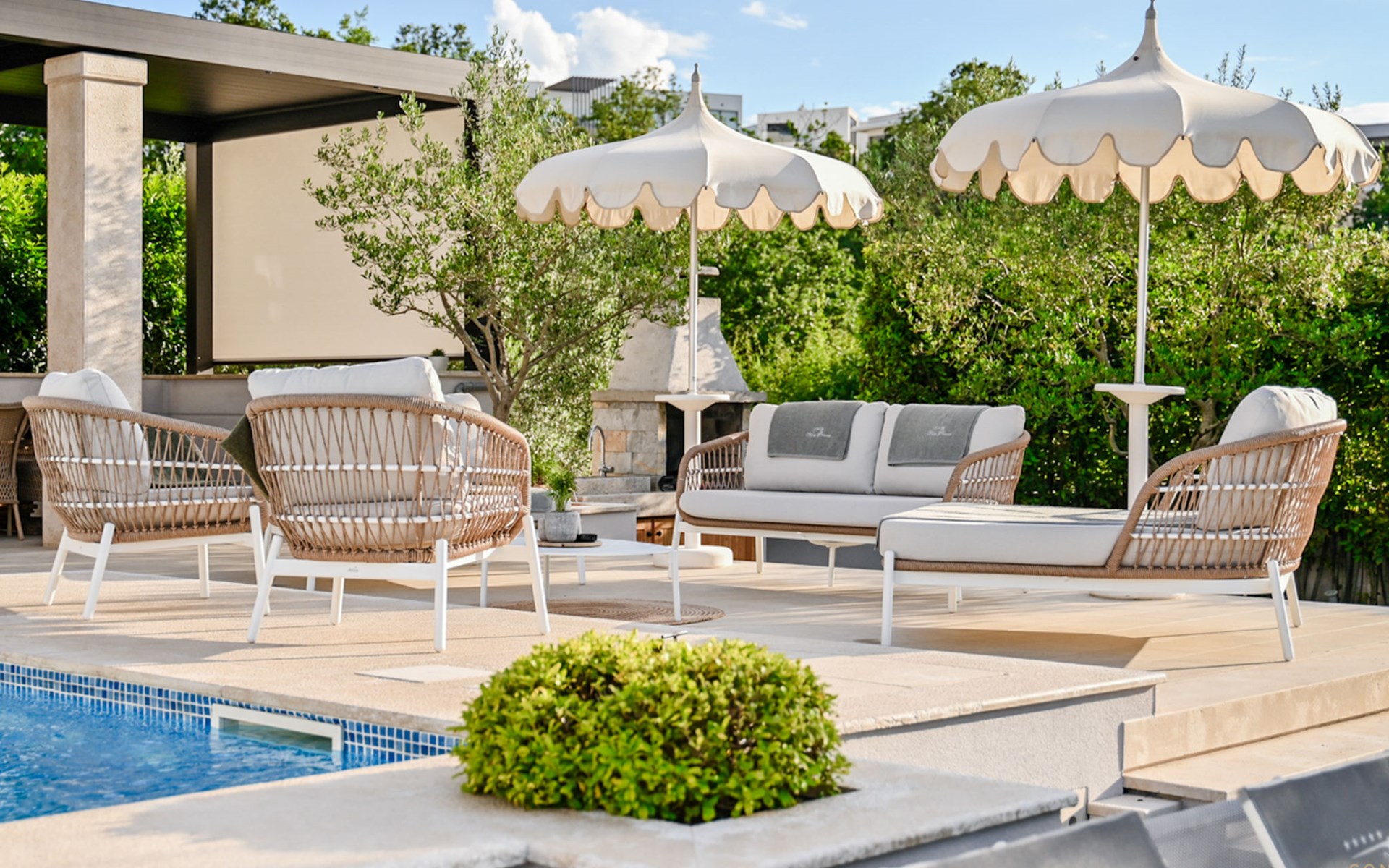 Zidarići 3 km from Malinska: Beautiful terraced house "Villa Prestige Deluxe", 2 storeys. 2.6 km from the centre of Malinska, 14 km from the centre of Krk, 150 m from the sea, 150 m from the beach. For shared use: indoor pool angular heated (6 x 3 m, depth 140 cm, seasonal availability: 01.Jan. - 01.May. and 01.Oct. - 31.Dec.) with internal staircase and salt-electrolysis pool-cleaning system. Pool maintenance by the owner/gardener. Private: property 400 m2 (fenced) with wildlife garden and trees, beautiful garden to relax, swimming pool angular (6 x 5 m, depth 140 cm, seasonal availability: 01.May. - 01.Oct.) with internal staircase and salt-electrolysis pool-cleaning system. Outdoor shower, terrace (100 m2), garden furniture, barbecue, pool maintenance by the owner/gardener. In the house: internet access, sauna, fitness room, relaxation room, air conditioning, washing machine. Parking (for 2 cars) at the house on the premises. Shop 1 km, supermarket 4 km, restaurant 200 m, bus stop 1.7 km, ferry 15 km, shingle beach 150 m. Marina 15 km, tennis 8 km. Please note: airfield 12 km from the property. Sauna, fitness room, relaxation room for shared use. The indoor pool is heated only during the months outside the summer season.