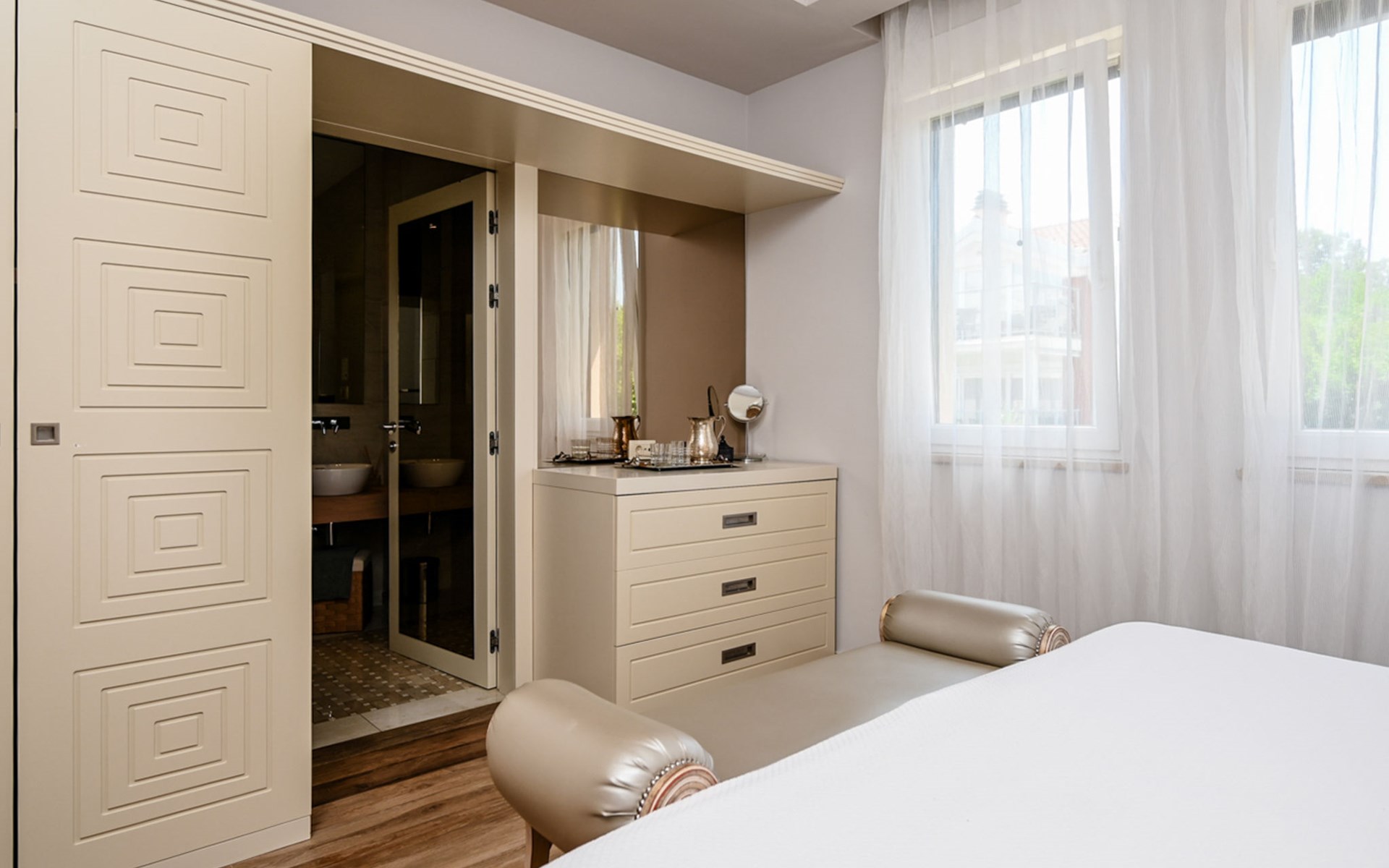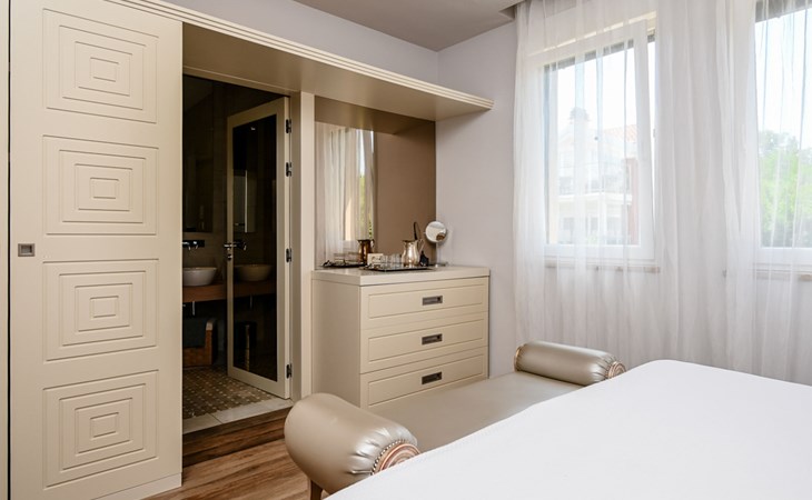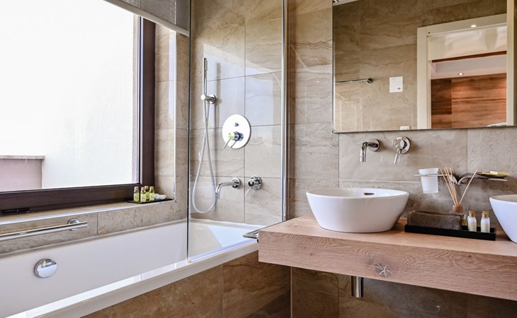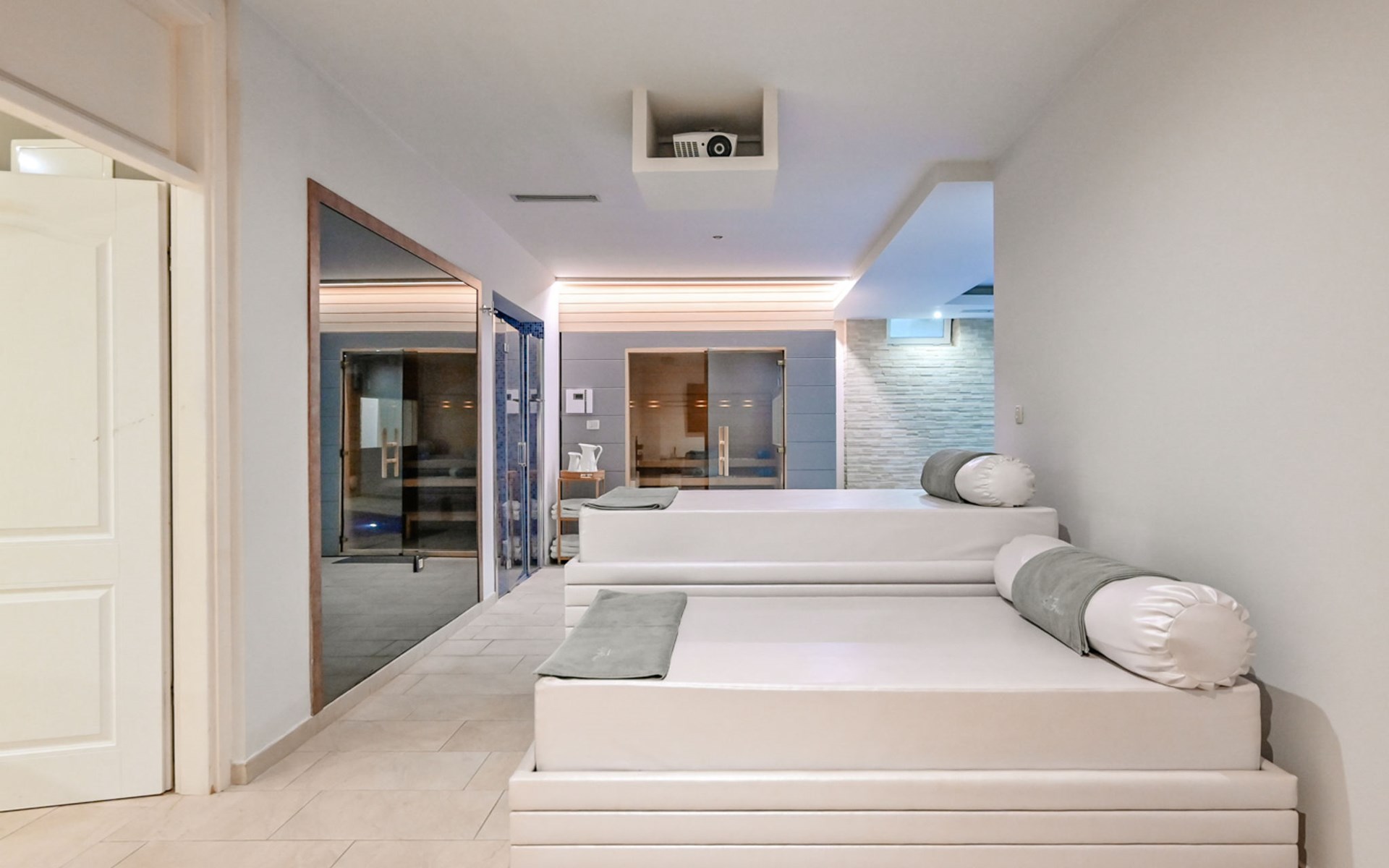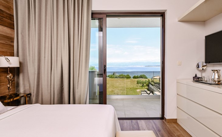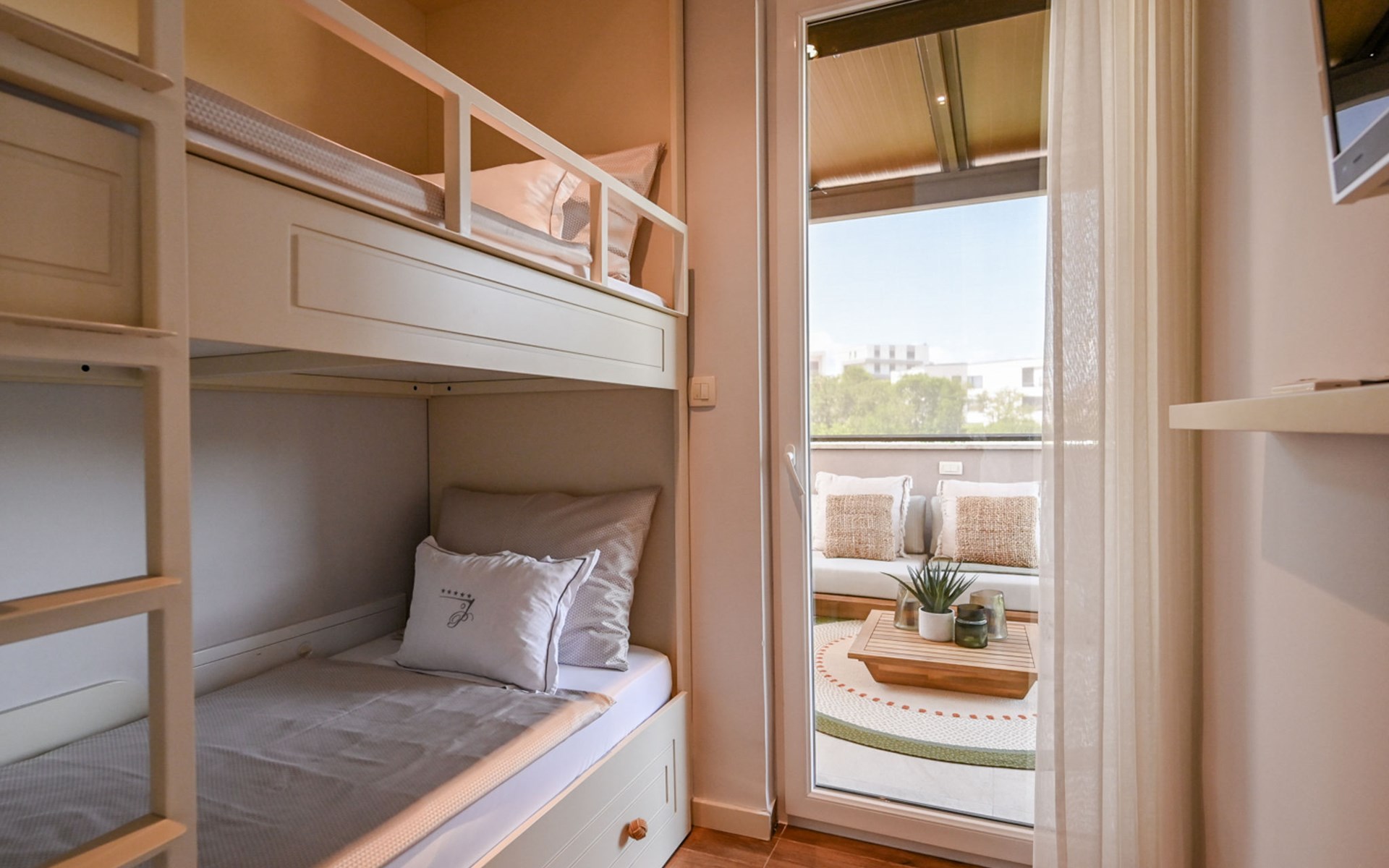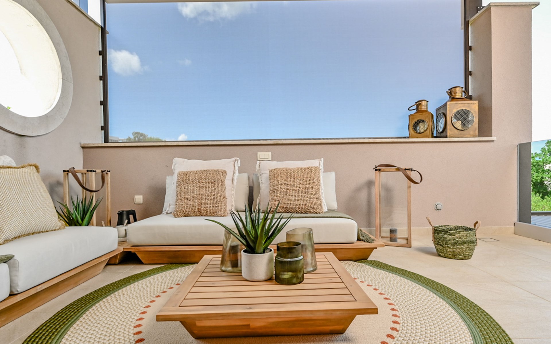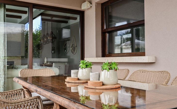 Zidarići 3 km from Malinska: Beautiful terraced house "Villa Prestige Deluxe", 2 storeys. 2.6 km from the centre of Malinska, 14 km from the centre of Krk, 150 m from the sea, 150 m from the beach. For shared use: indoor pool angular heated (6 x 3 m, depth 140 cm, seasonal availability: 01.Jan. - 01.May. and 01.Oct. - 31.Dec.) with internal staircase and salt-electrolysis pool-cleaning system. Pool maintenance by the owner/gardener. Private: property 400 m2 (fenced) with wildlife garden and trees, beautiful garden to relax, swimming pool angular (6 x 5 m, depth 140 cm, seasonal availability: 01.May. - 01.Oct.) with internal staircase and salt-electrolysis pool-cleaning system. Outdoor shower, terrace (100 m2), garden furniture, barbecue, pool maintenance by the owner/gardener. In the house: internet access, sauna, fitness room, relaxation room, air conditioning, washing machine. Parking (for 2 cars) at the house on the premises. Shop 1 km, supermarket 4 km, restaurant 200 m, bus stop 1.7 km, ferry 15 km, shingle beach 150 m. Marina 15 km, tennis 8 km. Please note: airfield 12 km from the property. Sauna, fitness room, relaxation room for shared use. The indoor pool is heated only during the months outside the summer season.
