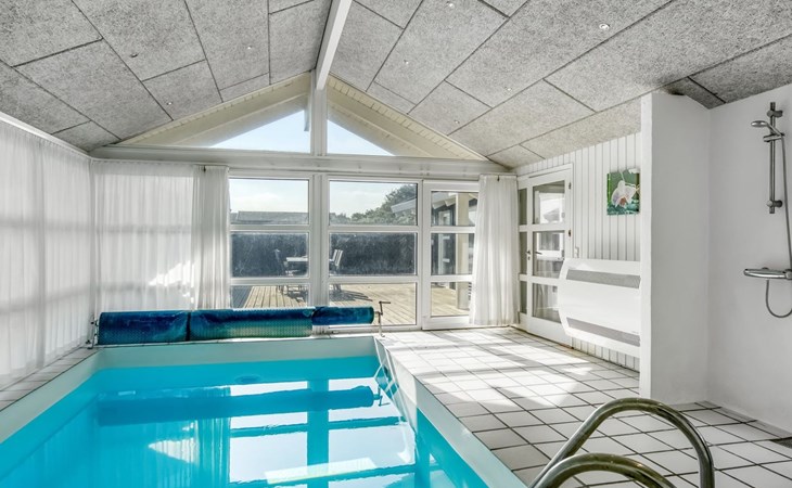 Single-family house, built in 1987. 60 m from the sea. Private: natural state property 2'590 m2, indoor pool (5 x 3 m, 1'7.5 m2, depth 150 - 150 cm). Barbecue. In the house: sauna, washing machine, tumble dryer. Parking at the house. Carport. Grocery 700 m. The owner does not accept any youth groups.