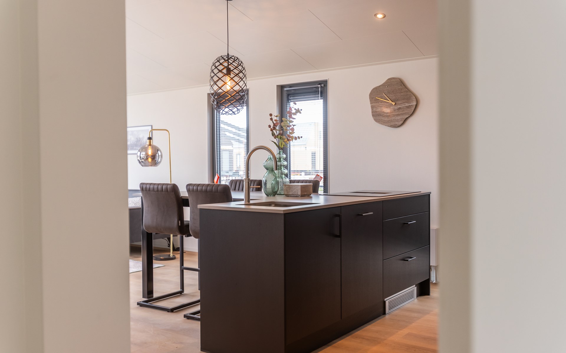 The spacious open kitchen is fully equipped with a stove, dishwasher, fridge-freezer, microwave, and oven. Unique to this home is the Quooker and wine fridge, allowing you to serve your favorite drinks at the perfect temperature.