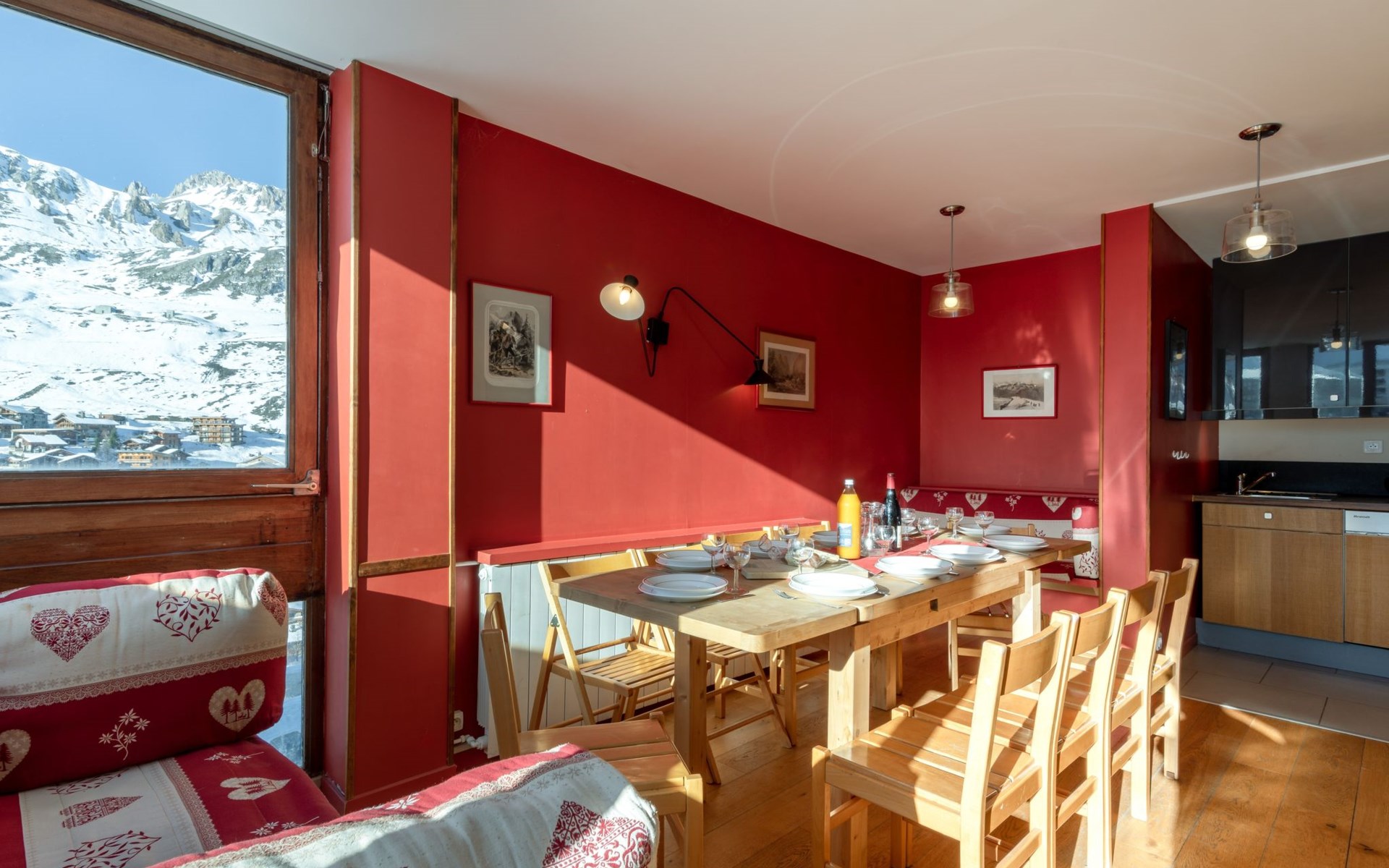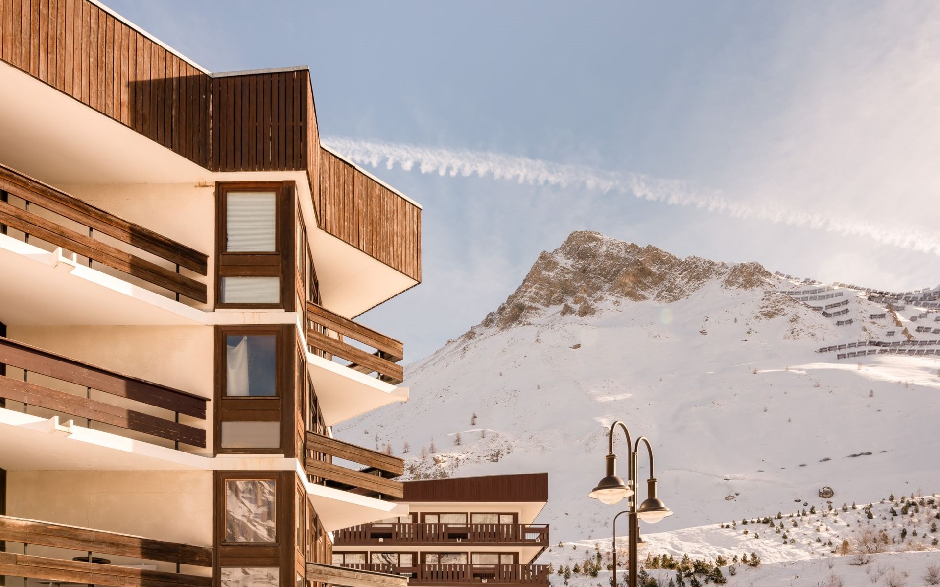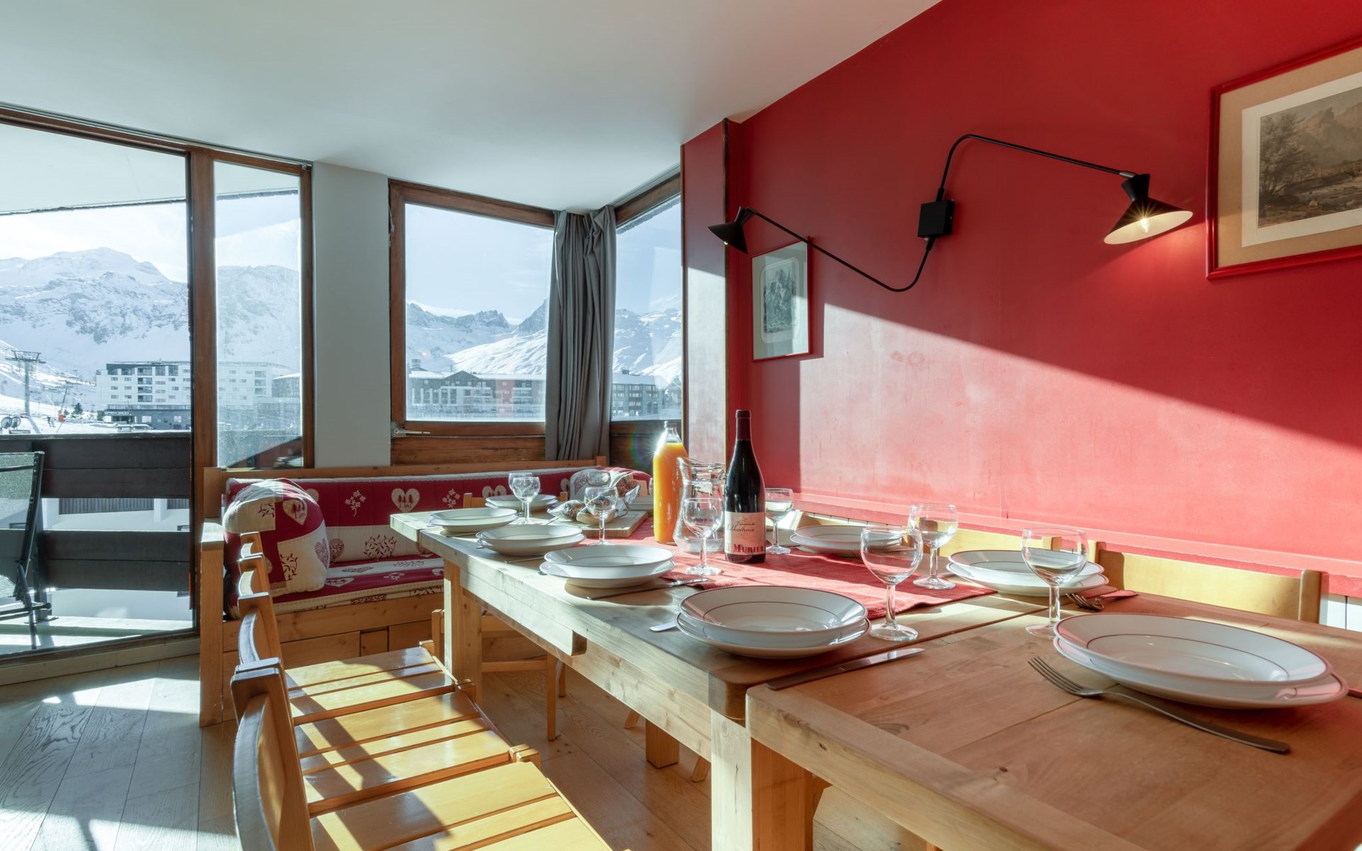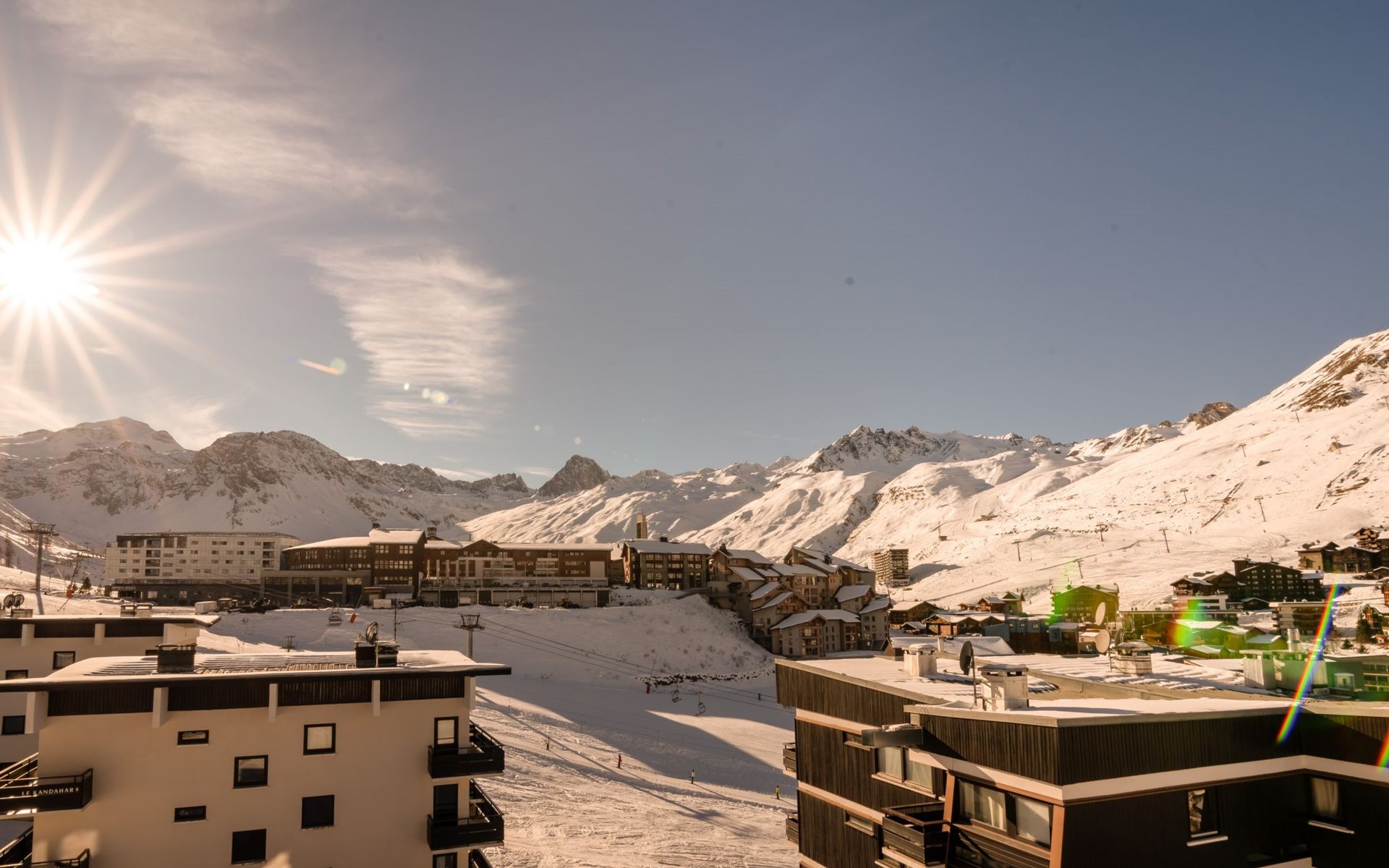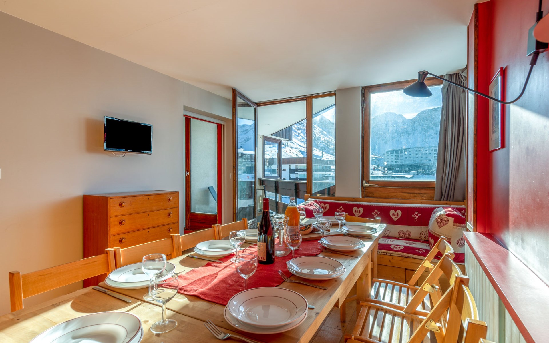 Tignes Lavachet: Apartment block "Les Roches Rouges (Lavachet)", 2 storeys. In the district of Le Lavachet, in the residential district, 50 m from the skiing area, south facing position. In the house: central heating system. Public car park at 100 m, extra. Supermarket, restaurant, bar, bakery 250 m, bus stop 300 m. Sports centre 1 km, chair lift 600 m, slopes 50 m, ski bus stop 100 m, ski school 900 m, sled run 250 m. Nearby attractions: Tignes Espace centre sportif 1 km, Lagon Piscine et Spa 950 m. Well-known ski regions can easily be reached: Tignes et Val D'Isère. 50 m. Please note: no lift.