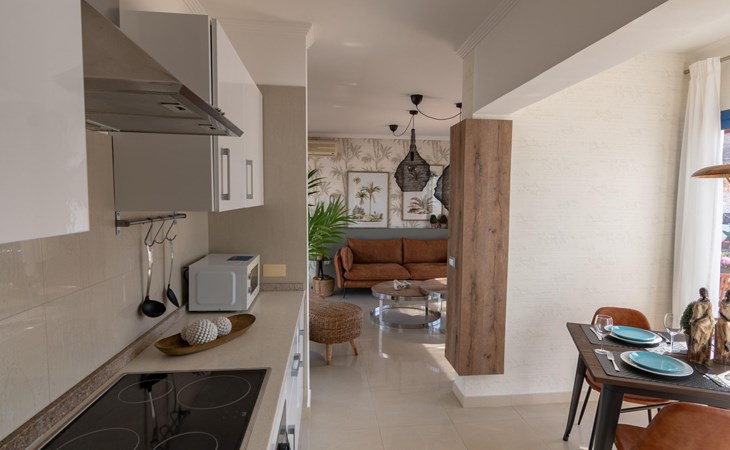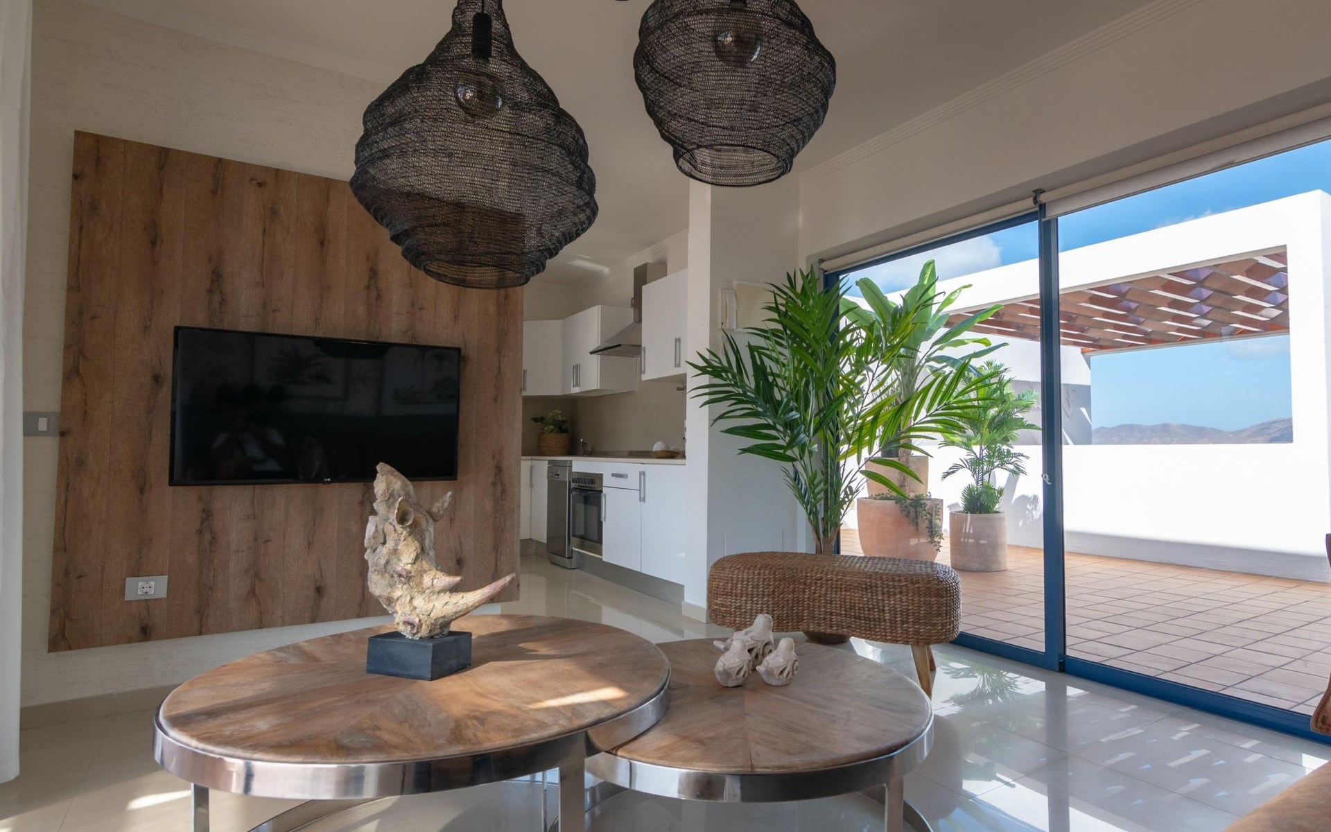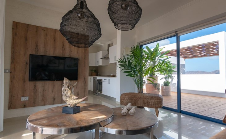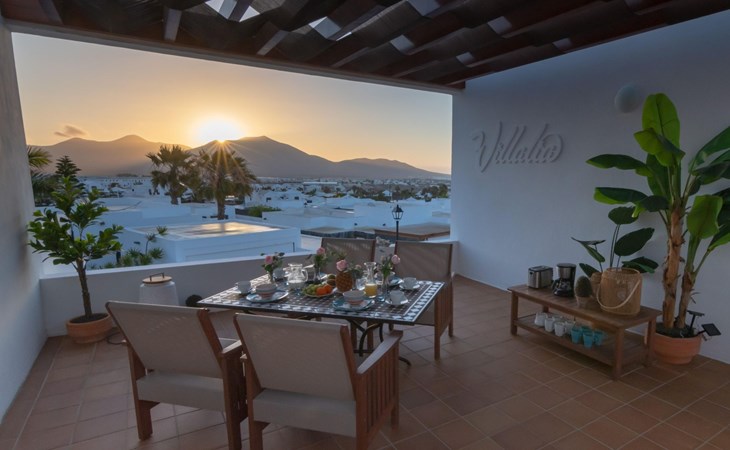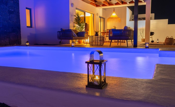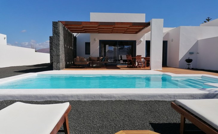 Bellavista 3 km from Playa Blanca: Beautiful terraced house "Bellavista". 2.5 km from the sea. Private: property 500 m2, swimming pool angular, heated (6 x 4 m, seasonal availability: 01.Jan. - 31.Dec.) with internal staircase. Barbecue. Stepped path (14 steps) to the house. Supermarket 500 m, restaurant 1.5 km, bus stop "El Pueblito" 550 m, sandy beach "Flaamingo" 2.5 km. Golf course (18 hole) 32 km, riding stable 1.5 km. Nearby attractions: Paque acĂșatico Agualava 1.8 km. Please note: car recommended.