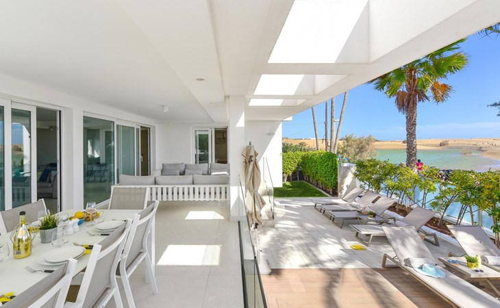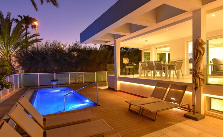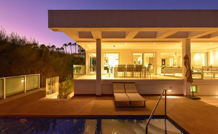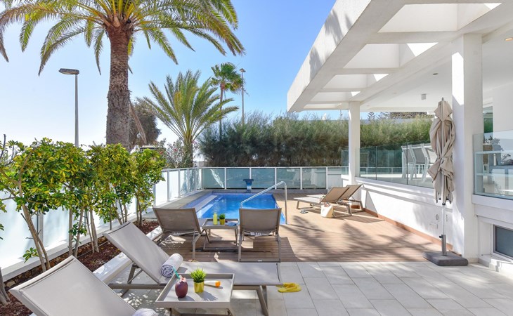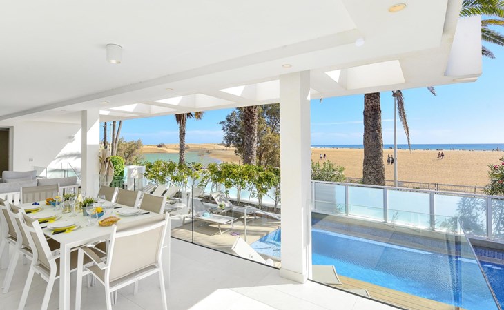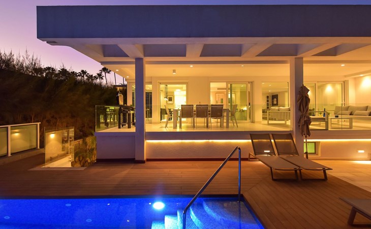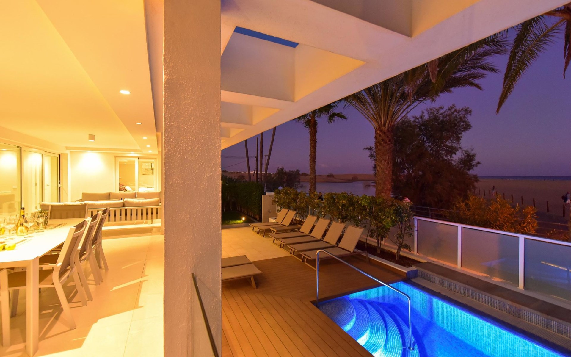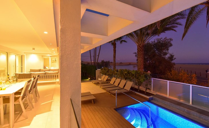 Your villa will be lighted and you will find the keys inside the safebox you will see on the wall, next to the entrance gate, bare in mind the safebox is quite high. Please enter the code 2929 to open the safebox and once you have the keys, please erase it. Furthermore, please also note that a message to the mentioned number/email, once you are in the villa, either if everything is ok or if there is any problem, will really be appreciated. (Just for our relief). large, modern villa. In the centre of Maspalomas, in a central, sunny position, 100 m from the sea, 100 m from the beach, direct access to the beach. Private: swimming pool angular, heated (6 x 2 m, depth 120 cm, seasonal availability: 01.Jan. - 31.Dec.). Shopping centre 5 km, restaurant 20 m, bus stop "Faro de Maspalomas" 450 m. Golf course (18 hole) 3 km. Nearby attractions: Playa del Inglés 1 km, Playa de las Mujeres 2 km, Yumbo Centrum 5 km. The owner does not accept any youth groups. Neighbourhood highly sensitive to noise. Quietness and good behaviour expected.