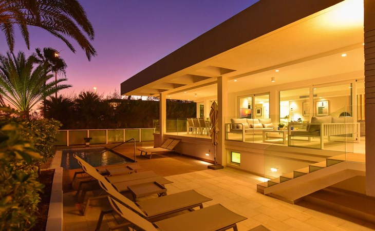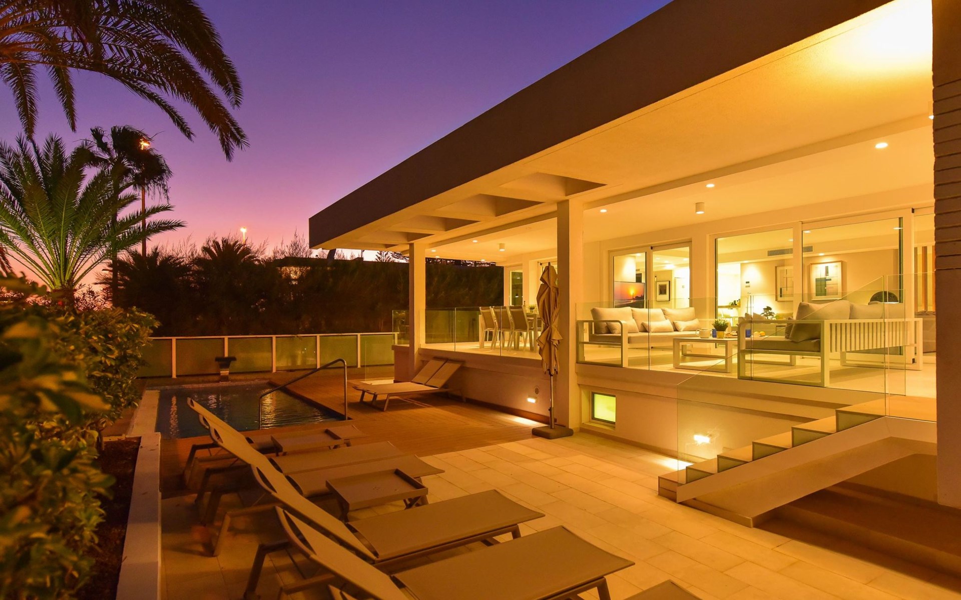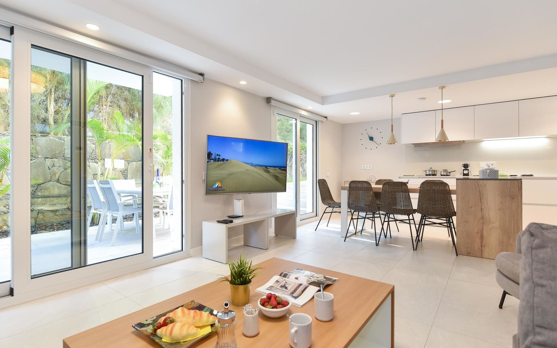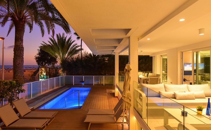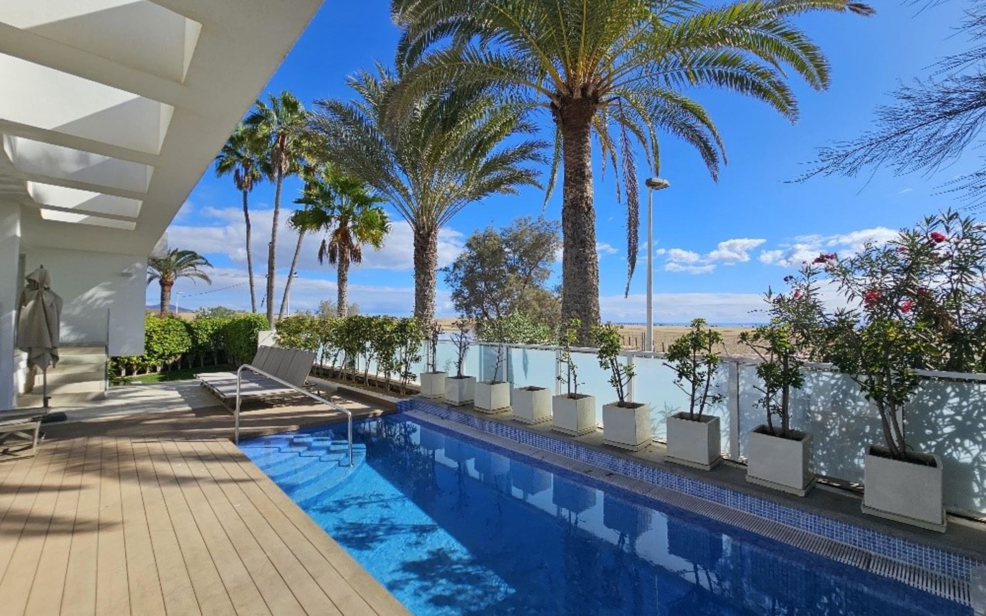 Your villa will be lighted and you will find the keys inside the safebox you will see on the wall, next to the entrance gate, bare in mind the safebox is quite high. Please enter the code 2929 to open the safebox and once you have the keys, please erase it. Furthermore, please also note that a message to the mentioned number/email, once you are in the villa, either if everything is ok or if there is any problem, will really be appreciated. (Just for our relief). large, modern villa. In the centre of Maspalomas, in a central, sunny position, 100 m from the sea, 100 m from the beach, direct access to the beach. Private: swimming pool angular, heated (6 x 2 m, depth 120 cm, seasonal availability: 01.Jan. - 31.Dec.). Shopping centre 5 km, restaurant 20 m, bus stop "Faro de Maspalomas" 450 m. Golf course (18 hole) 3 km. Nearby attractions: Playa del Inglés 1 km, Playa de las Mujeres 2 km, Yumbo Centrum 5 km. The owner does not accept any youth groups. Neighbourhood highly sensitive to noise. Quietness and good behaviour expected.