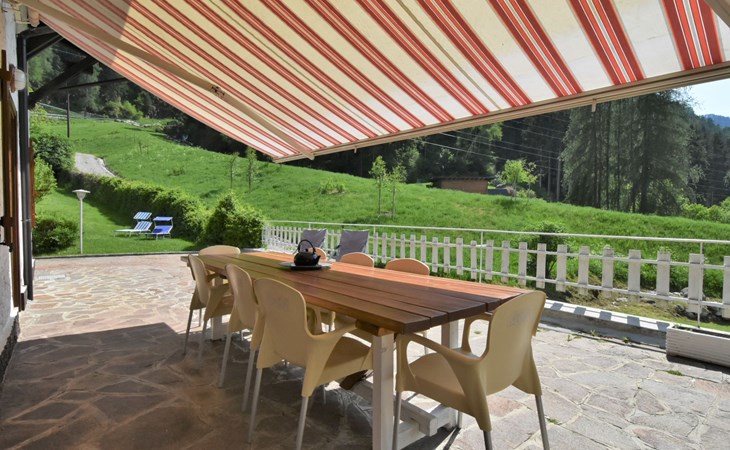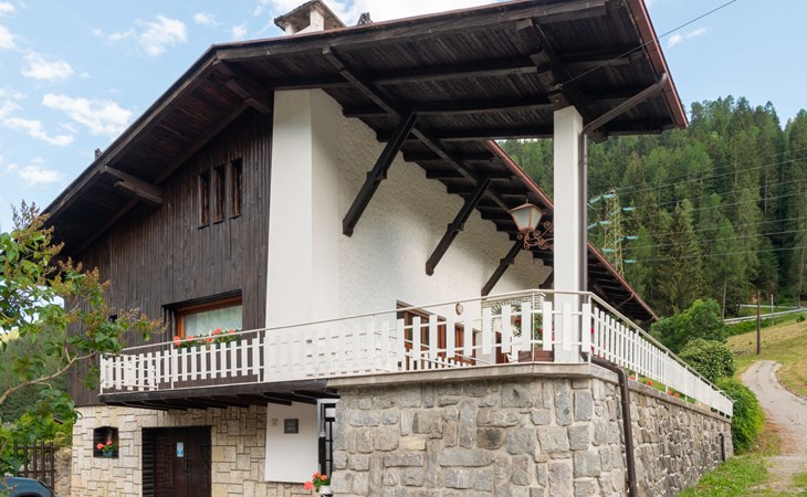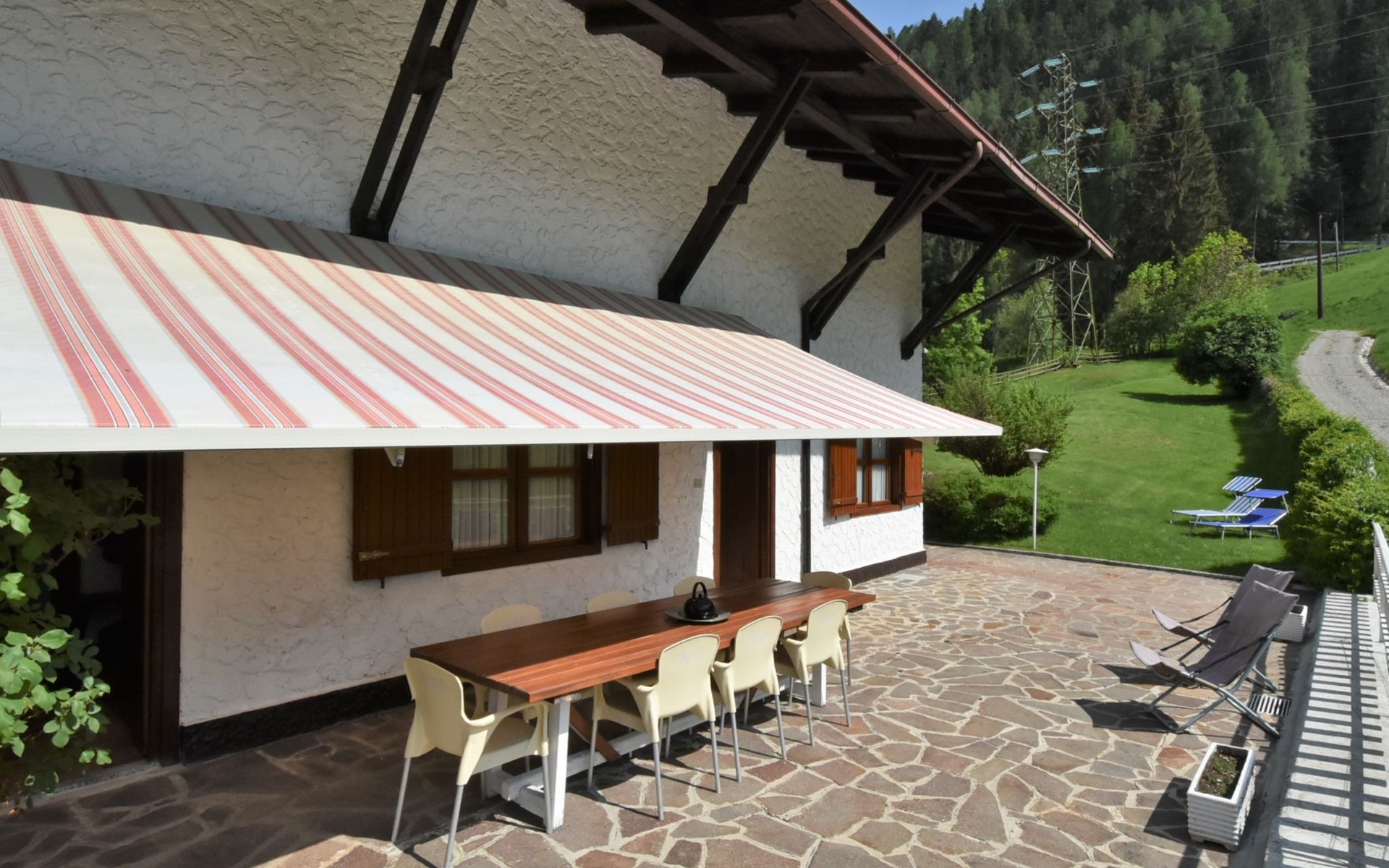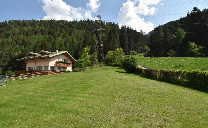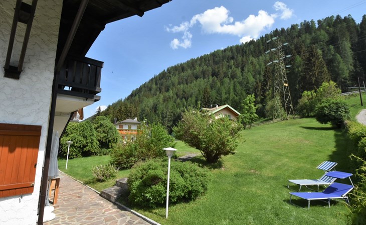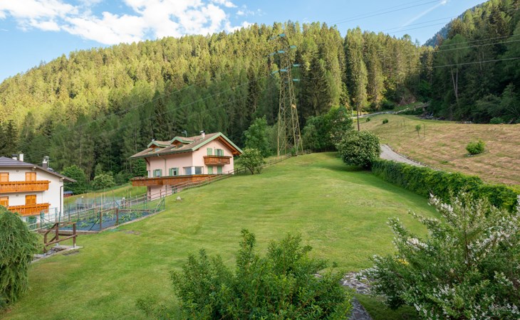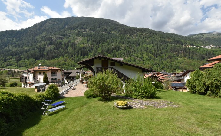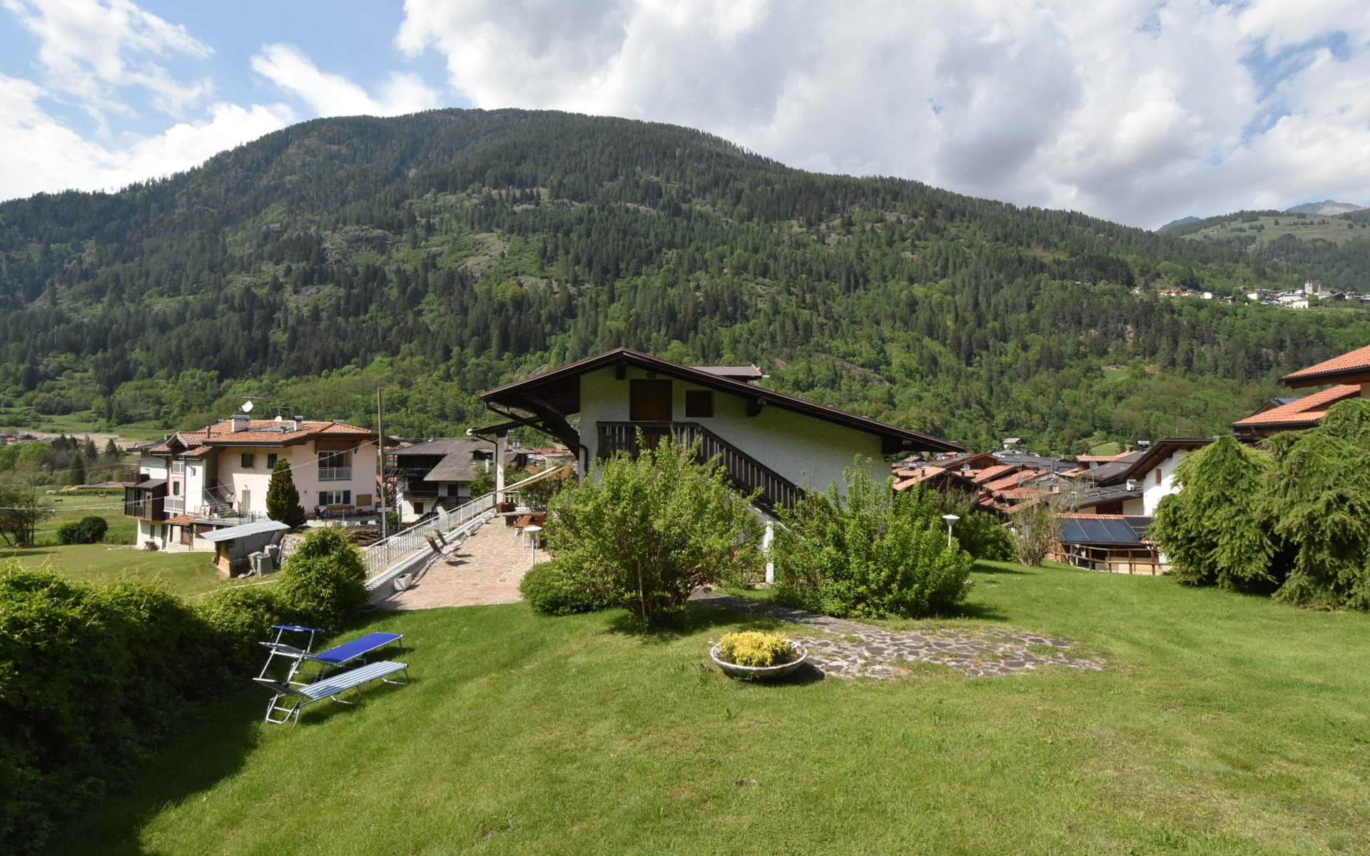 Beautiful, comfortable villa "Villa Lucia", 937 m a.s.l., 2 storeys, semi-detached, built in 1960, surrounded by trees and meadows. 300 m from the centre of Pellizzano, in a quiet position residential area (villas), along the wooded area, 4.5 km from the skiing area. Private: garden 3'000 m2 (not fenced) with lawn and trees. Terrace (100 m2), barbecue. In the house: storage room for bicycles, sun terrace, storage room for skis. In Winter: please take snow chains. Stepped path (14 steps) to the house. Parking (for 2 cars) at the house, public parking 100 m on the road. Supermarket 500 m, restaurant, bar, café 300 m, bus stop "Pellizzano" 300 m. Nearby attractions: Marilleva 900/ Marilleva 1400 4.5 km, Passo del Tonale 17 km, Madonna di Campiglio 25 km, Rafting/Canoe/Outdoor Center-Val di Sole 1.5 km. Hiking paths: Lago di Pian Palu', sentiero degli Gnomi, Lago dei Caprioli, Sass Pisador. Please note: the owner lives on the same property. Please note: garden maintenance by the owner/gardener. A double bedroom and a bedroom with 2 beds and WC are located next to the main building with private access from the terrace.