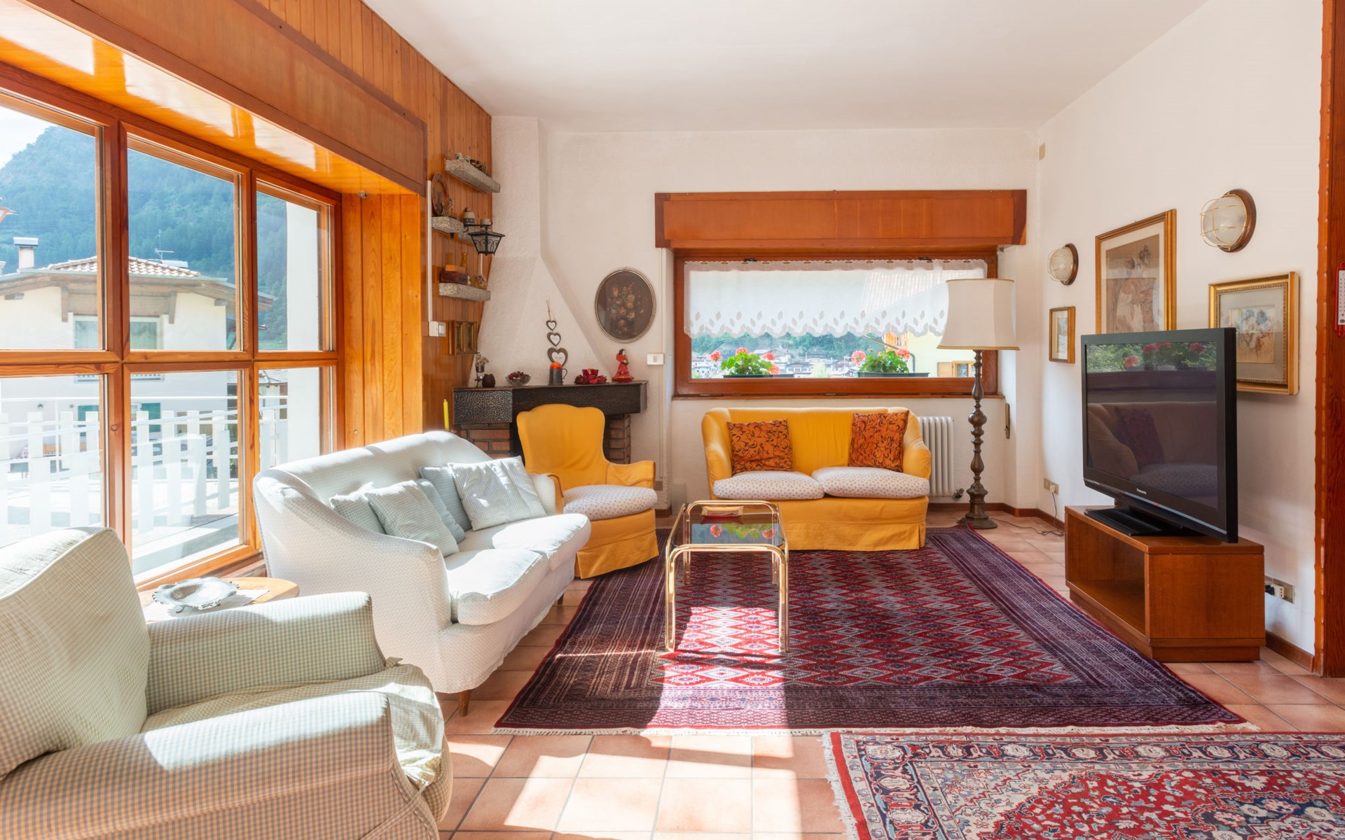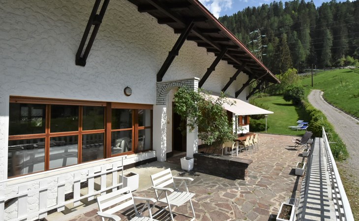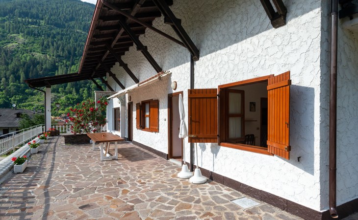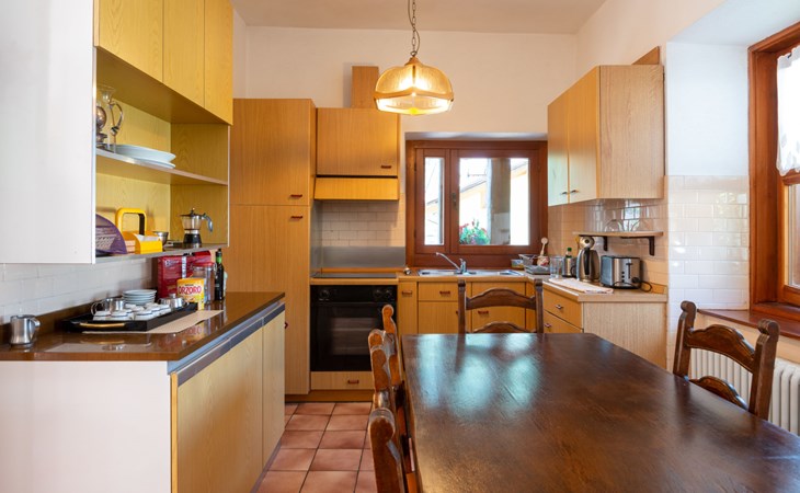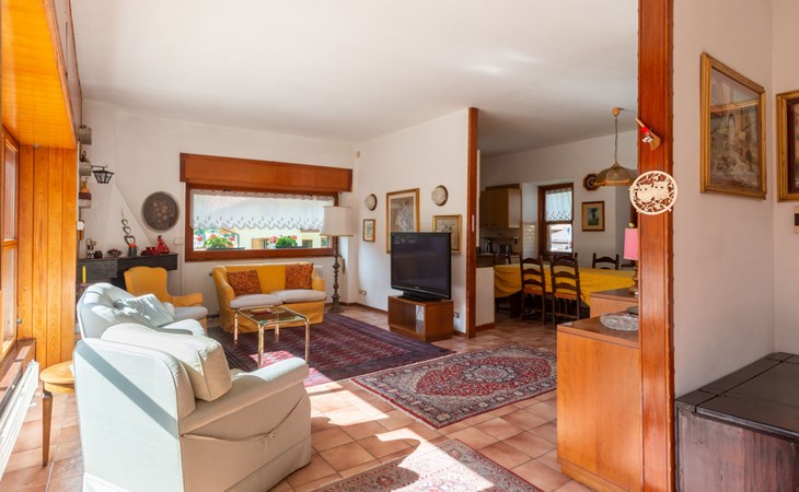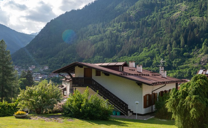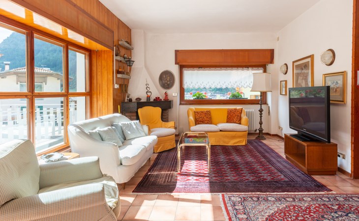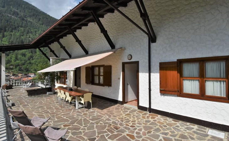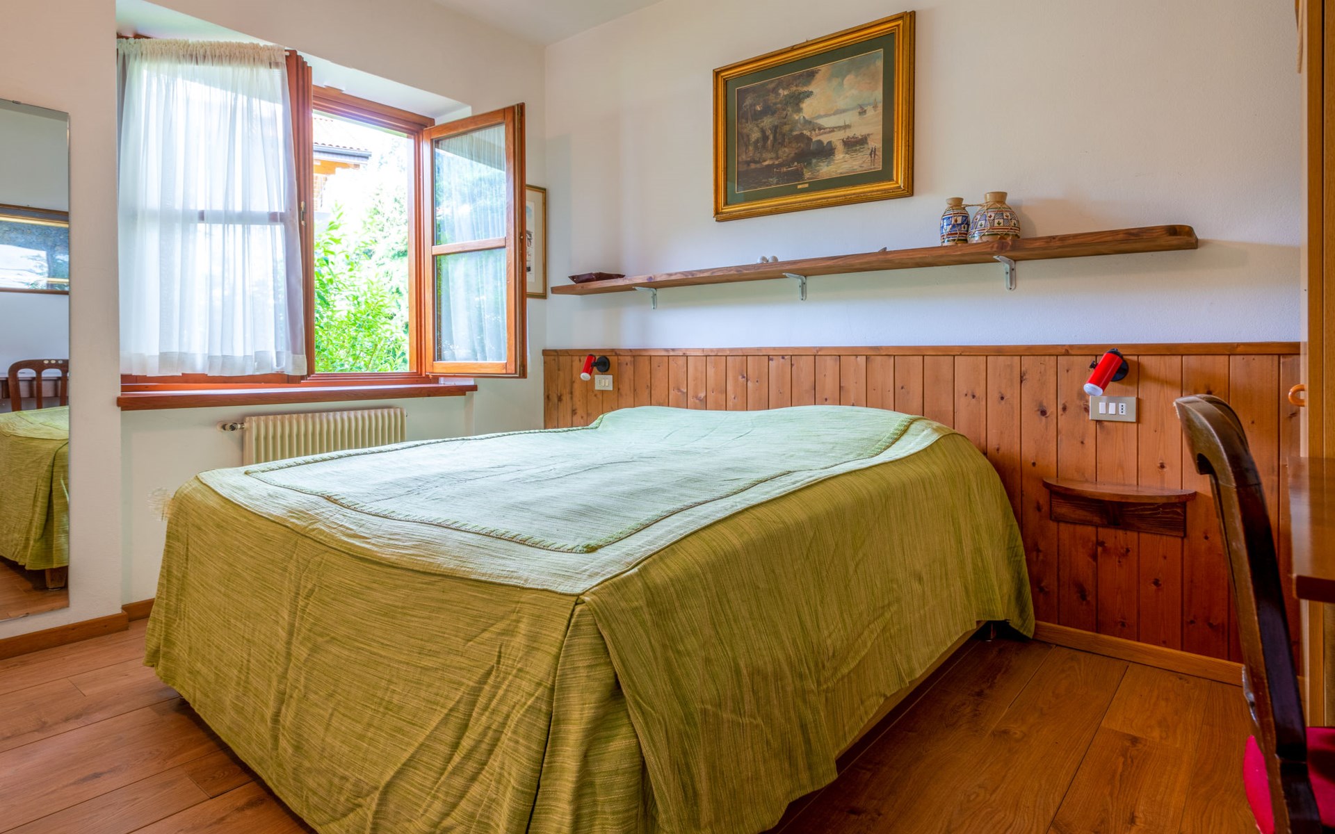 Beautiful, comfortable villa "Villa Lucia", 937 m a.s.l., 2 storeys, semi-detached, built in 1960, surrounded by trees and meadows. 300 m from the centre of Pellizzano, in a quiet position residential area (villas), along the wooded area, 4.5 km from the skiing area. Private: garden 3'000 m2 (not fenced) with lawn and trees. Terrace (100 m2), barbecue. In the house: storage room for bicycles, sun terrace, storage room for skis. In Winter: please take snow chains. Stepped path (14 steps) to the house. Parking (for 2 cars) at the house, public parking 100 m on the road. Supermarket 500 m, restaurant, bar, café 300 m, bus stop "Pellizzano" 300 m. Nearby attractions: Marilleva 900/ Marilleva 1400 4.5 km, Passo del Tonale 17 km, Madonna di Campiglio 25 km, Rafting/Canoe/Outdoor Center-Val di Sole 1.5 km. Hiking paths: Lago di Pian Palu', sentiero degli Gnomi, Lago dei Caprioli, Sass Pisador. Please note: the owner lives on the same property. Please note: garden maintenance by the owner/gardener. A double bedroom and a bedroom with 2 beds and WC are located next to the main building with private access from the terrace.