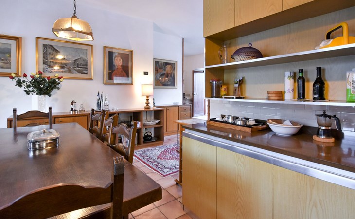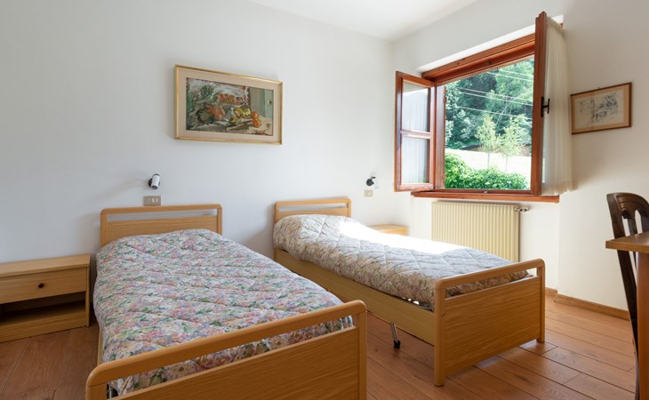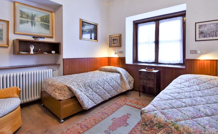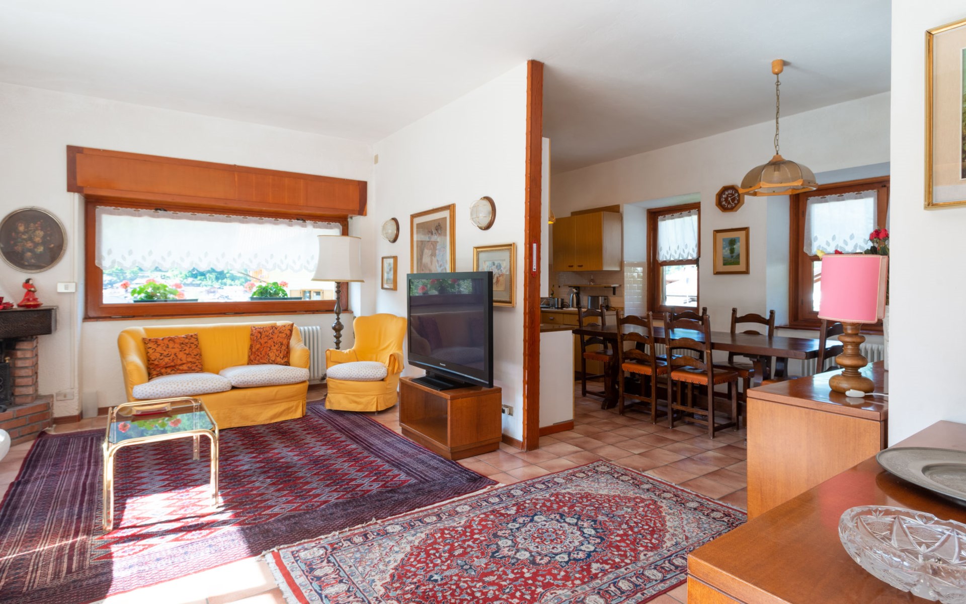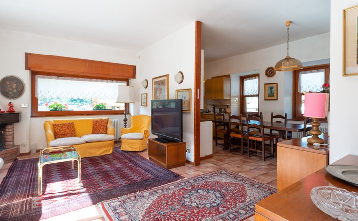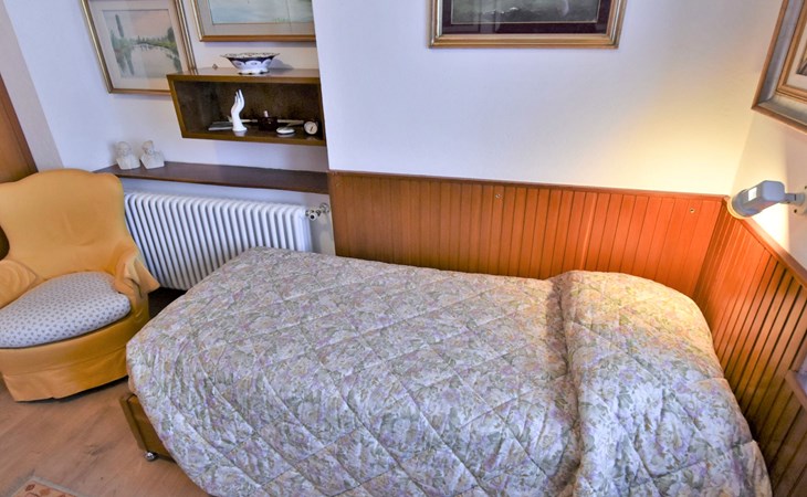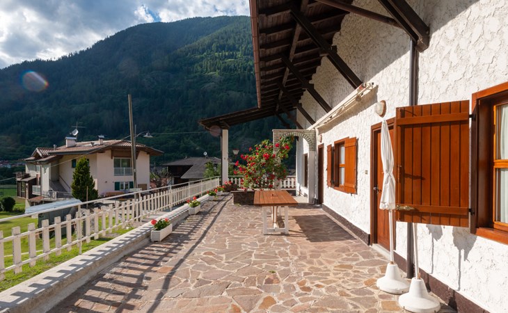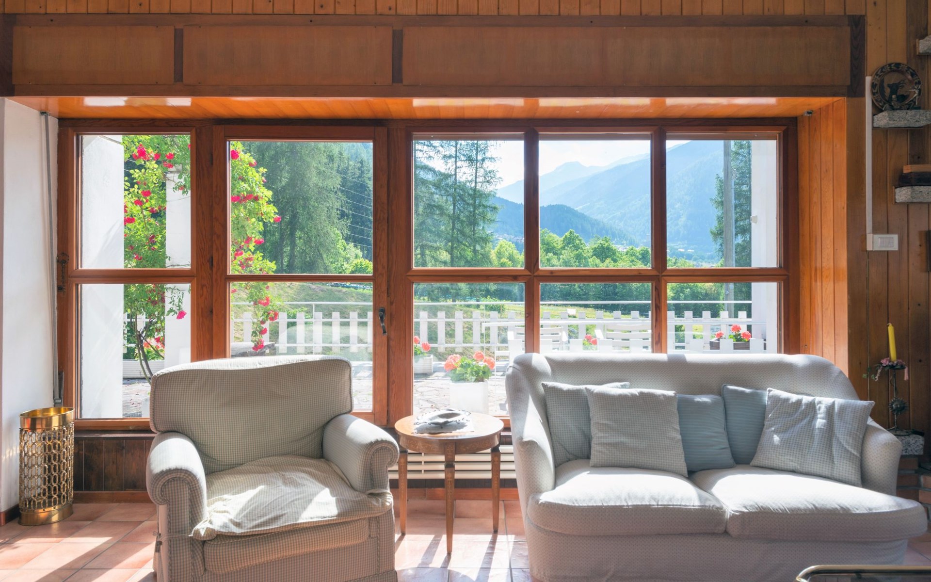 Beautiful, comfortable villa "Villa Lucia", 937 m a.s.l., 2 storeys, semi-detached, built in 1960, surrounded by trees and meadows. 300 m from the centre of Pellizzano, in a quiet position residential area (villas), along the wooded area, 4.5 km from the skiing area. Private: garden 3'000 m2 (not fenced) with lawn and trees. Terrace (100 m2), barbecue. In the house: storage room for bicycles, sun terrace, storage room for skis. In Winter: please take snow chains. Stepped path (14 steps) to the house. Parking (for 2 cars) at the house, public parking 100 m on the road. Supermarket 500 m, restaurant, bar, café 300 m, bus stop "Pellizzano" 300 m. Nearby attractions: Marilleva 900/ Marilleva 1400 4.5 km, Passo del Tonale 17 km, Madonna di Campiglio 25 km, Rafting/Canoe/Outdoor Center-Val di Sole 1.5 km. Hiking paths: Lago di Pian Palu', sentiero degli Gnomi, Lago dei Caprioli, Sass Pisador. Please note: the owner lives on the same property. Please note: garden maintenance by the owner/gardener. A double bedroom and a bedroom with 2 beds and WC are located next to the main building with private access from the terrace.