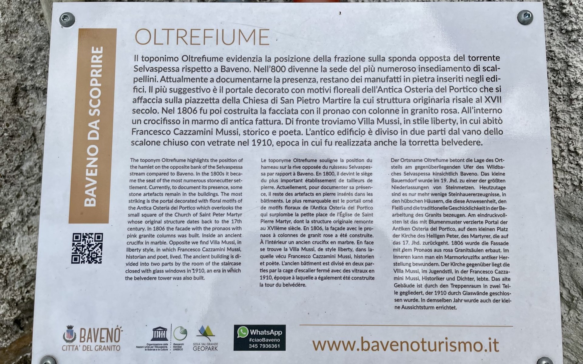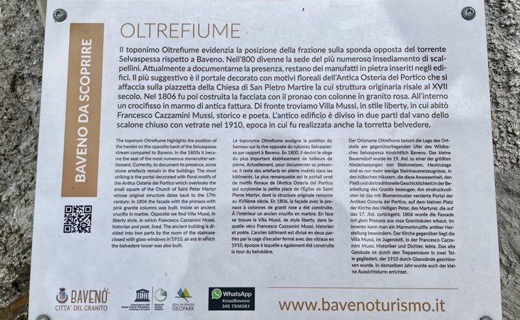 Historical terraced house "Casa del Villaggio". In the hamlet Oltrefiume 800 m from the centre of Baveno, 3.8 km from the centre of Stresa, 100 km from the centre of Mailand, in a quiet position, 1 km from the lake. 30 m long narrow motor access to the house. Public parking 100 m. Supermarket 1 km, restaurant 1 km, bus stop "baveno" 1.1 km, railway station "Baveno" 1 km, grass beach 1.5 km. Golf course (9 hole) 13 km, mountain railway 4 km. Nearby attractions: Villa Fedore 1.5 km, Villa Henfrey Branca 14 km, Isole Borromee, SS. Gervaso e Protaso, Museo Granum. Well-known lakes can easily be reached: Lago di Mergozzo. Hiking paths: Mottarone. Please note: car recommended. Loading and unloading of baggage is possible at the holiday house. Part of the house is closed and unoccupied. The keys‘ handover takes place by the agency Interhome in Verbania, 13 km.
