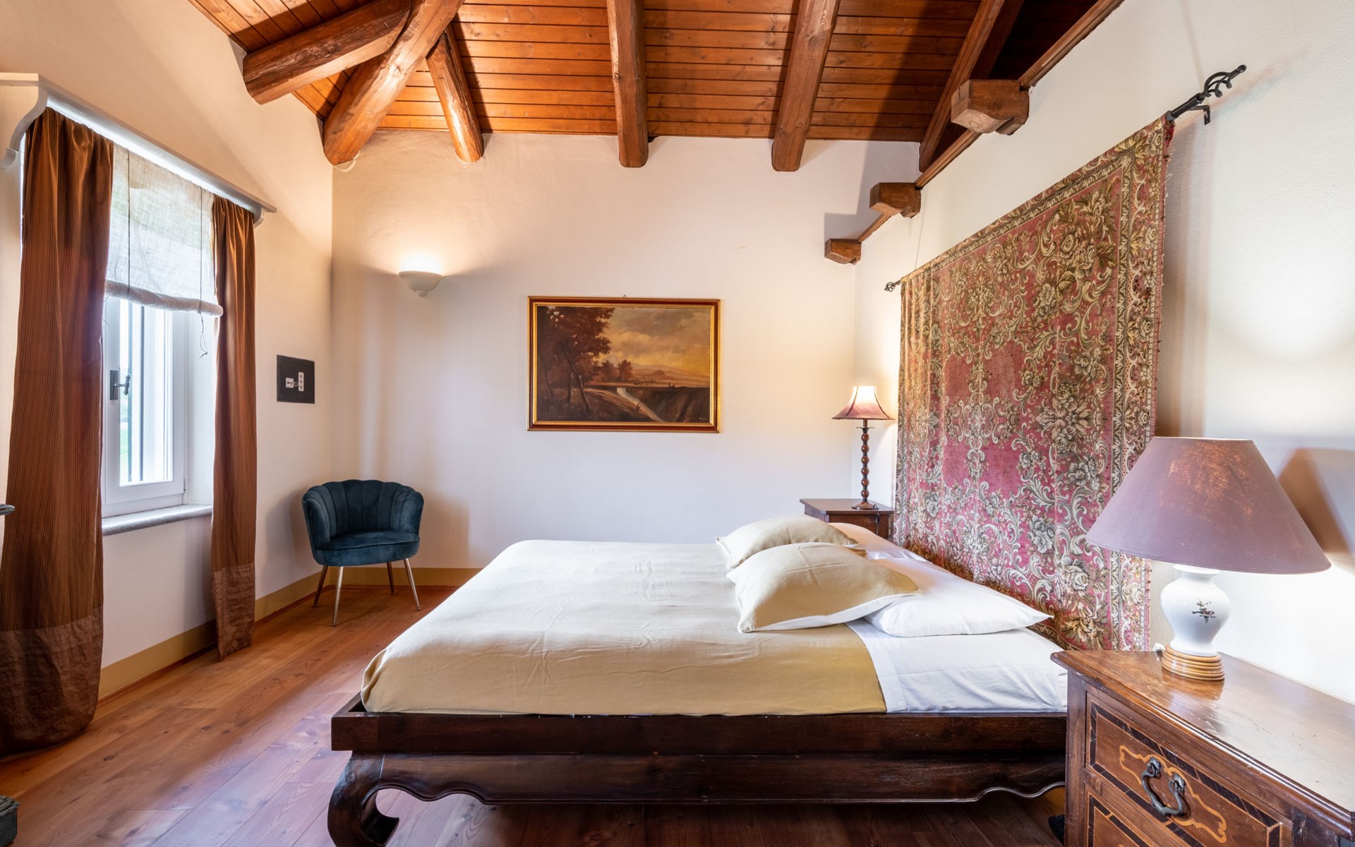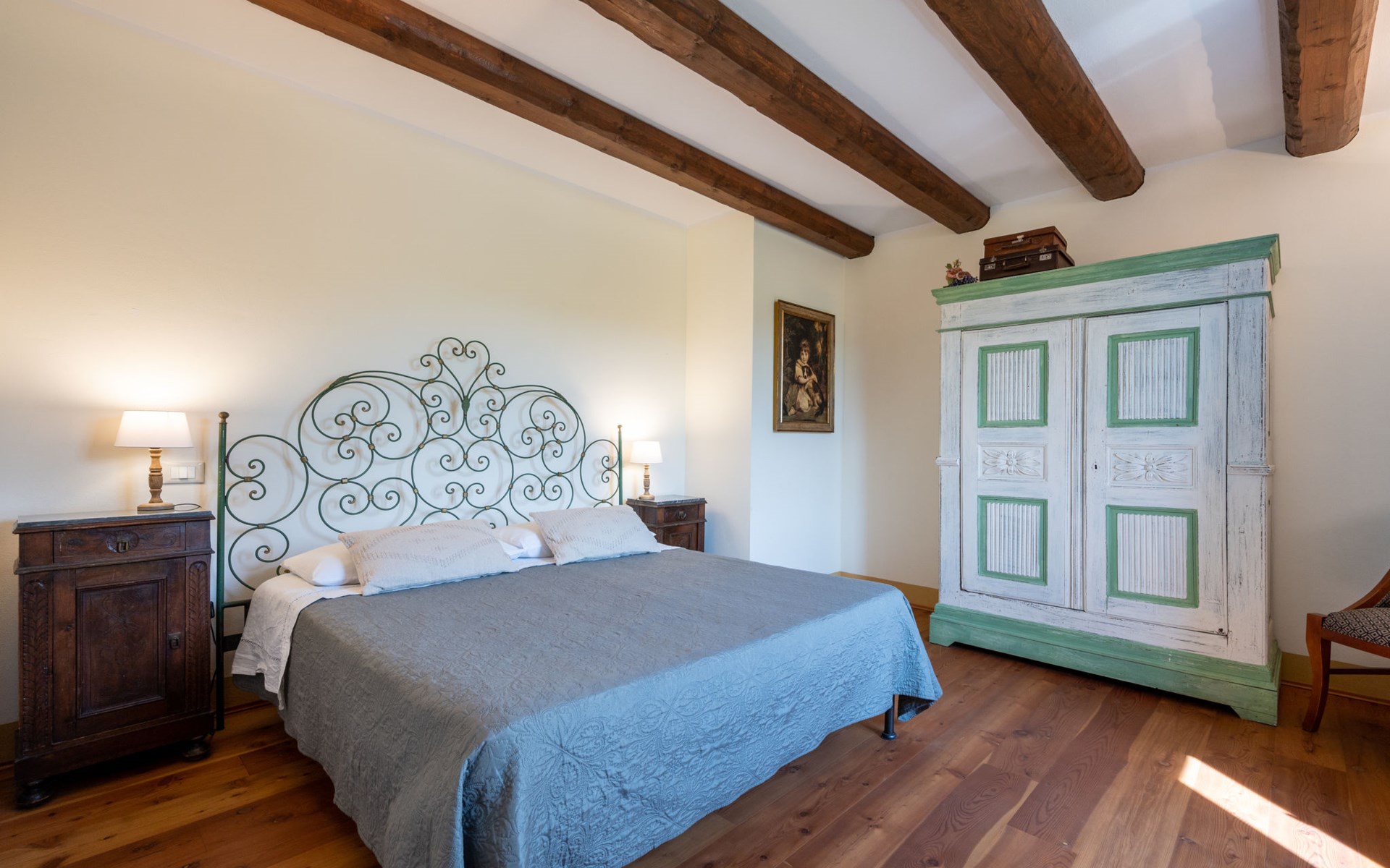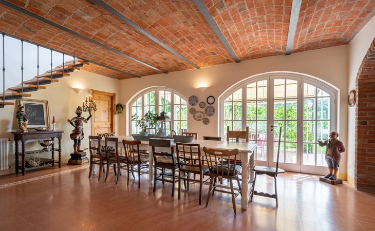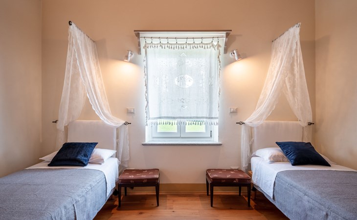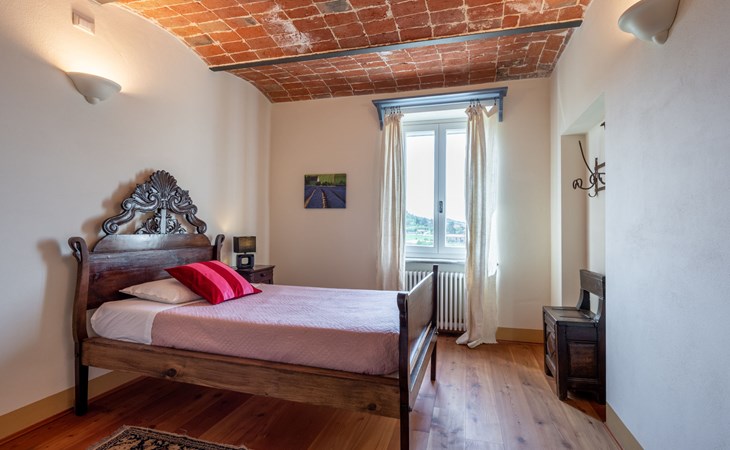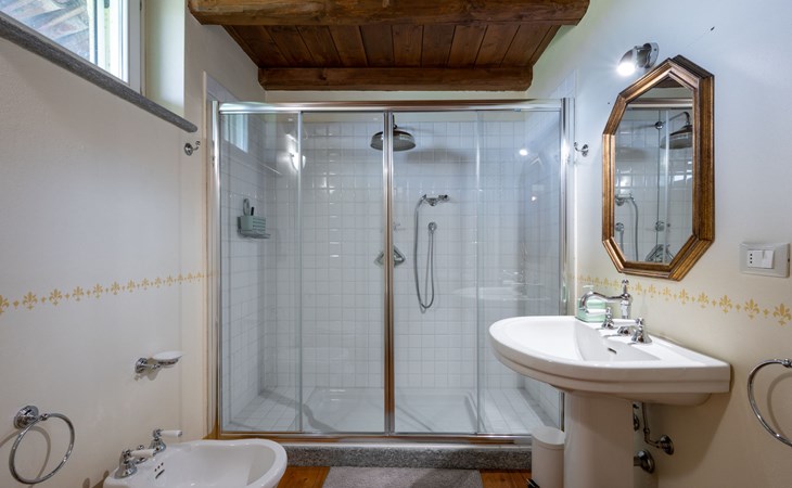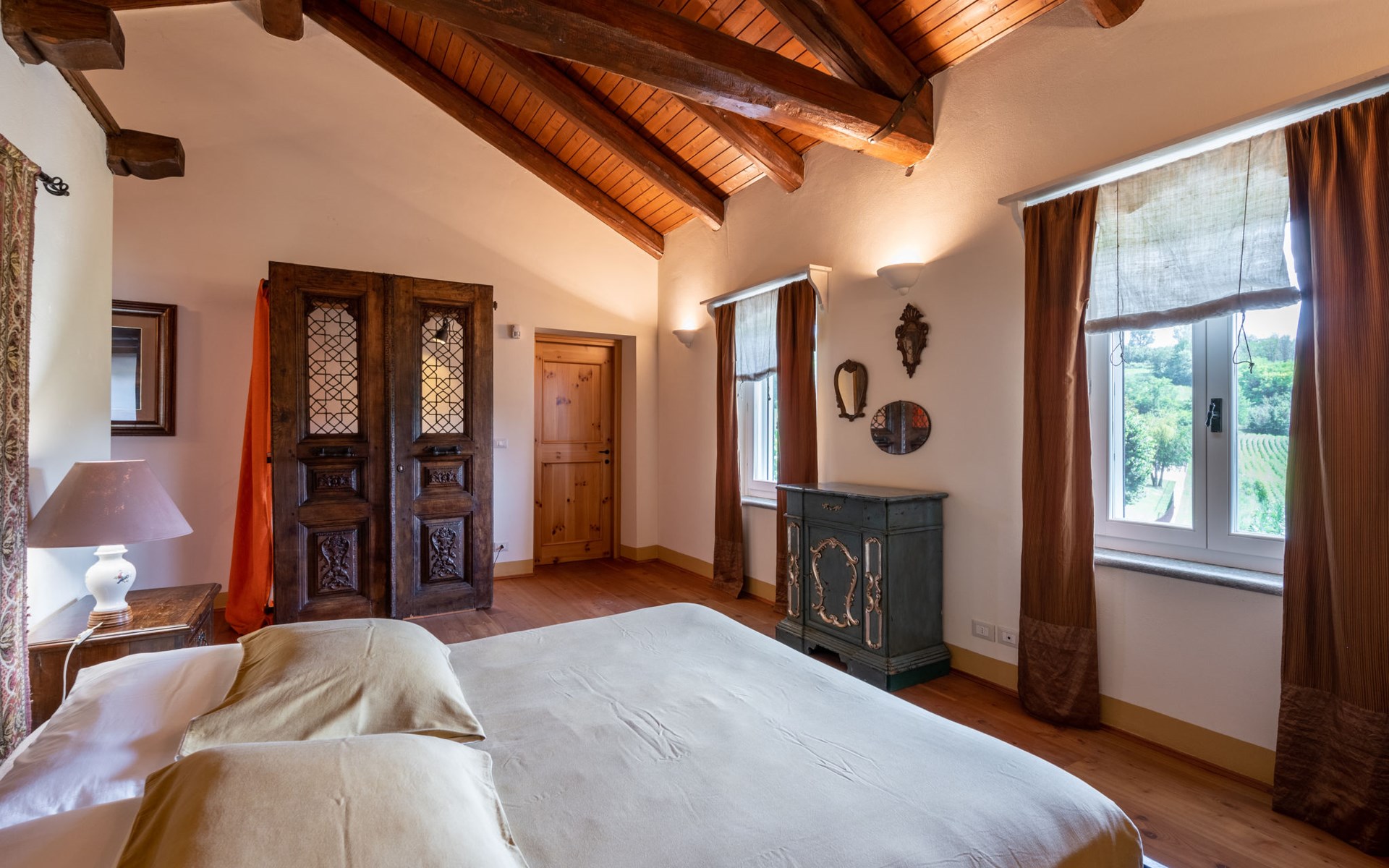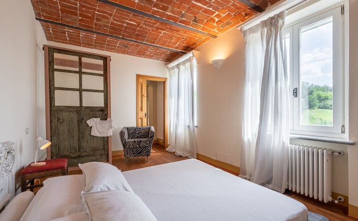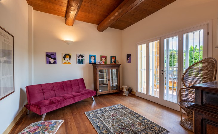 Large cottage "La Bell'aria", detached. On the outskirts, 1 km from the centre of Frinco, in an elevated position. Private: property 4'500 m2 (fenced) with wildlife garden and trees, natural garden, meadow. Outdoor shower, hot tub, table tennis, badminton, patio, pergola (20 m2), terrace, garden furniture, barbecue house, parking (for 3 cars) at the house on the premises. Bus stop 1 km. Nearby attractions: Asti 15 km, Casale Monferrato 37 km, Alba 45 km, La Morra 55 km, Barolo 52 km, Torino 76 km. Please note: car recommended. The tub is open from 30.04. to 15.09. The pool of the Bistro (20 x4 m, 01.06.-15.09.) located at a distance of ca. 100 m, can be used by our guests for a fee of: EUR 15 per person/day.