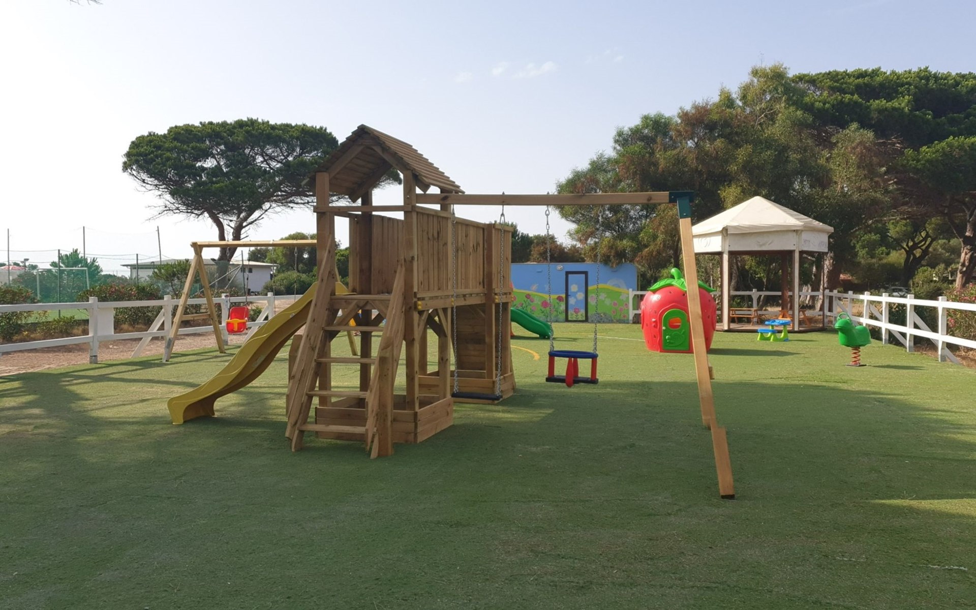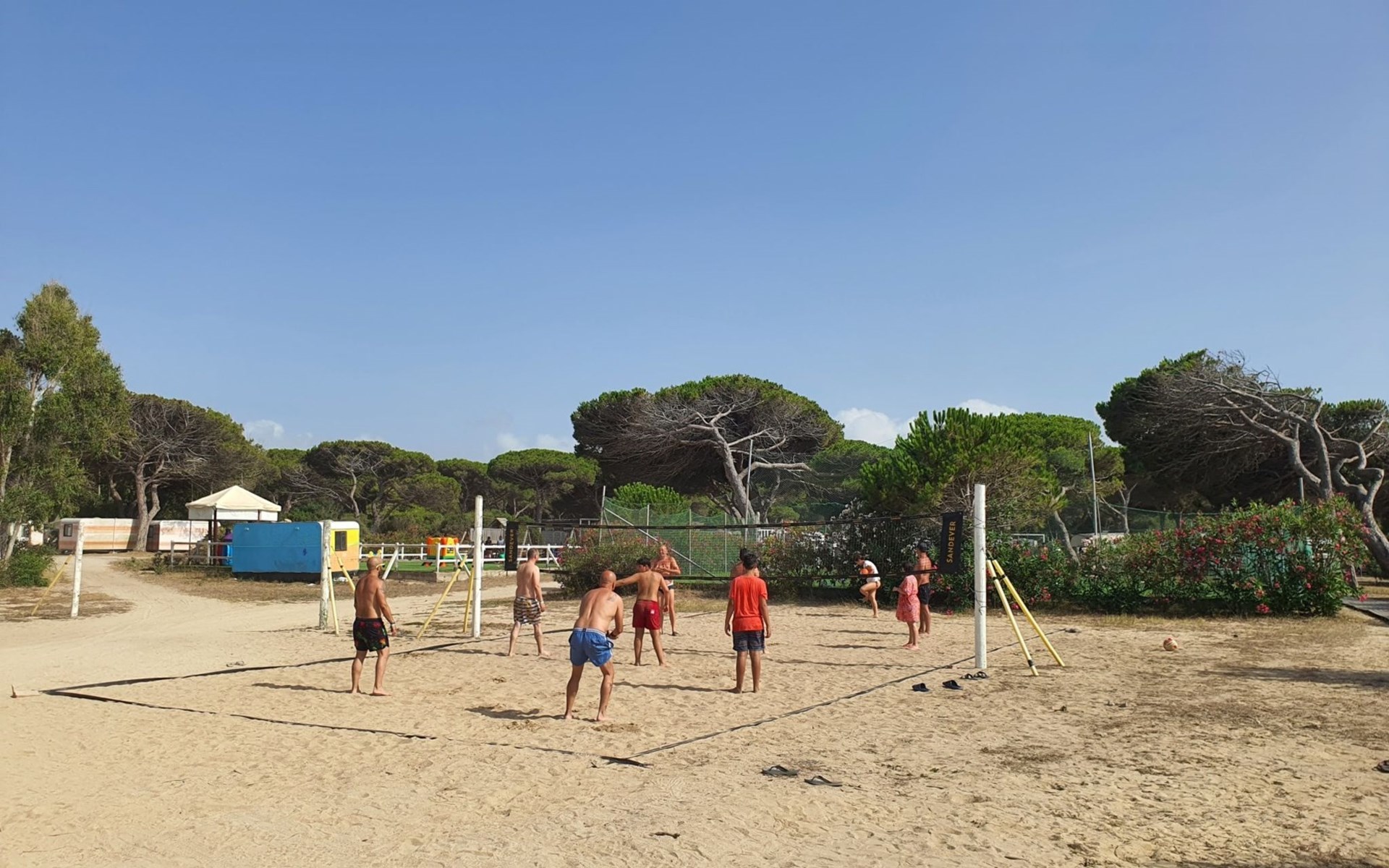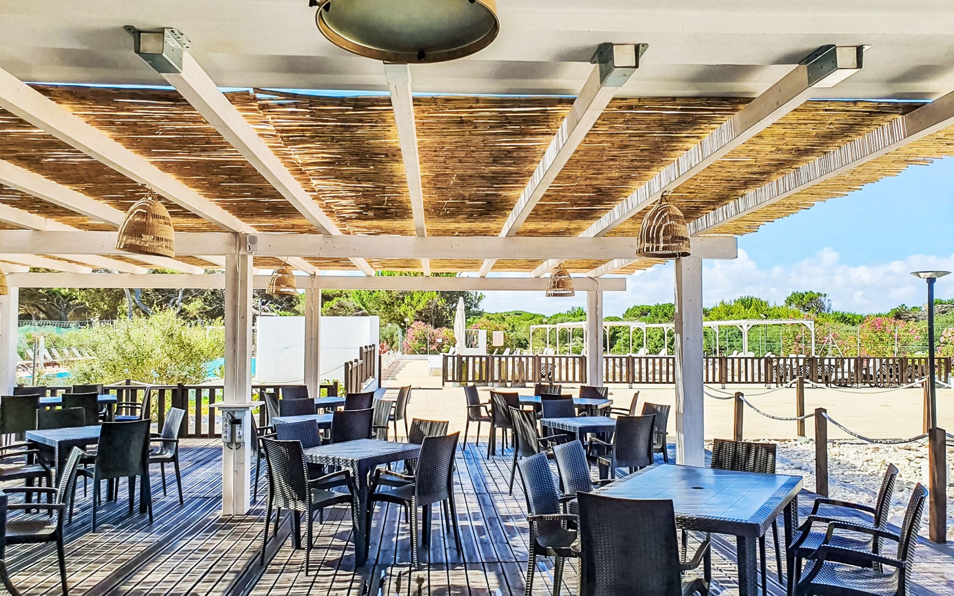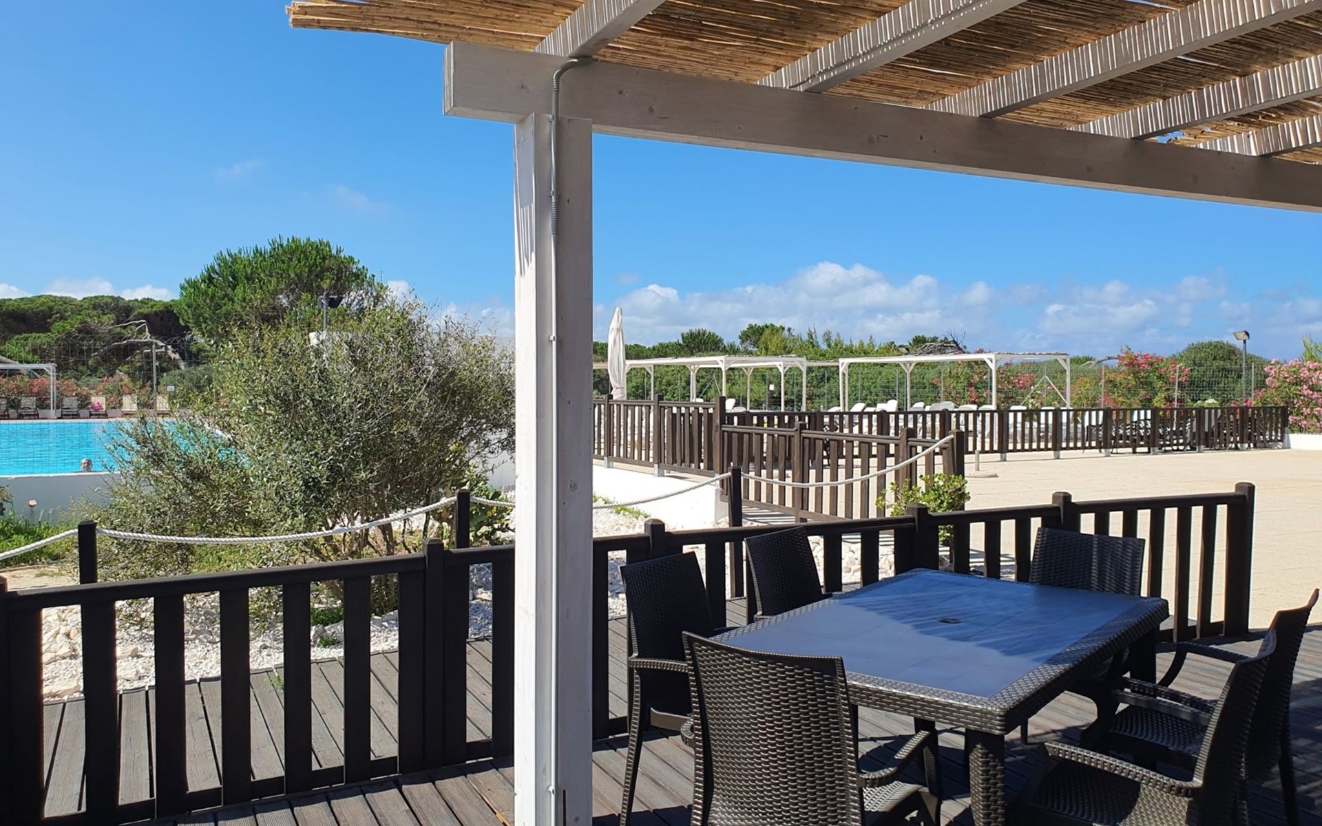 Oasi S'Ena Arrubia: Resort "S'Ena Arrubia". Outside the resort, 7.5 km from the centre of Arborea, 200 m from the sea, 200 m from the beach, direct access to the beach, in the countryside. For shared use: natural state property with plants and trees, natural garden, swimming pool (25 x 10 m, seasonal availability: 15.May. - 30.Sep.). Beach volleyball, barbecue, children's playground. In the complex: reception, restaurant, bar, WiFi, shopping facilities, washing machine, tumble dryer (for shared use, extra). Parking. Bus stop "Arborea Municipio" 7.5 km, sandy beach 200 m. Nearby attractions: Oristano 16 km, Tharros (San Giovanni di Sinis) 35 km, Nuraghe Santa Cristina 39 km, Miniera di Montevecchio 47 km, Su Nuraxi Barumini 60 km, Cagliari 92 km. Please note: car recommended. Entertainment in the season. Suitable for families, baby equipment on request (extra). The owner does not accept any youth groups.