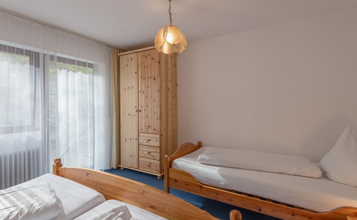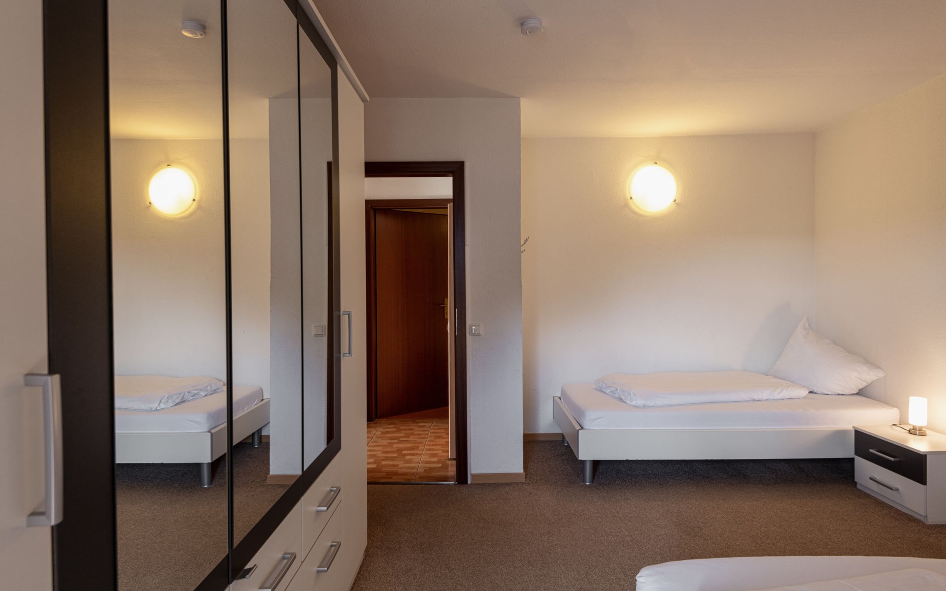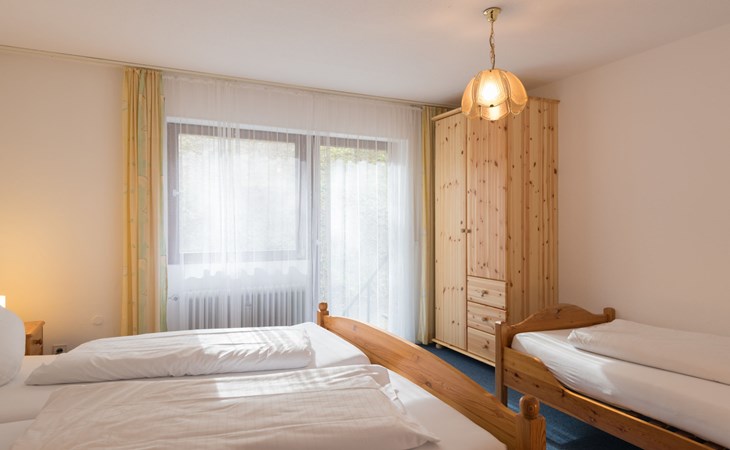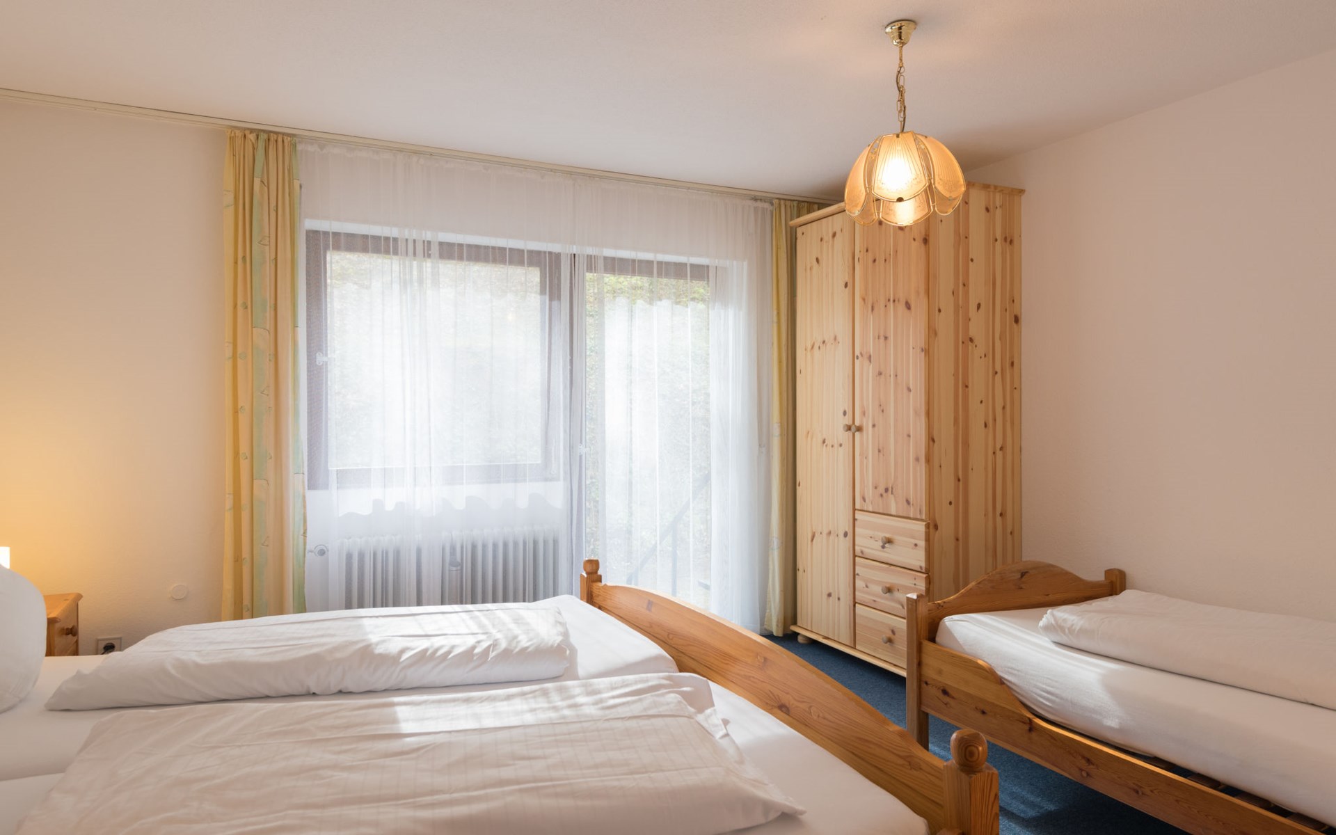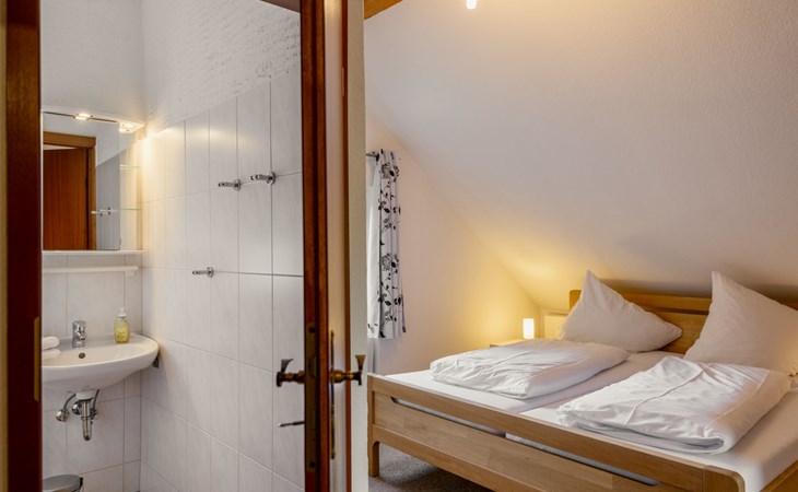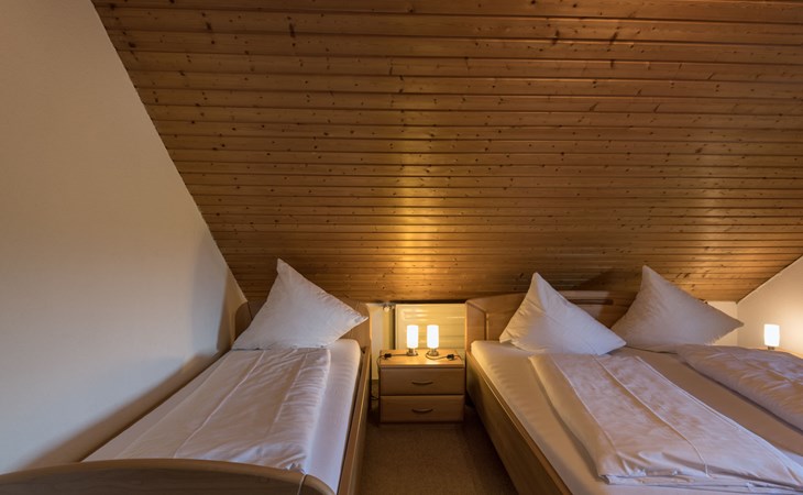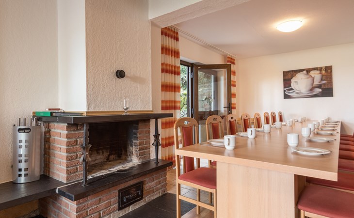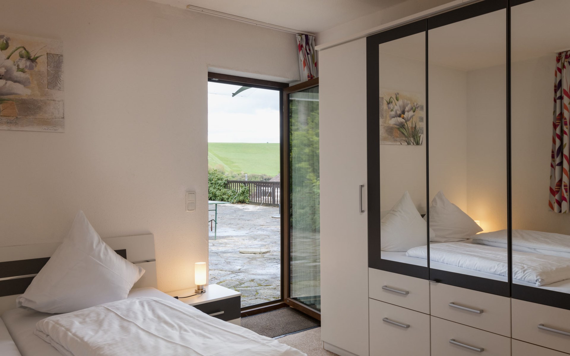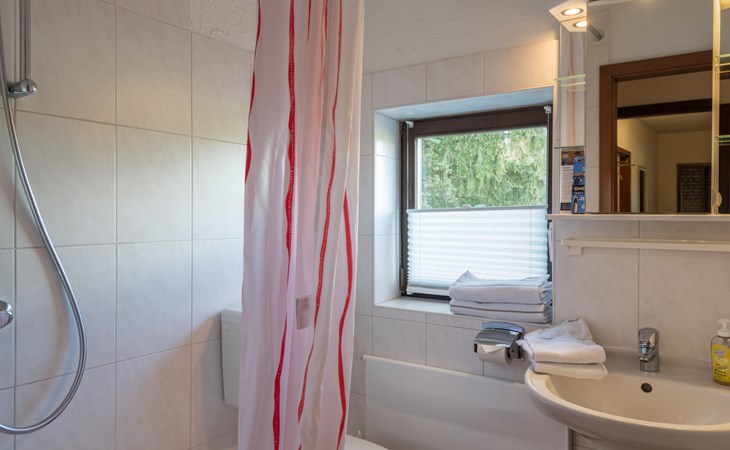 3-family house "Eifelnatur (Haus 1)", surrounded by trees and fields. On the outskirts, 300 m from the centre, in a quiet, elevated position on a slope, 10 m from the edge of the forest, 8 km from the lake, in a cul-de-sac, in the countryside. For shared use: property 1'000 m2, well-kept garden 450 m2 with lawn 300 m2, flowers, pond. Table tennis, children's playground (slide, swing, sandbox). In the house: sauna (extra). Billiard table, table football, storage room for bicycles, central heating system, washing machine (for shared use, extra). Linen change weekly. Towel change weekly. Bread roll service and beverage service possible on request (extra). Stepped path (25 steps) to the house. Grocery 5.3 km, supermarket 5.3 km, shopping centre 5 km, restaurant 150 m, bar 3.3 km, bakery 5.3 km, café 3.3 km, bicycle rental 10 km, bus stop "Daun" 10 km, railway station "Gerolstein" 23 km, outdoor swimming pool 7.6 km, indoor swimming pool 10 km, bathing lake 7.6 km. Golf course (18 hole) 15 km, tennis 3.5 km, minigolf 7.8 km, riding stable 10 km, walking paths from the house 50 m. Nearby attractions: Vulkanmaare, Vulkanmuseum, Kreuzweg, Strohner Märchen, Wildpark Daun, Adler- und Wolfspark Kasselburg. Well-known lakes can easily be reached: Pulvermaar 1.5 km. Please note: car recommended. The owner does not accept any youth groups. Loading and unloading of baggage is possible at the holiday house. Neighbourhood highly sensitive to noise. Quietness and good behaviour expected. Self-service bar with drinks and food in the house (extra). It is also accessible to guests from the other two houses. The leisure room / sauna is located in the neighboring house and is for all guests.