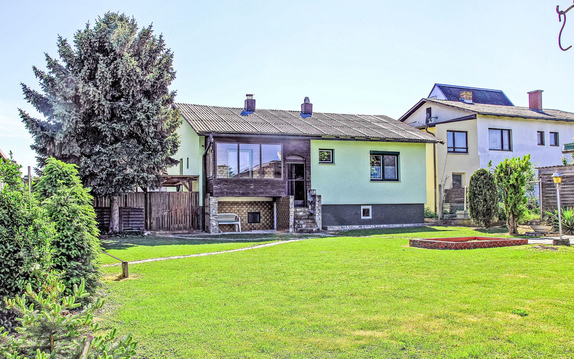 Mannsdorf an der Donau 12 km from Wien: Beautiful, cosy single-family house "Romy". In the centre of Mannsdorf 22 km from the centre of Wien, in a quiet, sunny position, traffic calmed area, 300 m from the edge of the forest, 1 km from the lake. For shared use: garden 800 m2 (fenced) lawn and plants. Private: terrace, garden furniture, barbecue. In the house: central heating system. Motor access to the house. Parking at the house. Supermarket 2.5 km, restaurant 2 km, bus stop 800 m, railway station 15 km, underground station "U2 Seestadt" 16 km, swimming bay 1 km. Golf course (18 hole) 22 km, tennis 3 km, riding stable 6 km, walking paths from the house 10 m, cycle lane, children's playground 100 m. Nearby attractions: Schloss Eckartsau 12 km, Schoss Orth 3 km, Römerstadt Carnuntum 18 km, Schloss Hof 23 km. Hiking paths: Nationalpark Donau Auen 300 m. Please note: suitable for families, suitable for seniors.