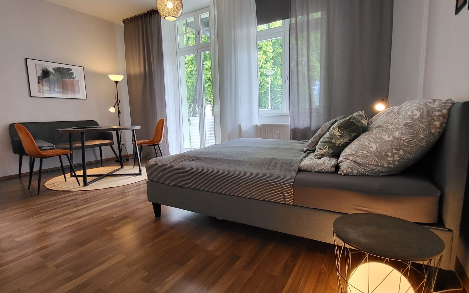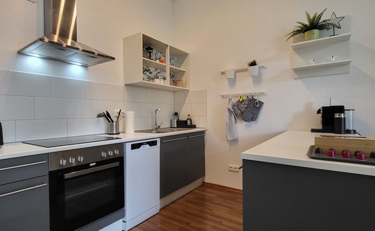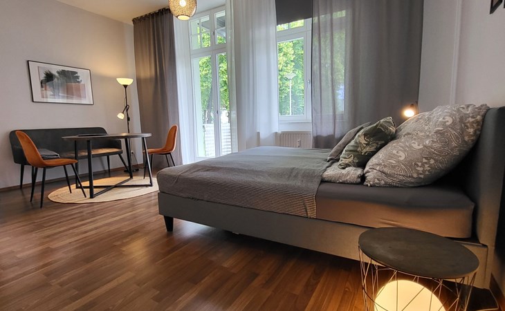 Large, comfortable apartment block, built in 1931, renovated in 2023, surrounded by trees. In the resort 5 km from the centre of Magdeburg, in a quiet position in the residential district, traffic calmed area, 6 km from the lake, in a cul-de-sac, west facing position. For shared use: park 1 ha. Supermarket 400 m, restaurant 200 m, bakery 300 m, bus stop "Buslinie 52" 750 m, railway station "S Bahnhof Sudenburg" 600 m, outdoor swimming pool 2.6 km, indoor swimming pool 1.7 km, bathing lake "Salbker See" 8.6 km. Golf course (18 hole) 10 km, tennis 1.8 km, indoor tennis centre 1.8 km, minigolf 3 km, cycle lane 50 m, children's playground 150 m. Nearby attractions: Dom zu Magdeburg 4.3 km, Hundertwassers Grüne Zitadelle 4.2 km, Jahrtausendmuseum 8 km, Indoor Golfanlage 2.3 km, Avnet Arena Fußballstadion 7.2 km. Well-known lakes can easily be reached: Neustädter See 8.8 km, Salbker See 7.5 km. Please note: Loading and unloading of baggage is possible at the holiday house.