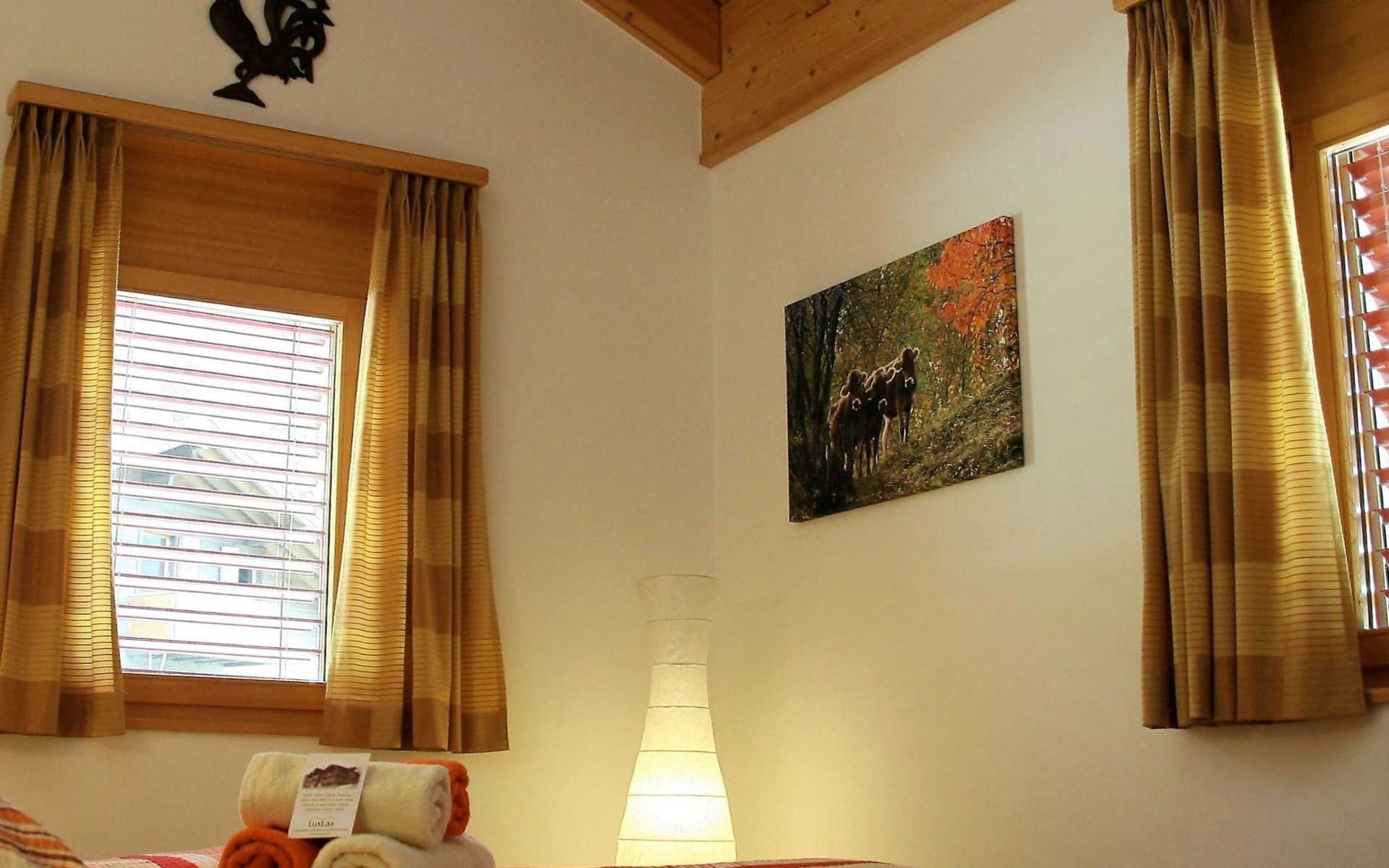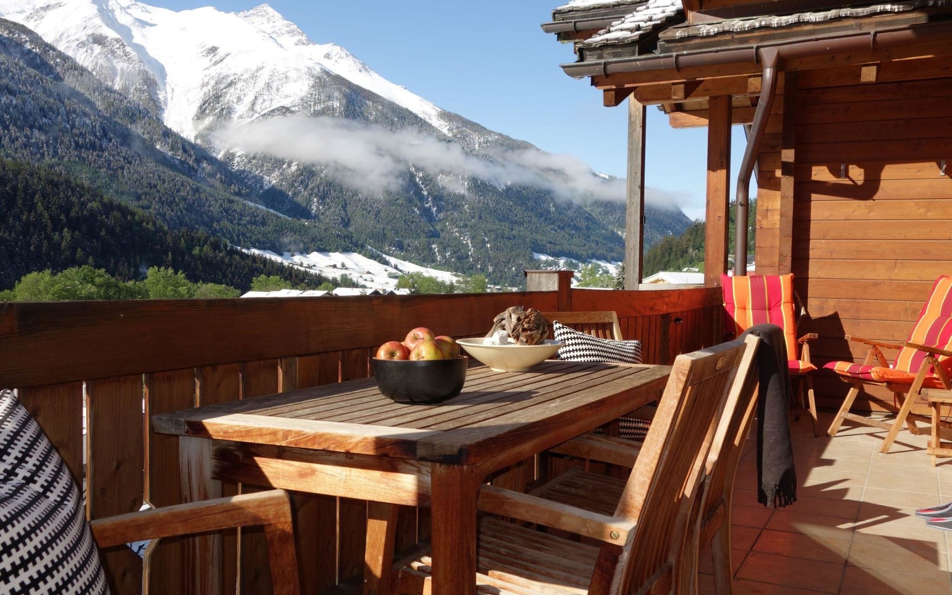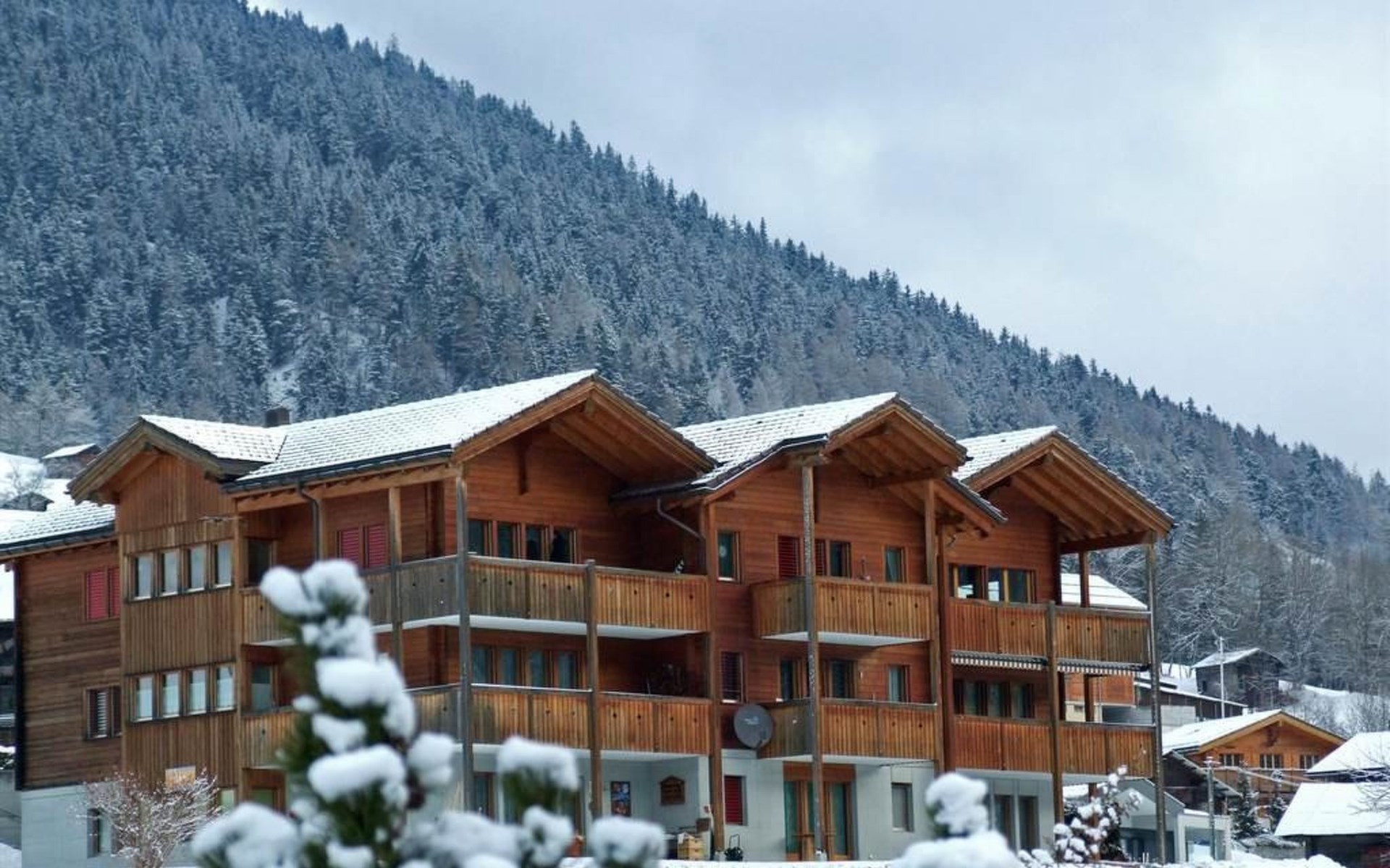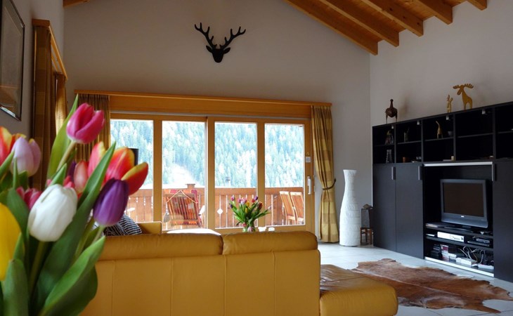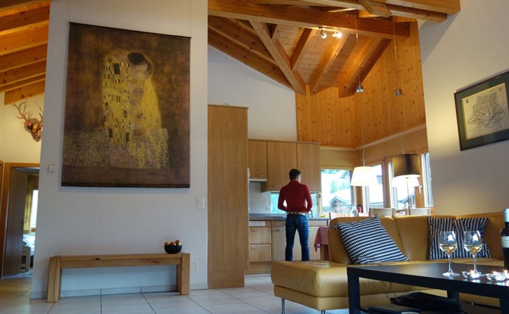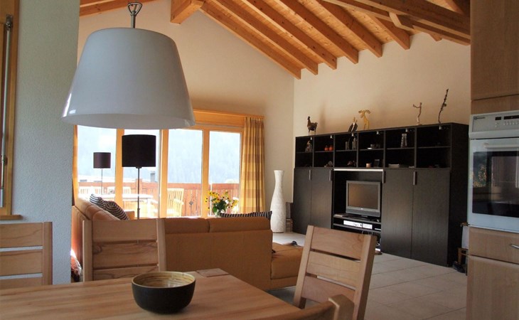 Luxlax is a spacious 6 person holiday house situated at the upper floor of a wooden apartment building at an altitude of 1100 meters. The house is located in the Aletsch Arena near Fiesch, Wallis, Switzerland. The house has a big balcony facing south, with a stunning view of the snowy mountains. On arrival your house will be nice and toasty warm with your beds already made up. With its 5 star rating, Luxlax is very luxurious. The ski gondola is a short 5 minute drive, or alternatively utilize the free ski shuttle bus. There is a 13-kilometer long toboggan/ski route that brings you right to the front door of the house. The road to Luxlax is always snow free for easy access. The red train stops within a short walking distance to the house. Within 150 m you will find a Supermarket with freshly baked bread and local Walliser products. The energy supply is based on 100% sustainable resources