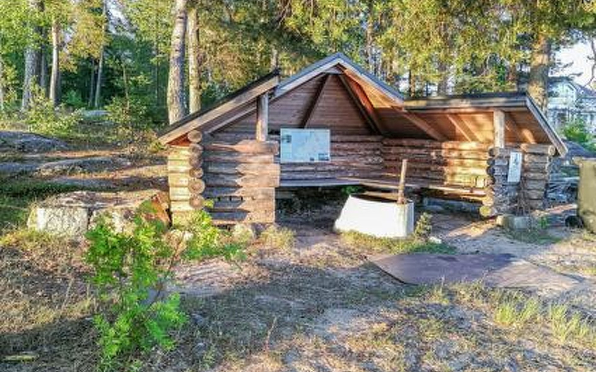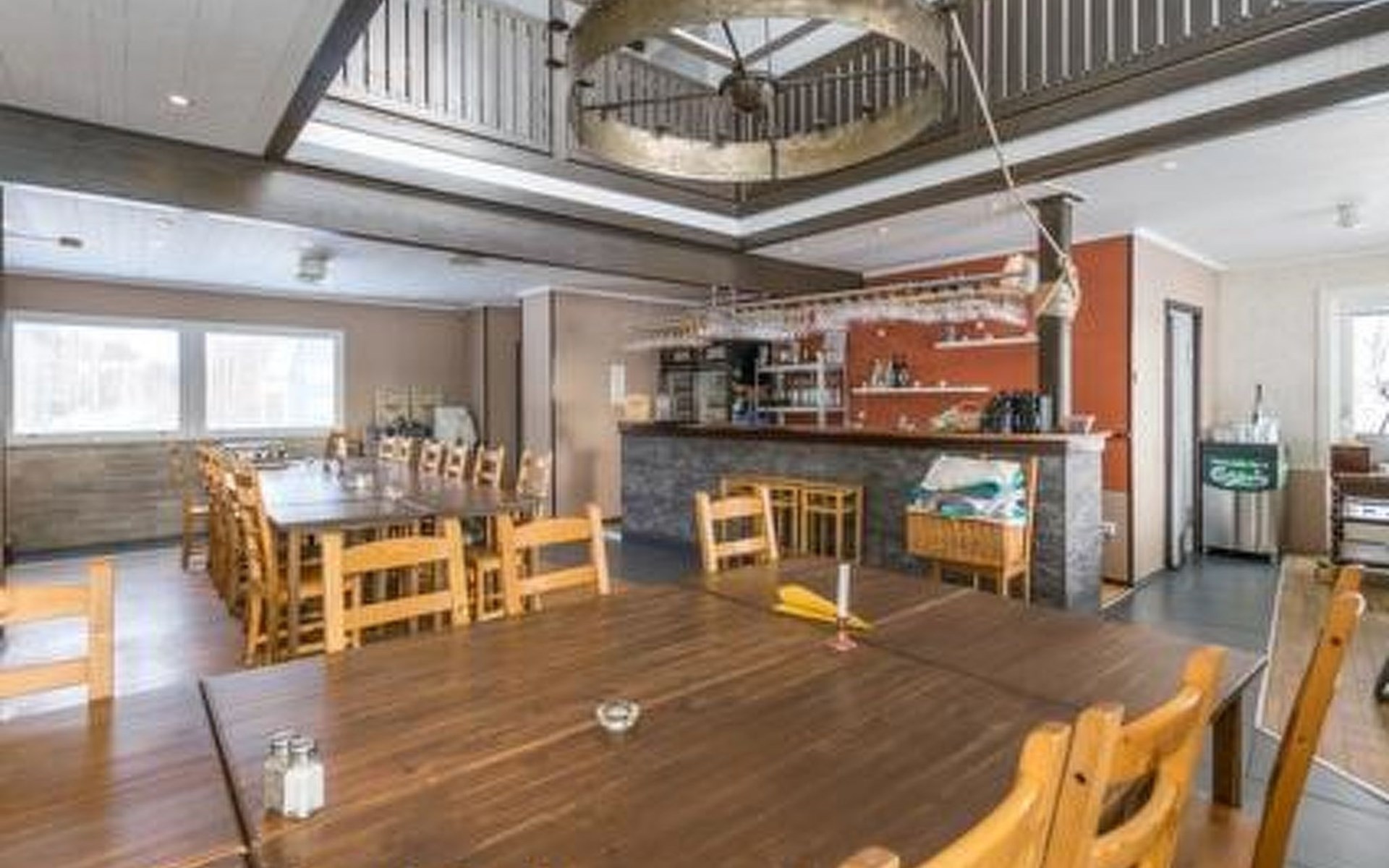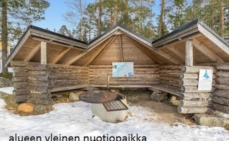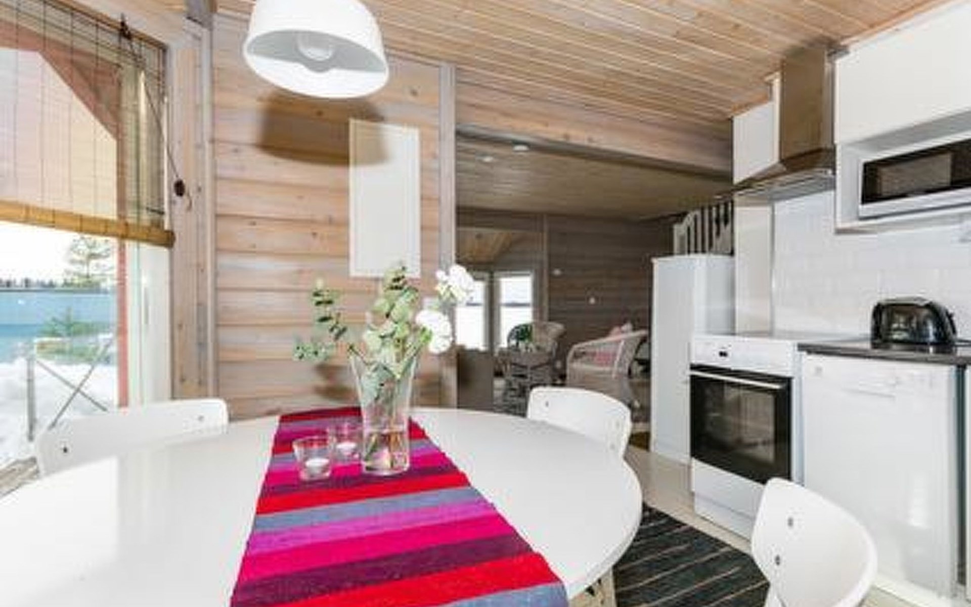 Downstairs kitchen, living room with couch (120 cm), combined toilet/washroom and sauna.