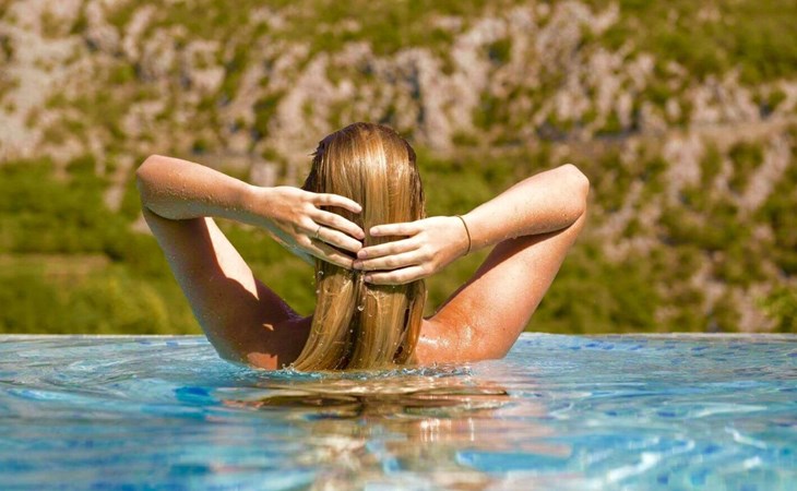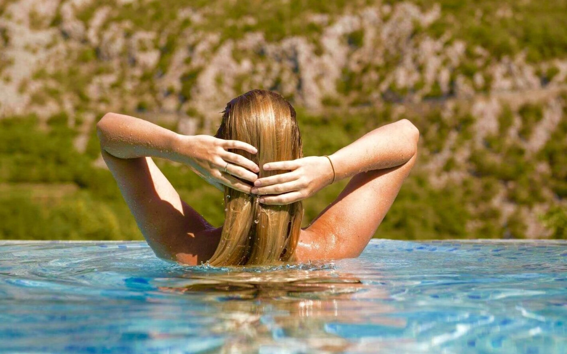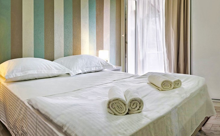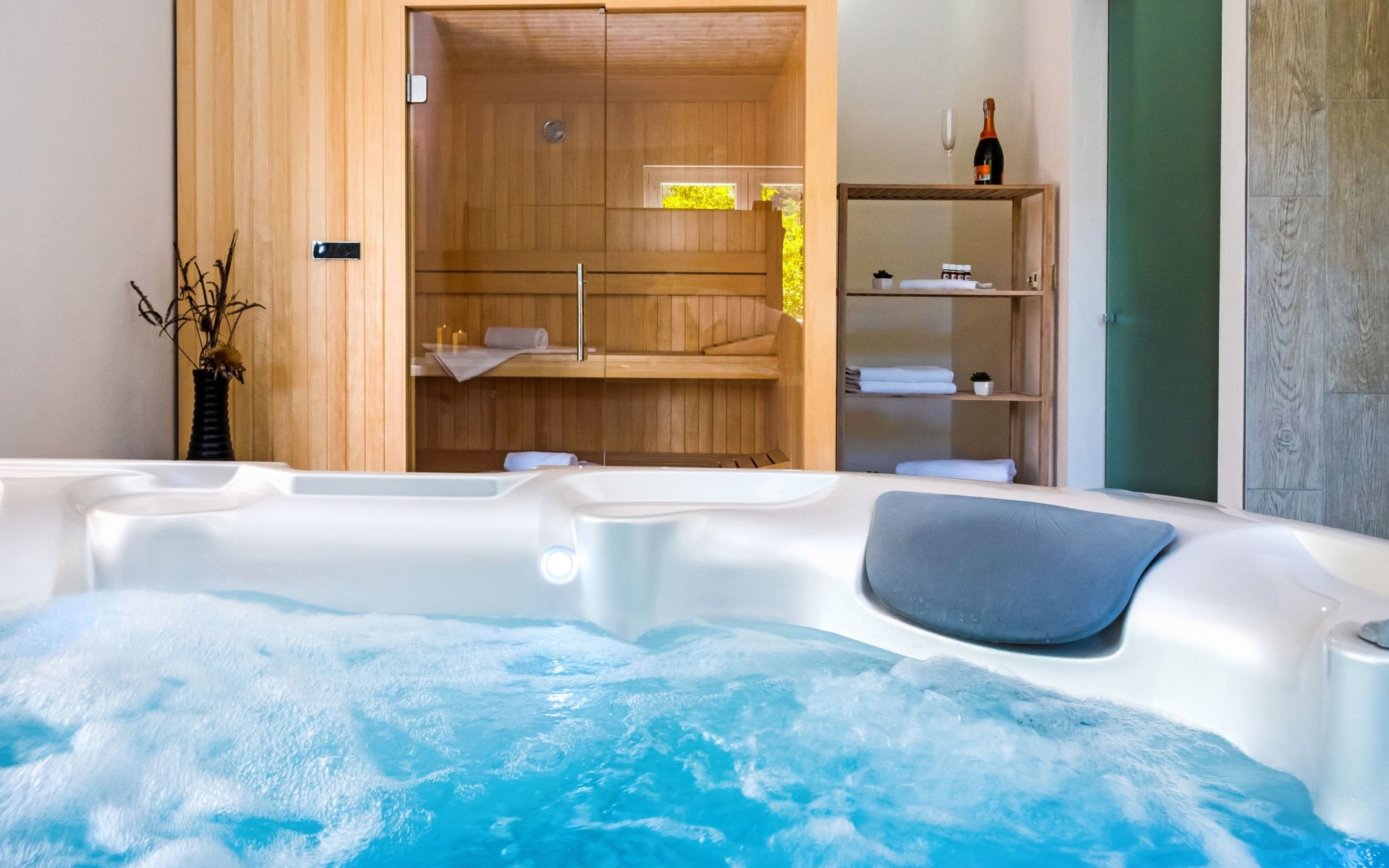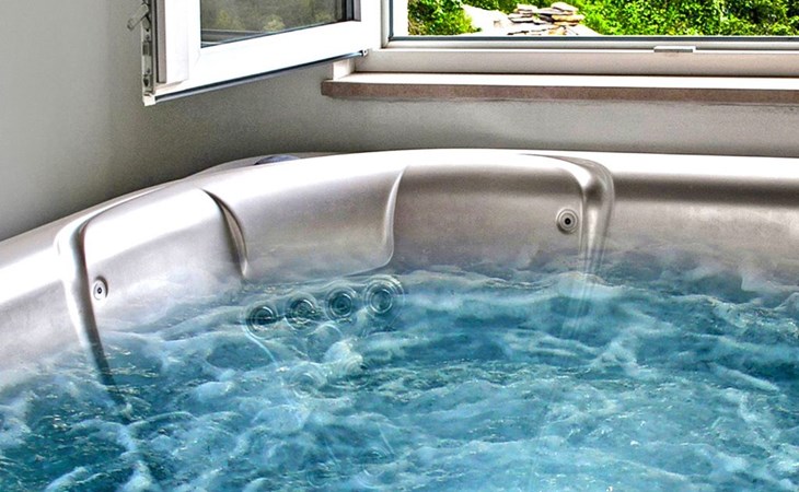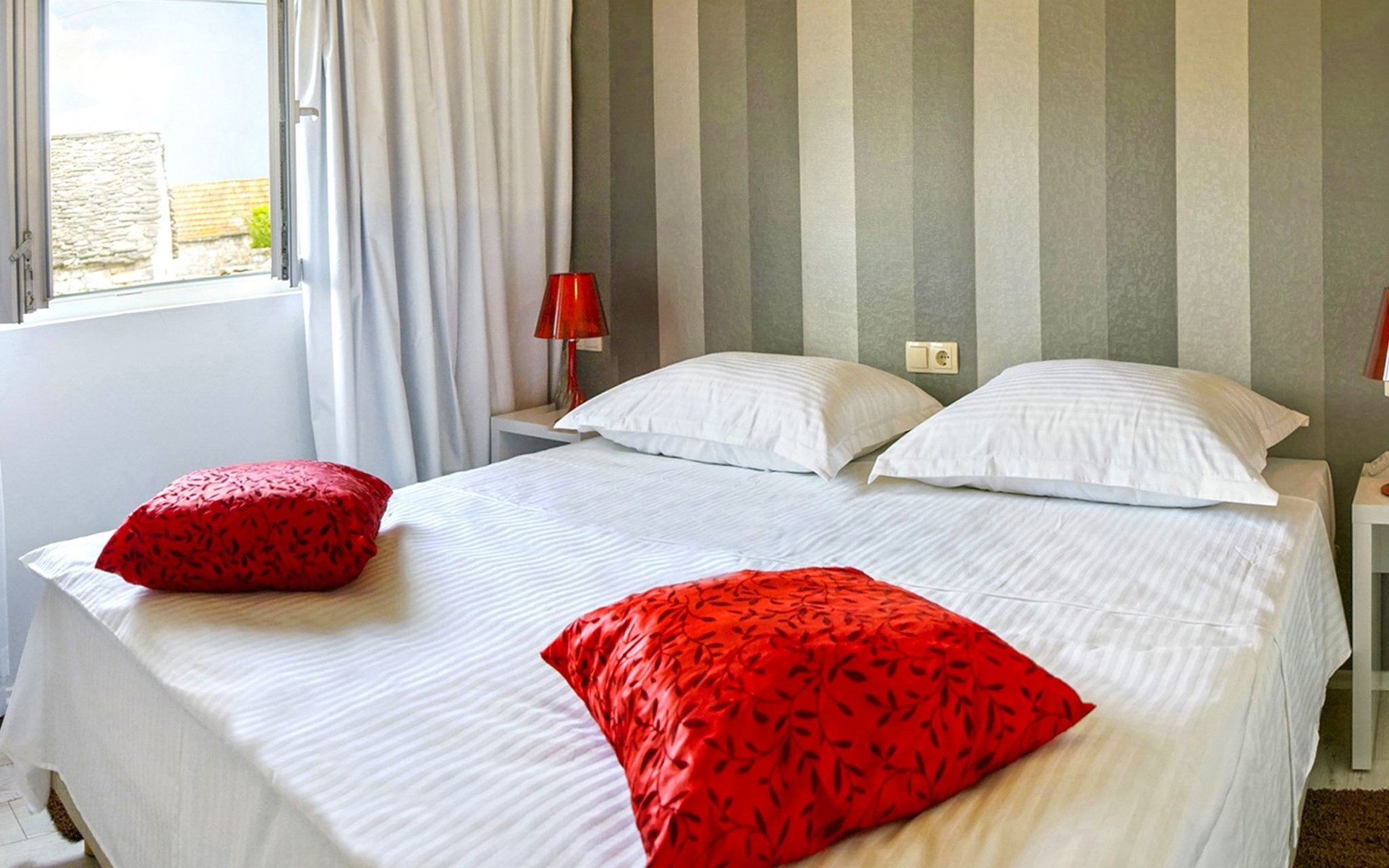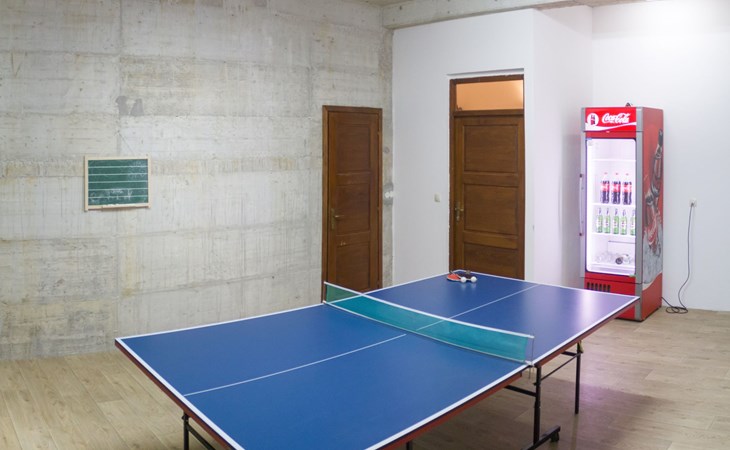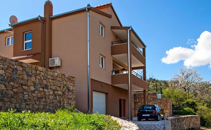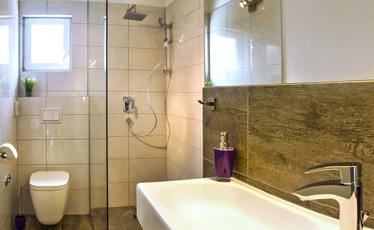The three-storey 250m² holiday house was renovated recently in 2014. It is fully air-conditioned and can accommodate ten people. Wireless Internet access is available throughout the house. The hallways and stairs are wide and airy and are illuminated with modern spotlights. The chic main entrance leads to the modern first floor, with a spacious living room with a comfortable sofa and a big TV (satellite channels, DVD player), a dining table for up to twelve people and an open, modern kitchen. It is fully-equipped and looks out at the pool. New crockery and cooking utensils are provides, as well as a dishwasher and a big fridge. The blue sofa sets a cheerful colour accent in the otherwise white décor in a Scandinavian style. On this floor there are also two bedrooms with double beds, with luxurious bathrooms with washbasins with a cupboard underneath and a bath. One bathroom also has a washing machine. Each room has generous cupboard space and comfortable beds. You can enjoy a wonderful view from the rooms of the main garden and the pool, the garden at a higher level and the Mosor mountains and surrounding landscape with a stream and trees. All the rooms have quality furnishing. The bathrooms also have quality fittings and Italian tiles. The second floor comprises two further bedrooms, with a double bed and two single beds and an en-suite bathroom. The single beds can also be joined together as a double bed. There are two additional beds in a guest bedroom that also has space for a junior bed. The separate wellness area with under-floor heating on the second floor boasts a whirlpool for four people and a separate shower, bath and deckchairs. This luxurious bonus makes the house attractive even outside of the summer season. You can enjoy the view of the Mosor mountains whilst relaxing in the whirlpool. The ground floor has not only a secure garage, but also a cellar and a games room with a table tennis table.