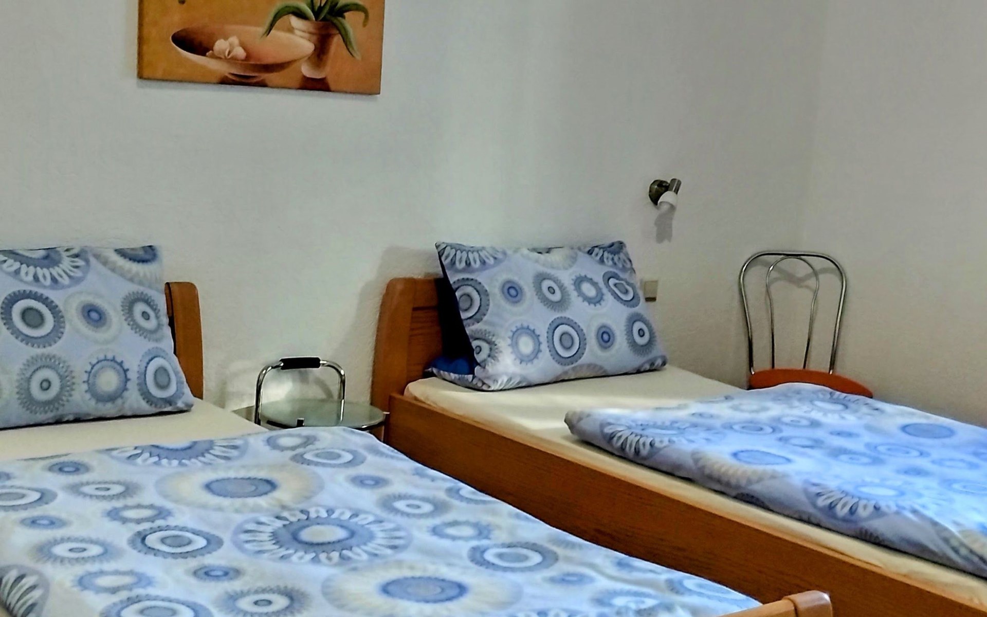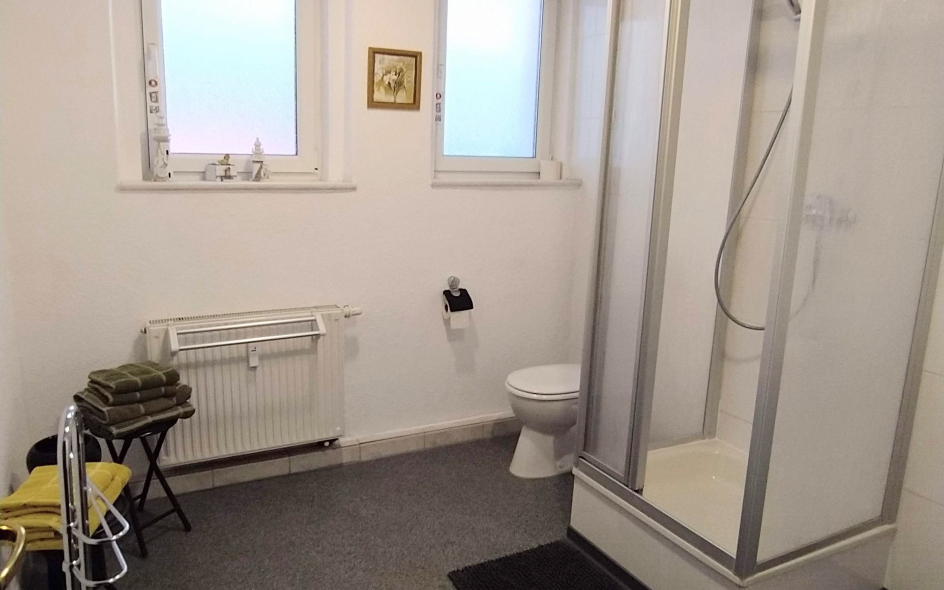 Inside the flat you will find two bedrooms, with the second bedroom available for three or more people. The flat also offers a fully equipped kitchen and a bathroom with shower. Entertainment and information needs are catered for with WLAN and a flat-screen TV, so a pleasant stay is guaranteed. The personal touch of our hosts, who attach great importance to cleanliness and clear arrangements, make guests feel immediately welcome and at home.