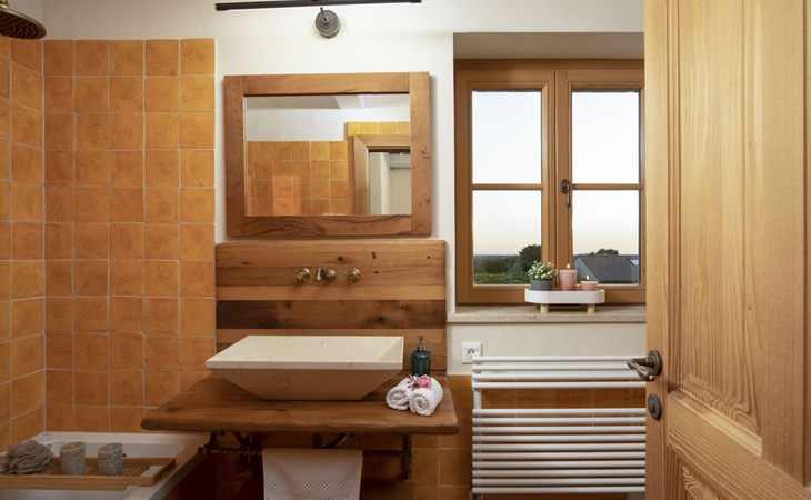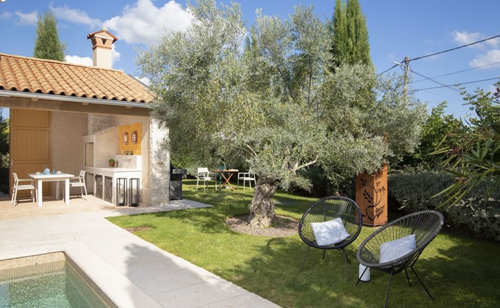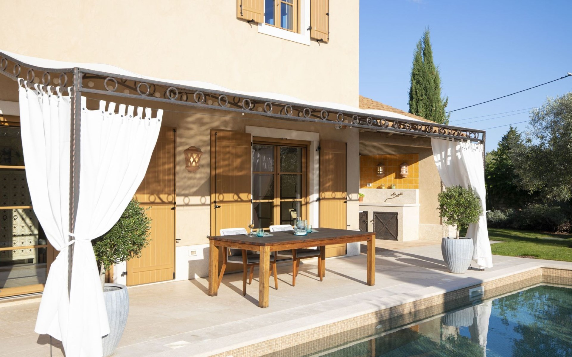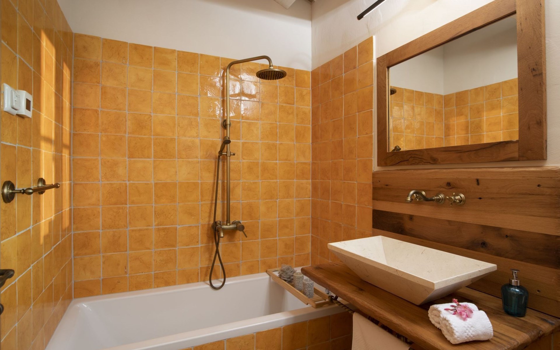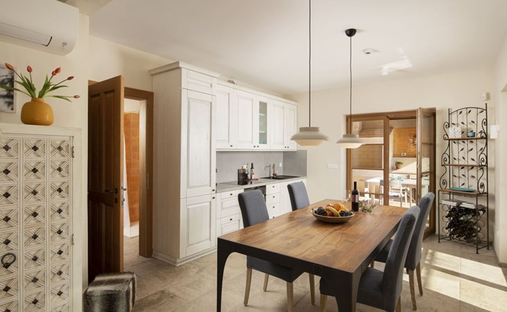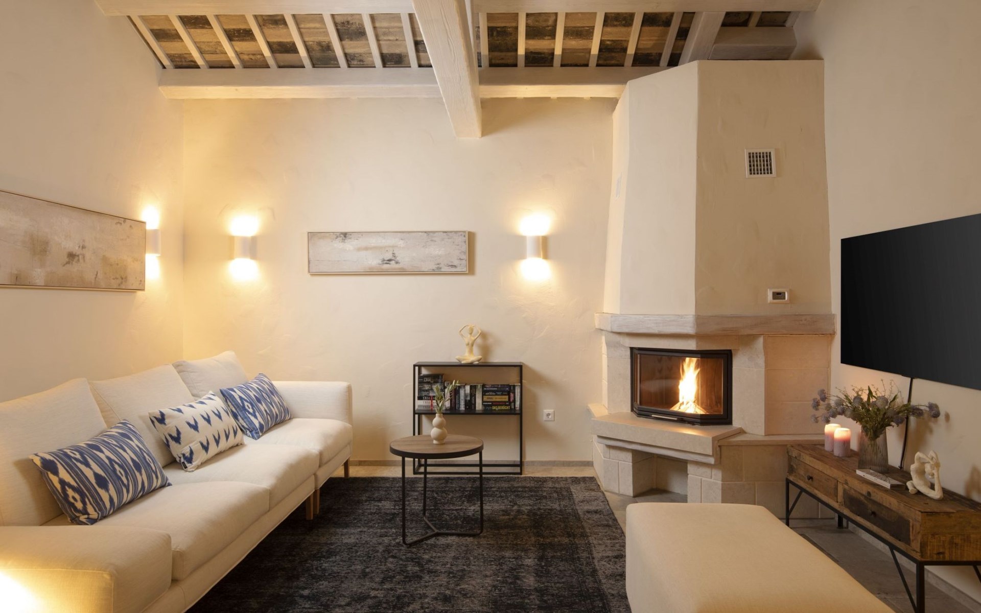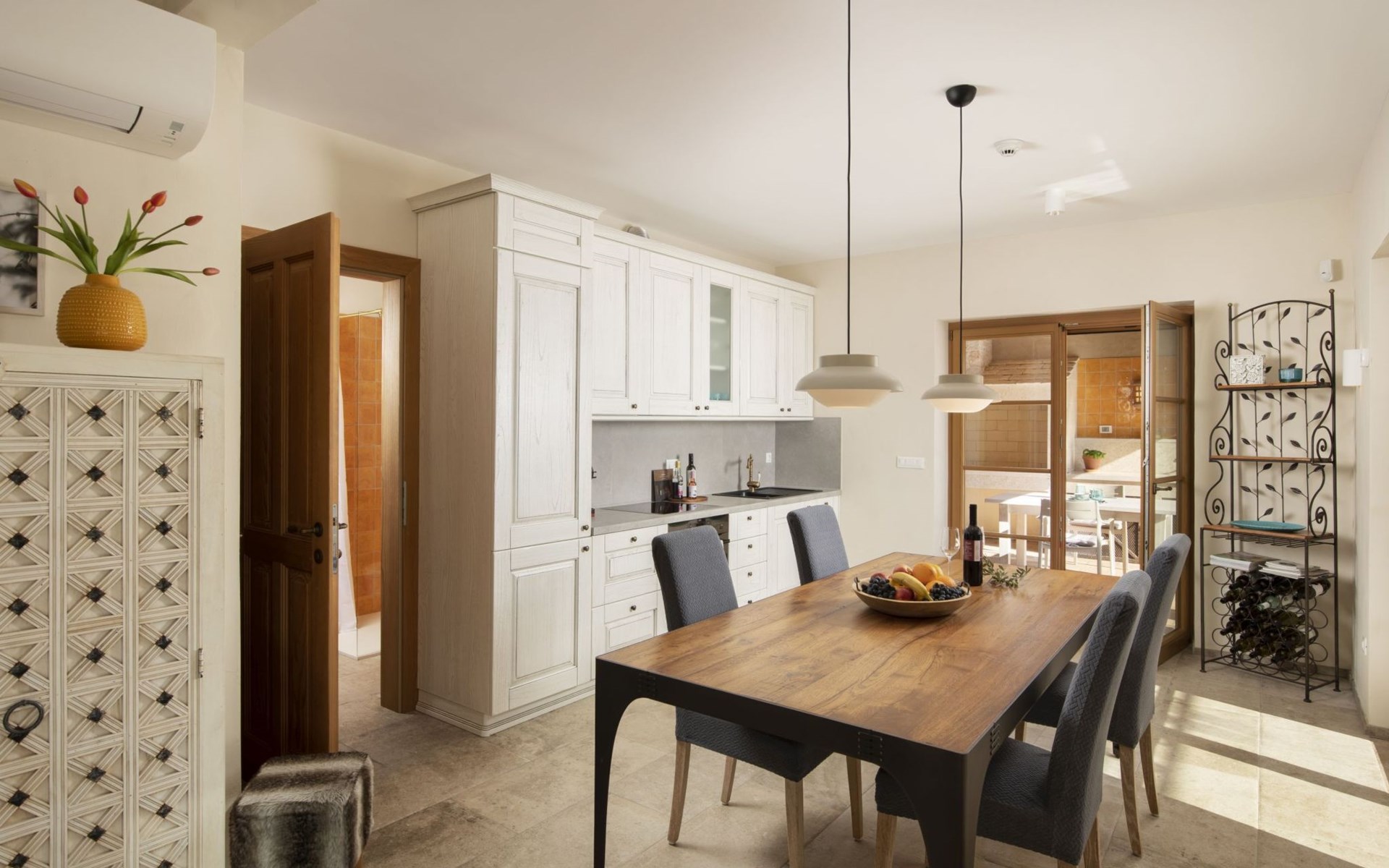 Inside the villa, guests will find all the modern amenities needed for a comfortable stay. A cozy indoor fireplace, three air conditioning units, and satellite TV with Netflix with streaming functions and entertainment. The fully equipped kitchen is perfect for preparing meals. The villa includes two bathrooms: one with a bathtub and shower, the other with a guest toilet.