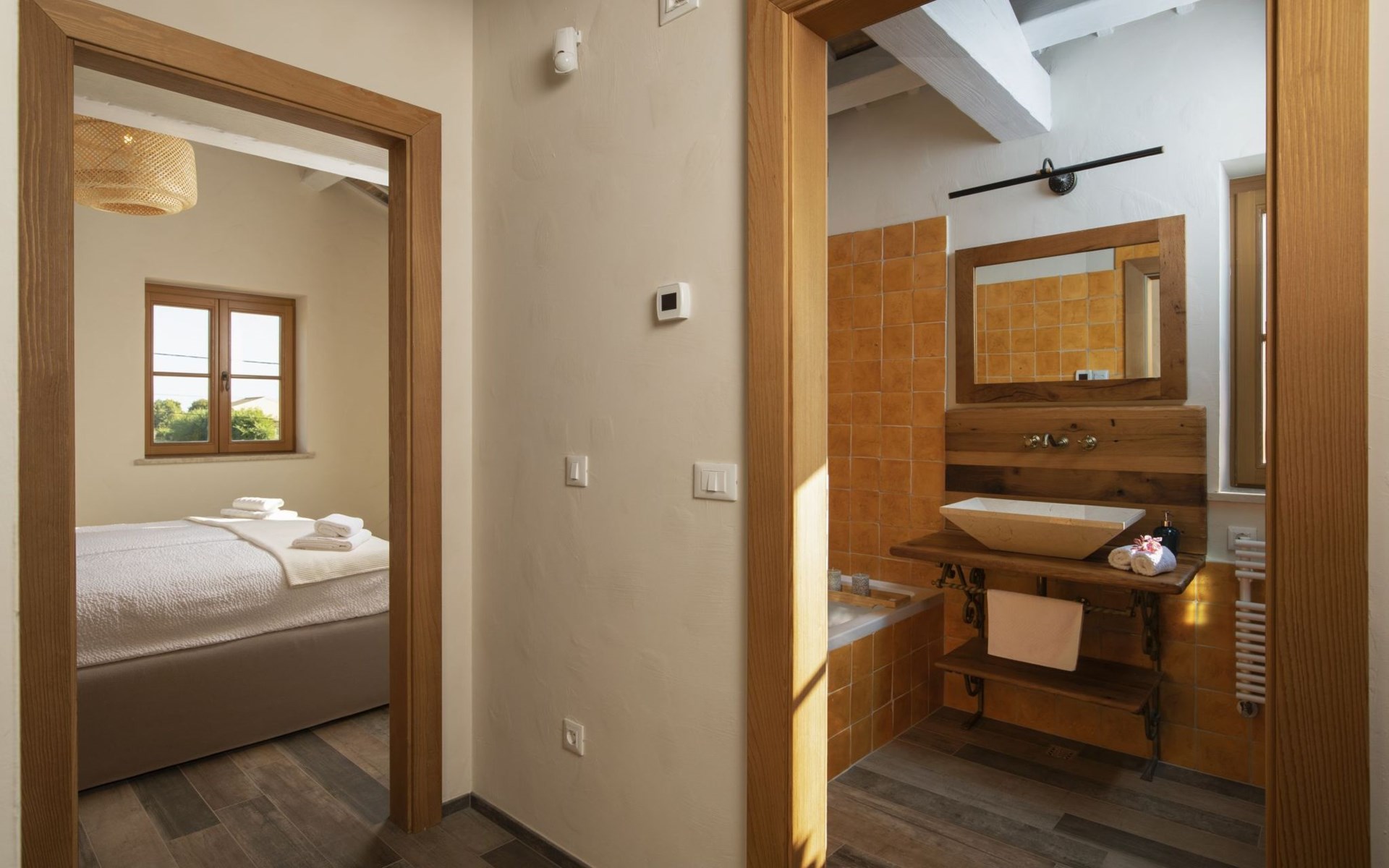The villa offers the perfect balance between privacy and proximity to cultural and historical attractions. Svetvinčenat, a picturesque medieval town known for its charm and cultural events, is just 3.5 km away. The lovely town of Bale, with its cobbled streets and relaxed atmosphere, is 9.4 km away. In just 25 minutes, you can reach Rovinj (21.7 km), one of Istria’s most beautiful coastal towns, ideal for day trips full of art, history, and seaside dining.