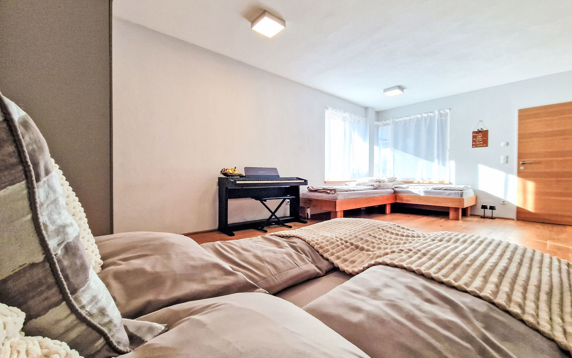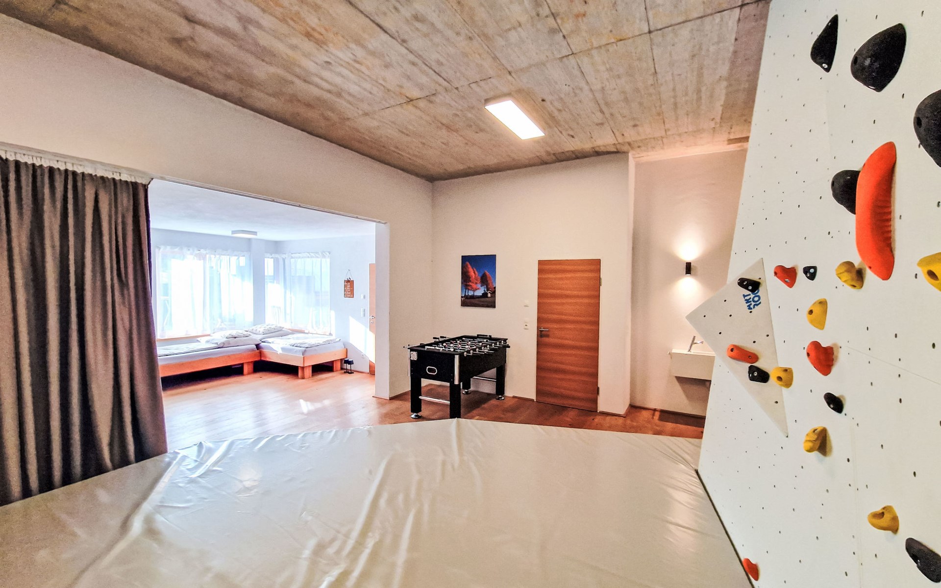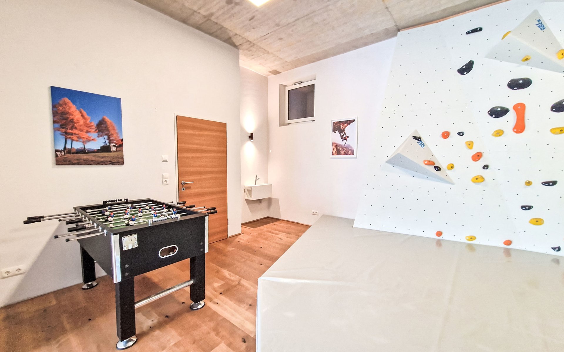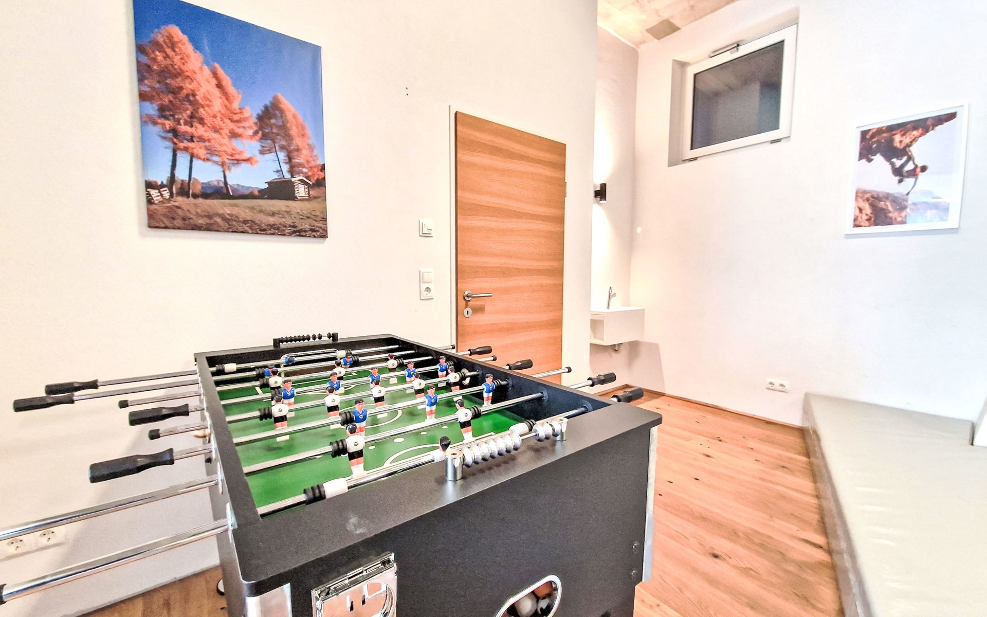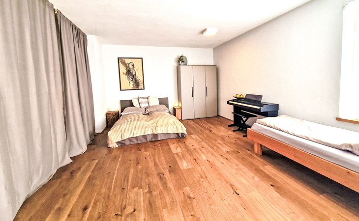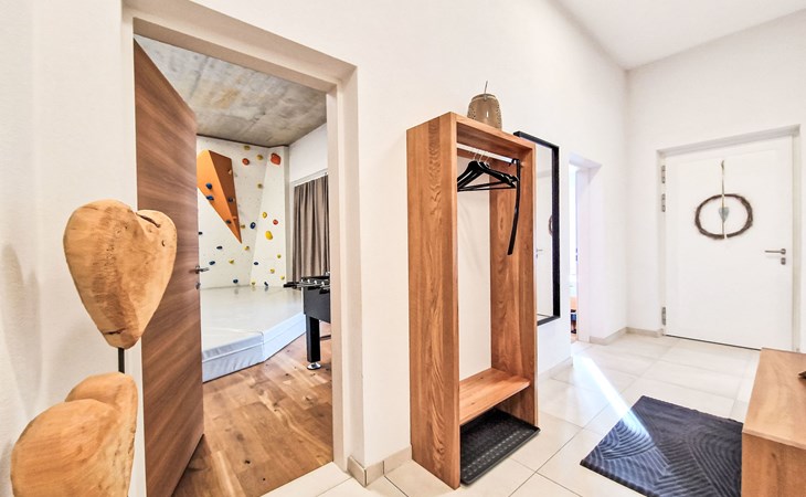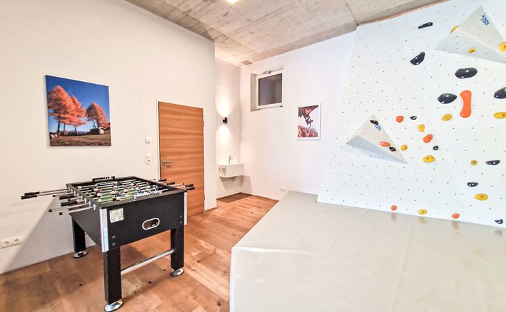 Terfens 23 km from Innsbruck: The apartment features a climbing wall in the bedroom (which can be separated). An electric piano is provided. No pets allowed. Modern, cosy apartment house "Alex", 3 storeys, detached. On the outskirts, in a quiet position, along the wooded area, 2 km from the lake. In the house: table football. Roofed, parking (for 2 cars) at the house. Grocery, restaurant, bakery, bus stop 200 m, bathing lake "Weisslahn" 2 km. Ski lift 13 km. Nearby attractions: Kristallwelten Swarovski 7 km, Wahlfahrtsort Maria Larch 850 m, Innsbruck 23 km. Well-known ski regions can easily be reached: Glungezer 13 km, Kellerjoch 13 km.