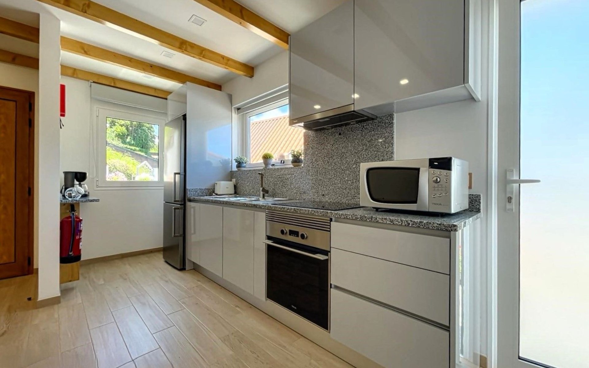 Inside, the house offers a sanctuary of comfort and convenience, crafted with meticulous attention to every detail. It is equipped with a suite of modern amenities to ensure a comfortable stay, including a washing machine for your exclusive use, a filter coffee machine for your morning brew, and an electric kettle for those cozy evenings. Despite the absence of a traditional thatched roof, the chosen materials ensure excellent thermal and acoustic insulation, promising a tranquil and cozy interior environment.