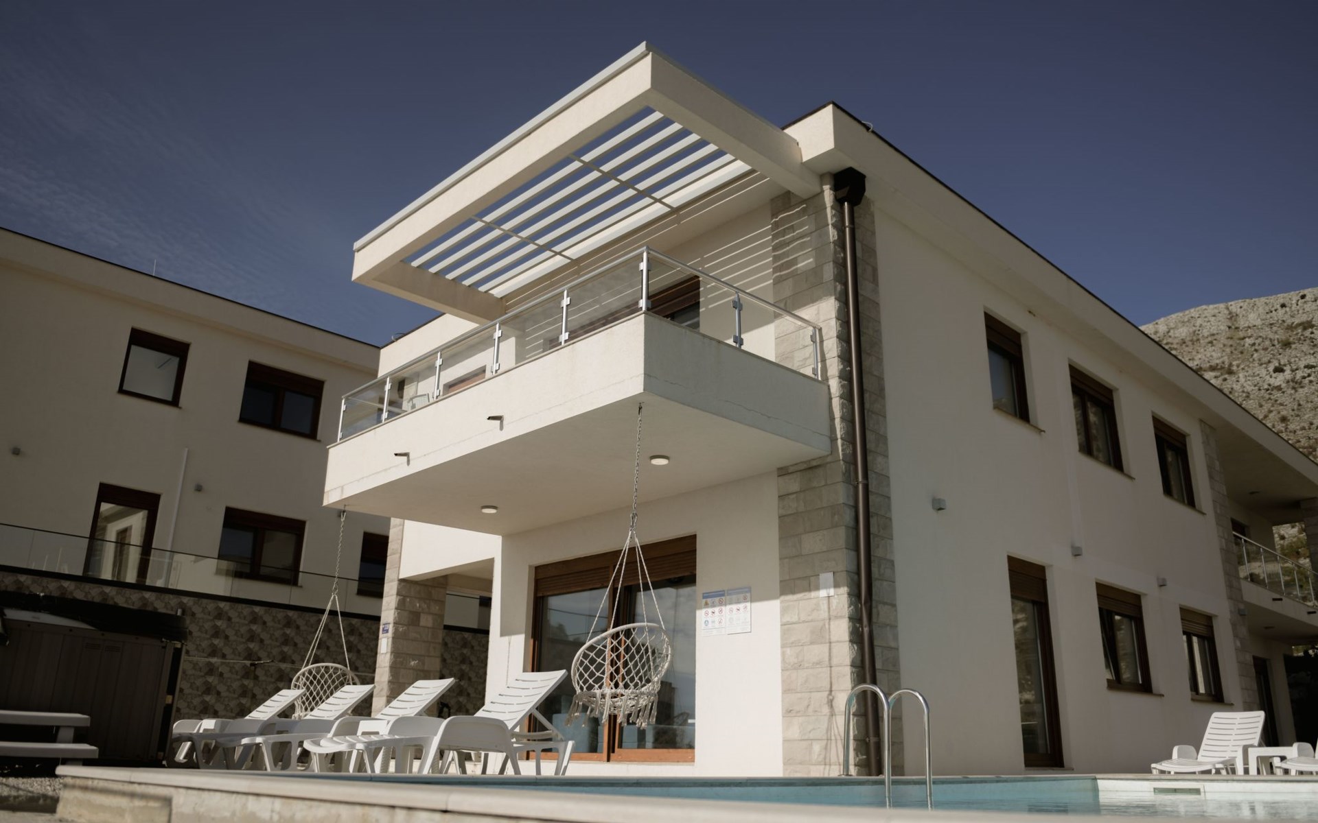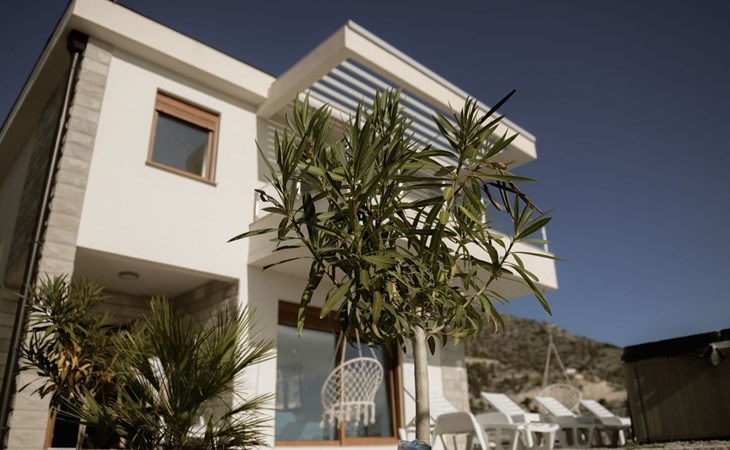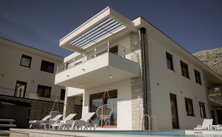 Step outside, and you'll find yourself in a lush private oasis. The villa boasts a heated pool and jacuzzi, perfect for chilly autumn evenings. The garden surrounding the villa is not only picturesque but also an aromatic treasure trove, home to over 30 identified species of medicinal herbs, including the rare Pelim. This unique natural environment offers a perfect opportunity for guests to connect with nature and discover the local flora right on their doorstep.