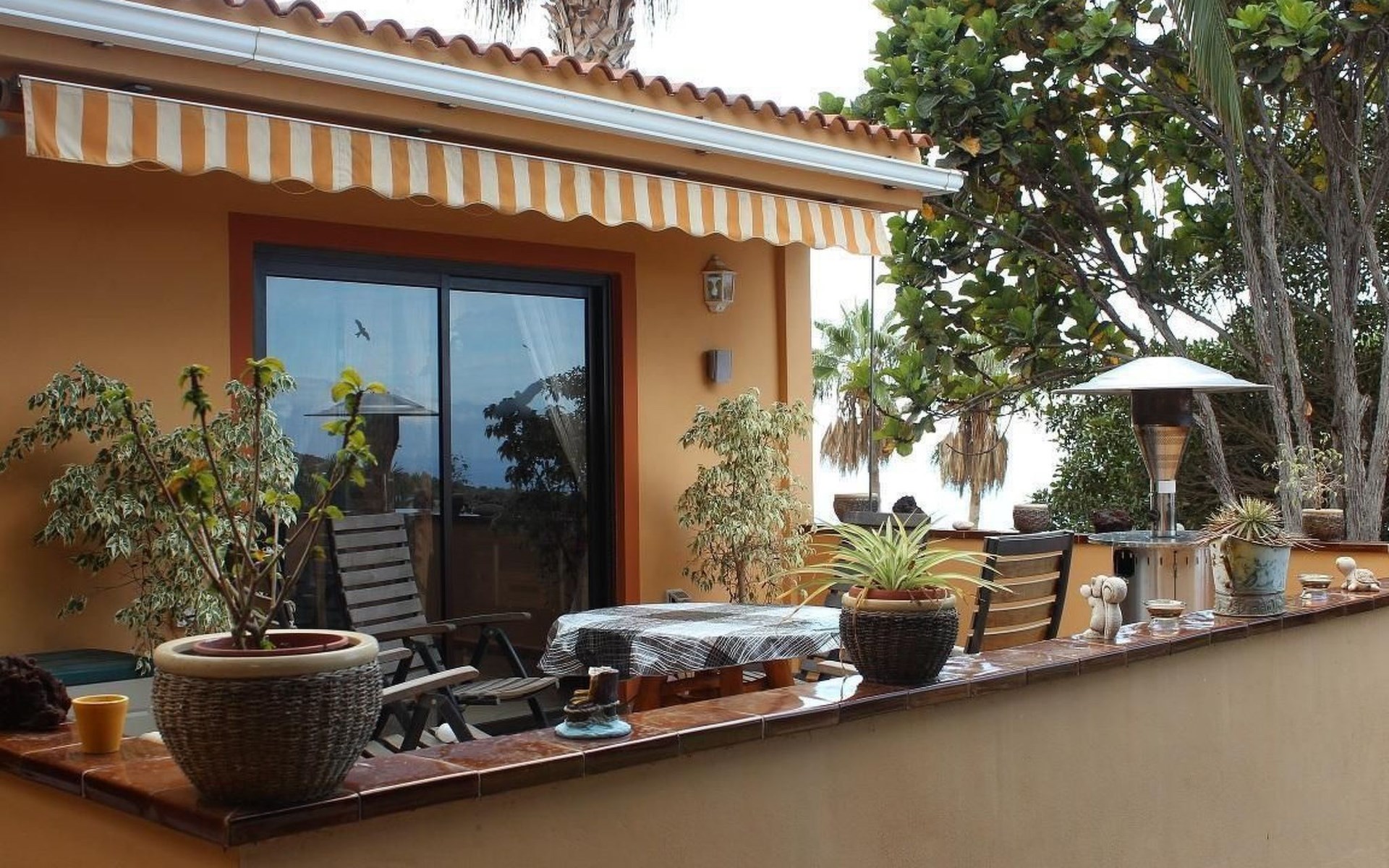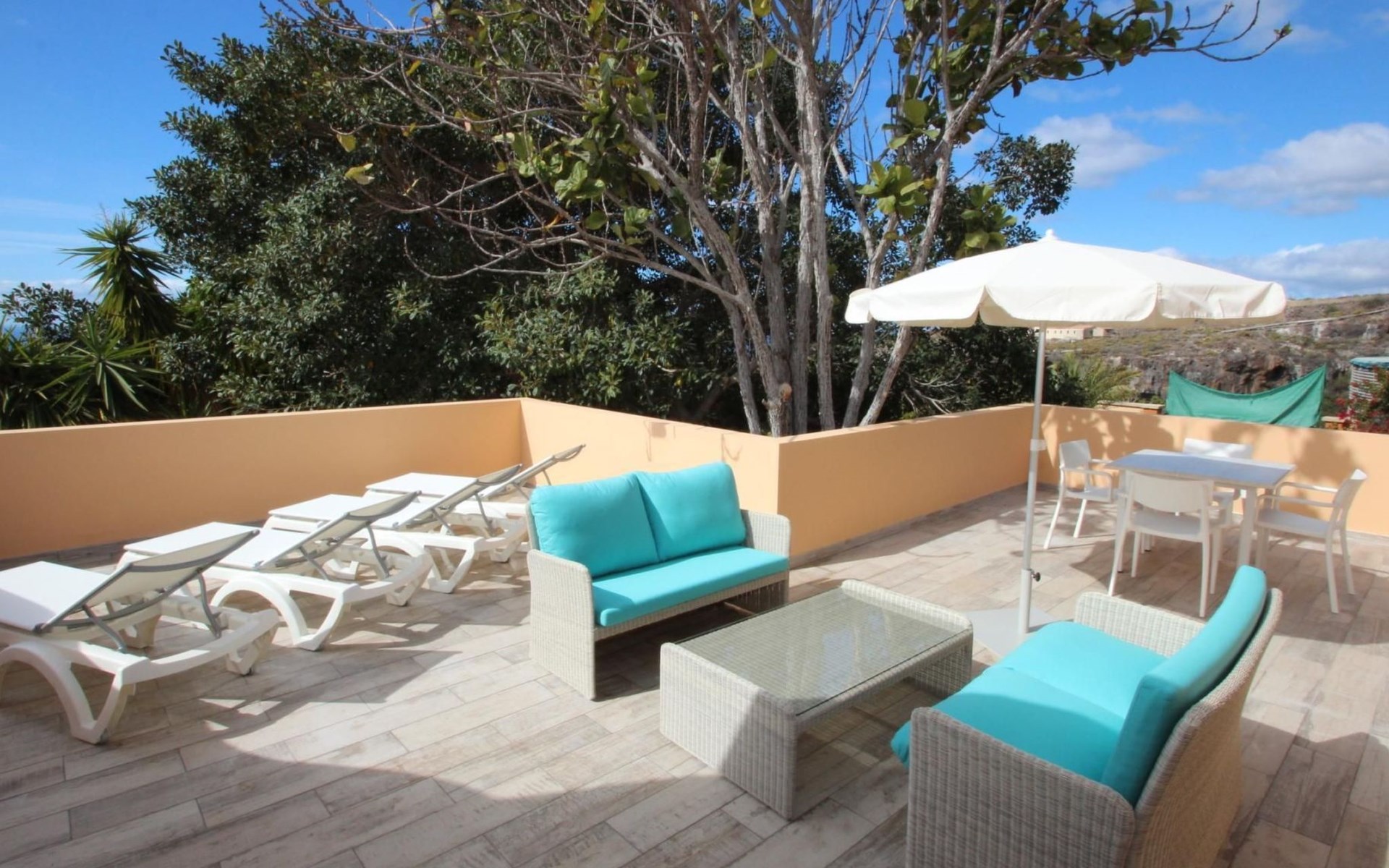 There are two large terraces: One terrace facing north-west and a very large terrace facing west.