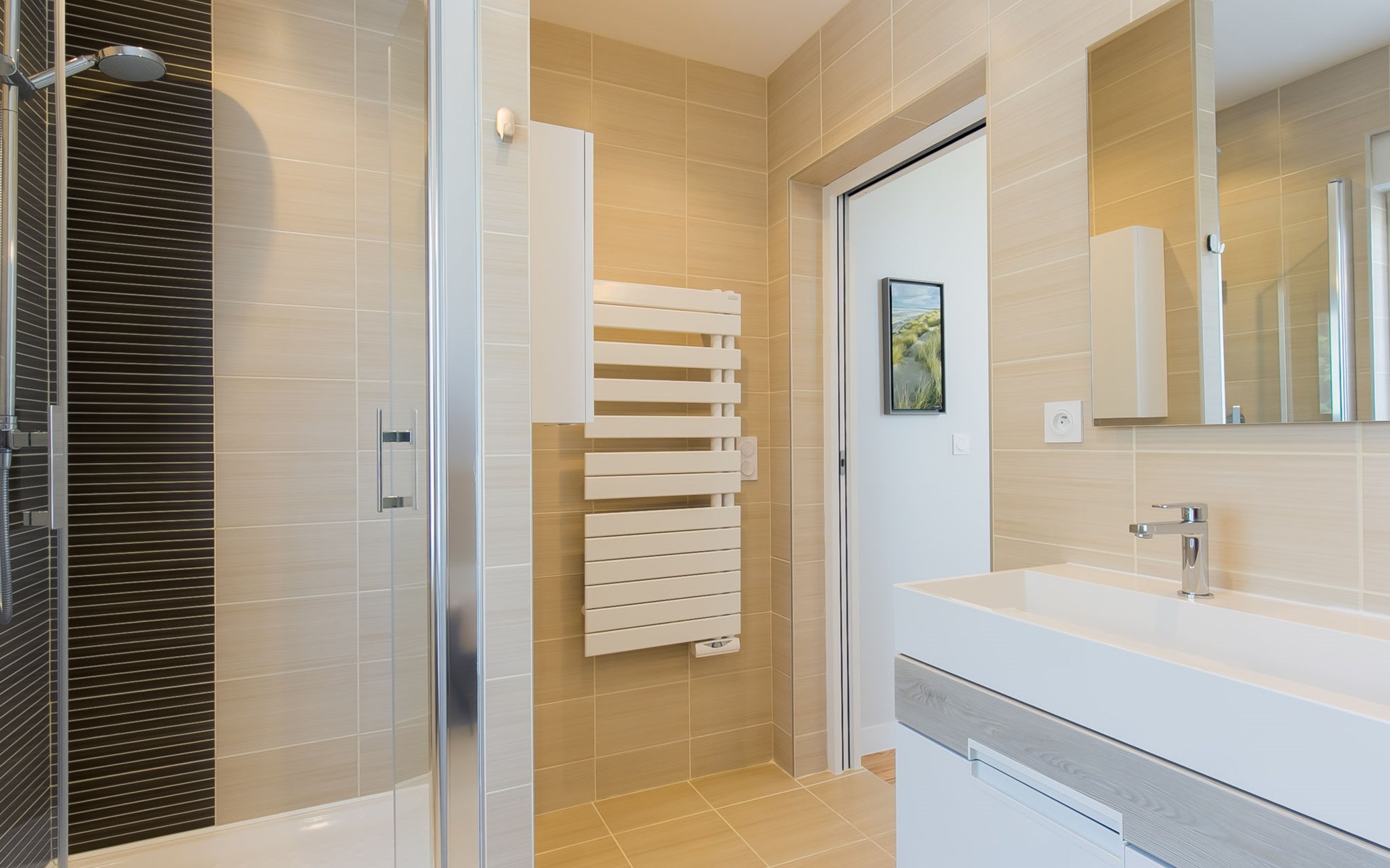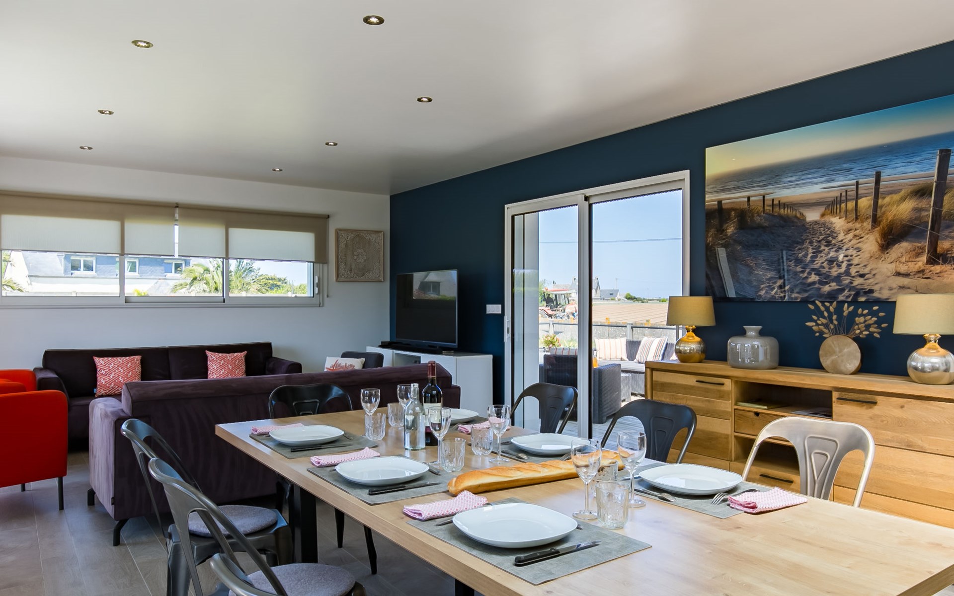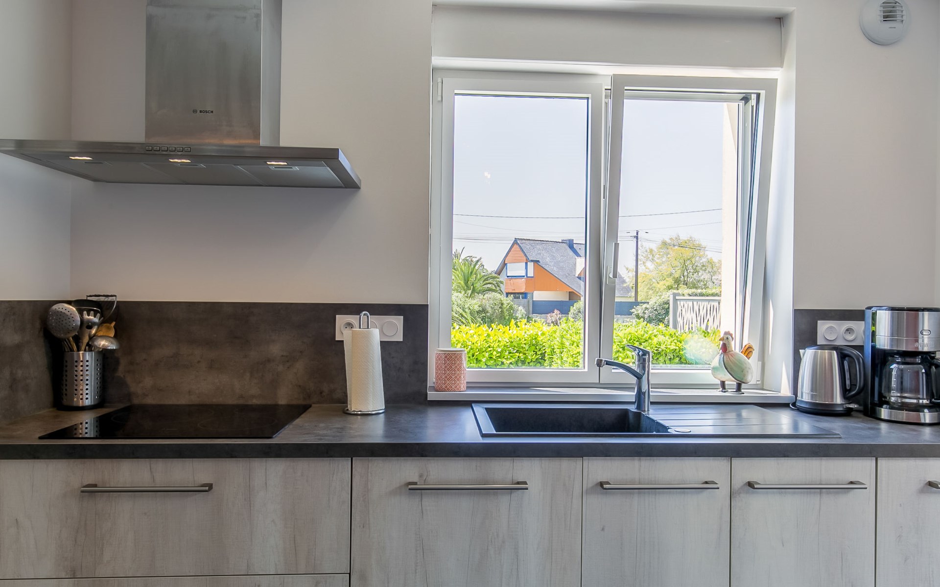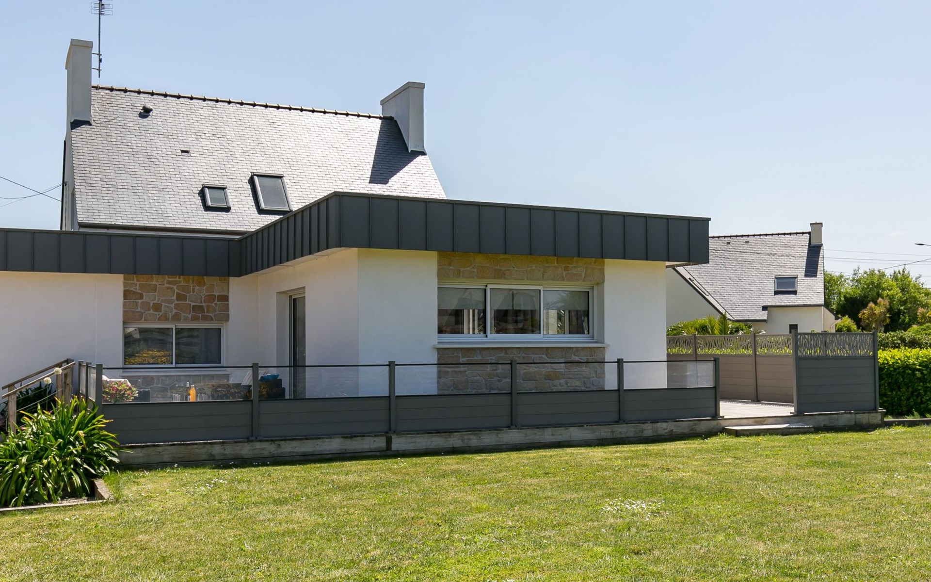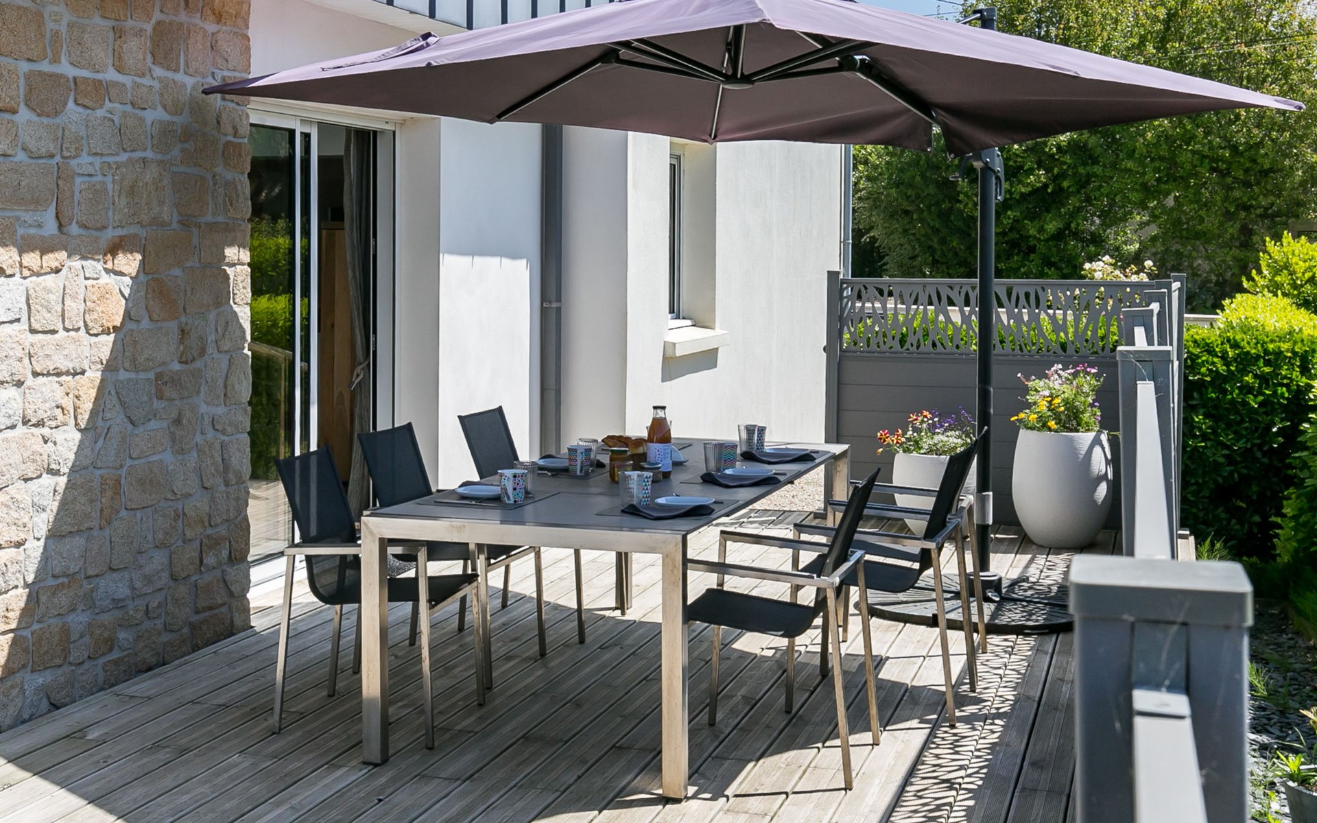 Modern, beautiful, comfortable single-family house "Maison du Venec". 550 m from the centre of Santec, 5 km from the centre of Roscoff, 5 km from the centre of Saint-Pol-de-Léon, in a quiet position in the residential district, 550 m from the sea, 550 m from the beach, in a cul-de-sac. Private: property 1'000 m2 (fenced), large, well-kept garden with lawn and wildlife garden, parking (for 3 cars) on the premises. Shop 5 km, grocery 600 m, supermarket 5 km, shopping centre 5.5 km, restaurant 3 km, bakery 450 m, bus stop "Mairie" 500 m, sandy beach "Plage du Pouldu" 550 m, thermal baths "Thalasso Roscoff" 5 km. Sports harbour 5.4 km, marina 6 km, golf course (9 hole) 19 km, surf school 2.8 km, sailing school 5 km, walking paths from the house 500 m. Nearby attractions: Plage du Dossen, Île de Siek 3 km, Jardin exotique Roscoff, Île de Batz 5.5 km, Carantec 15 km, Plage 14 km, Château de Kerjean 21 km, Morlaix 26 km. Hiking paths: GR34, sentier des douaniers 550 m.