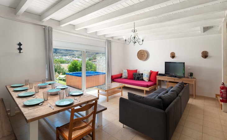 The Villa is Located only 300 meters from the beach, with a short walk to everything you need. Nice greek Tavernas, shops, cafeterias, minimarkets, bars, the beach, etc.