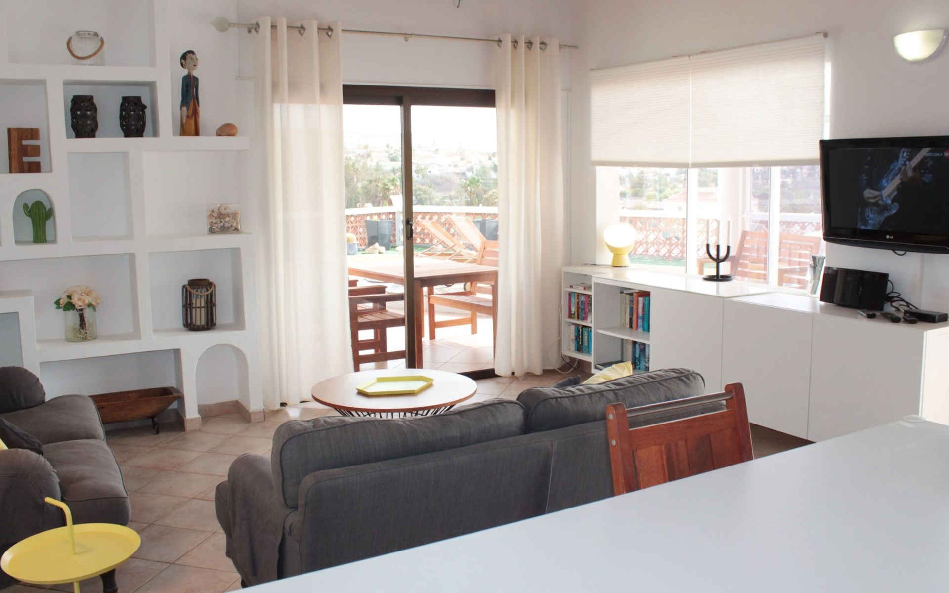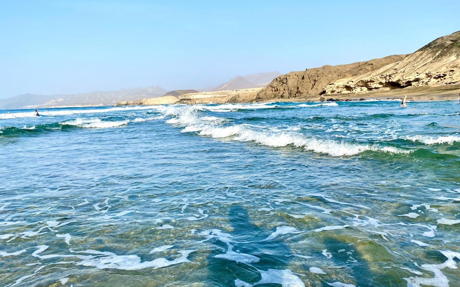 The more touristy town of Costa Calma is only 5 kilometres away, where you will find everything you need. Supermarkets, restaurants, bars, cafés, shops, boutiques, bike hire, car hire, hotels, doctors, pharmacies, etc. Here in La Pared there is a mini market with daily fresh Italian bread, a restaurant, a café, a golf range, a small hotel and otherwise a lot of peace and relaxation with spectacular sunsets and picturesque west coast.