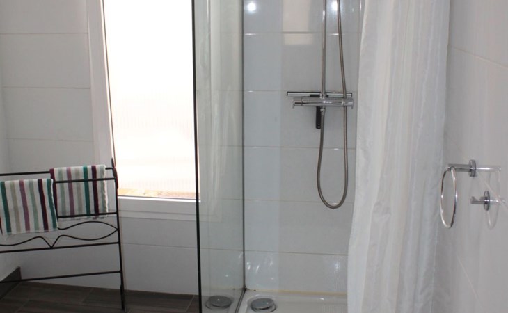 The huge terrace with a fantastic panoramic view over the village and as far as the sea has a seating area with space for 6 people. There are 2 sun loungers and a brick-built barbecue. The awning protects you from the sun, which you can enjoy to the full here thanks to the south-facing orientation. An outdoor shower is located in the entrance area in the beautifully planted front garden, which can also be used as well as the existing swing.