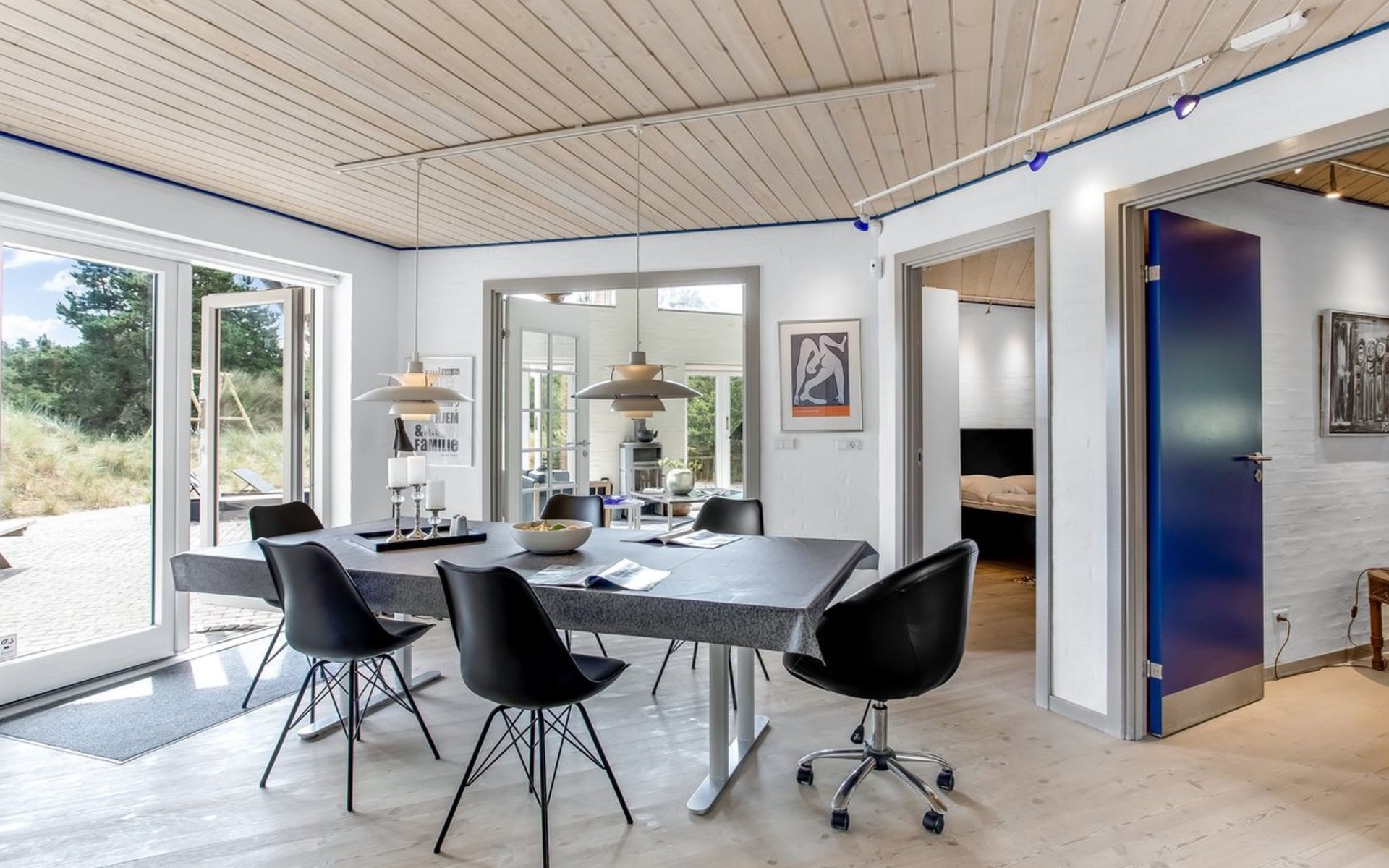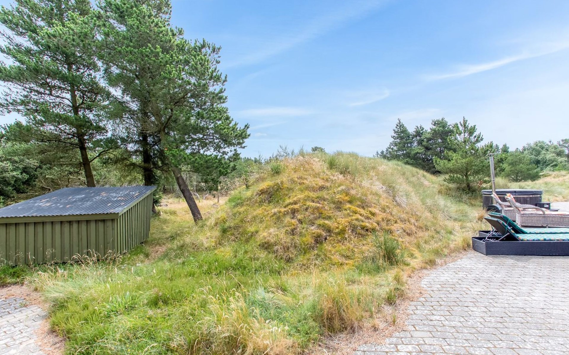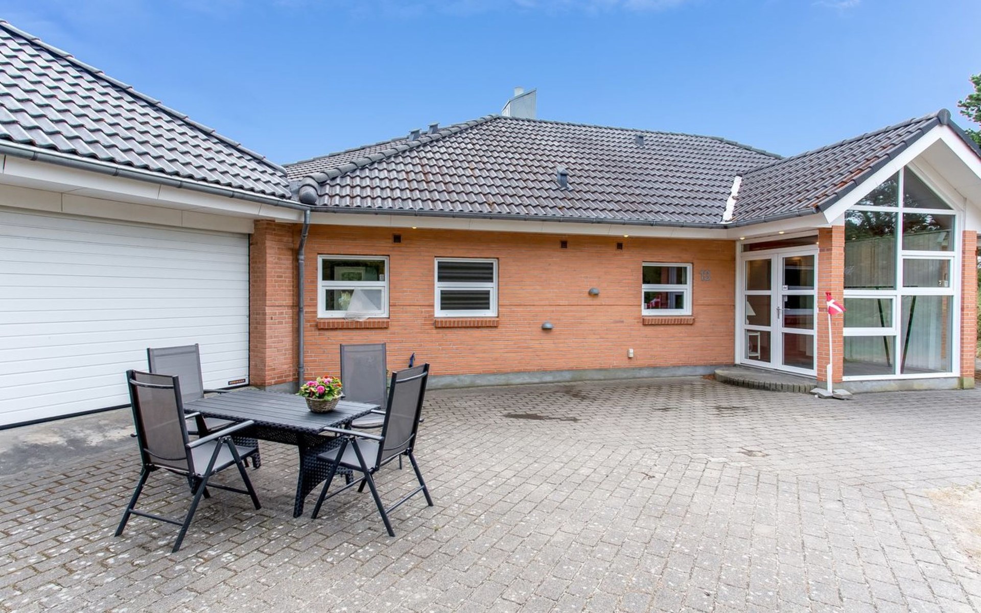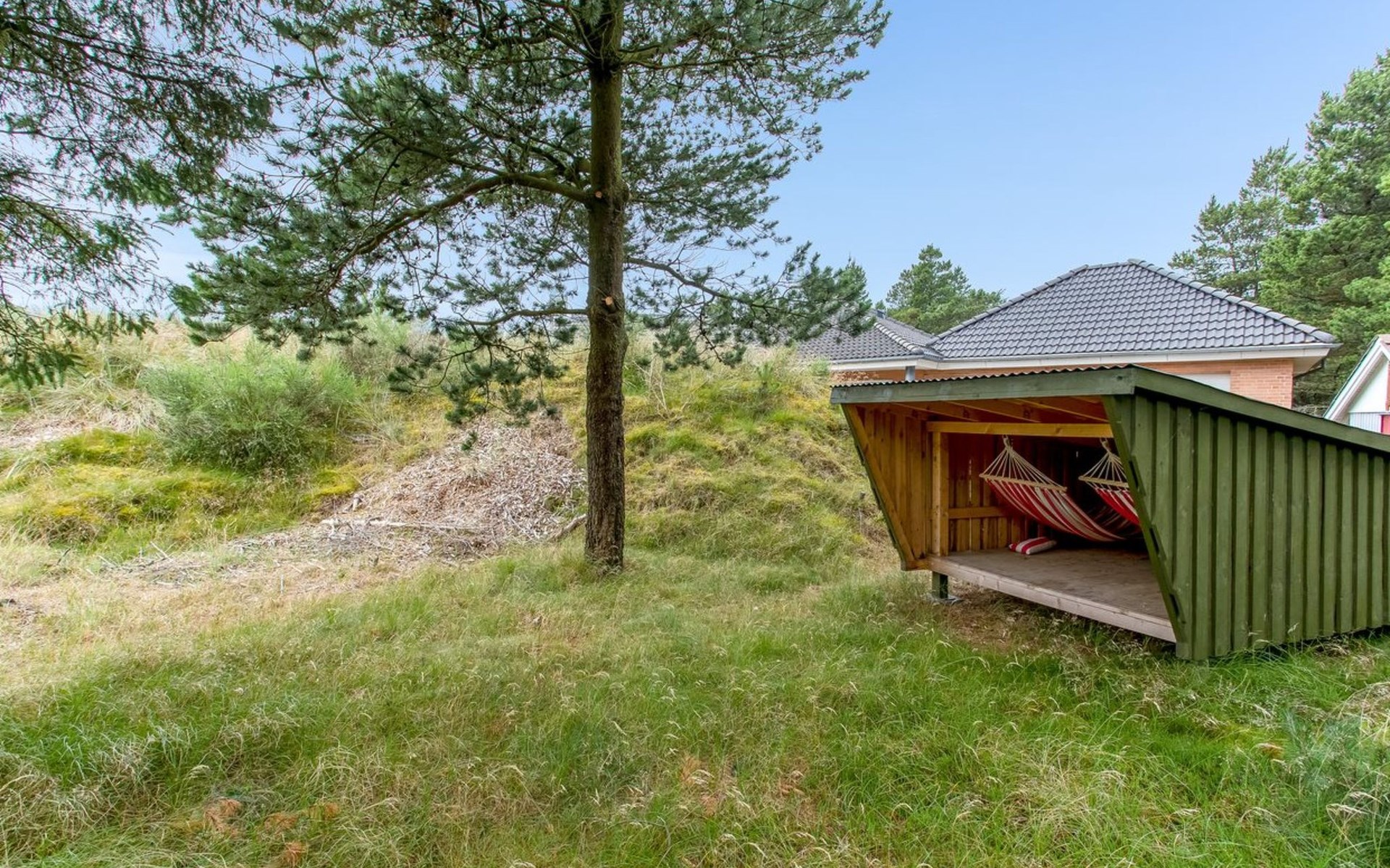 Single-family house, built in 2000. 1.2 km from the sea. Private: natural state property 3'000 m2. Terrace (100 m2), children's playground (swing). In the house: washing machine, tumble dryer. Parking at the house. E-charging station. Grocery 1 km. The owner does not accept any youth groups.