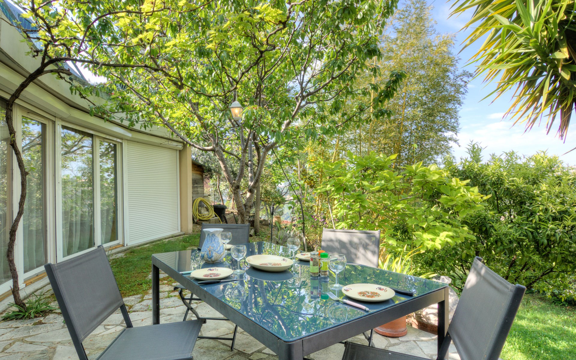 Small residence "Agora". Above Nice, in the district of Corniche Magnan, in a quiet, sunny position on top of a hill, in the residential district, 4.5 km from the sea, 4.5 km from the beach. Private: well-kept garden (fenced) with lawn 171 m2. Barbecue. Grocery 600 m, supermarket 600 m, shopping centre 2.6 km, restaurant 500 m, bakery 950 m, bus stop "75 / 75D" 10 m, railway station "Nice-Ville" 5.4 km, shingle beach "publique" 4.5 km. Golf course (18 hole) 16.5 km, riding stable 4 km. Nearby attractions: Place Massena 6.4 km, Promenade des Anglais 4.8 km, Musée Art Moderne Art Contemporain 7.6 km, Marineland Antibes 21 km, Monaco 27 km, Cannes 35 km. Well-known lakes can easily be reached: Saint Cassien 55 km. Hiking paths: Col de Vence 34 km. Please note: car recommended.