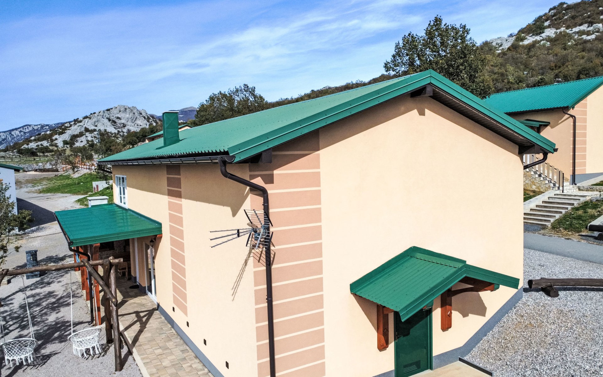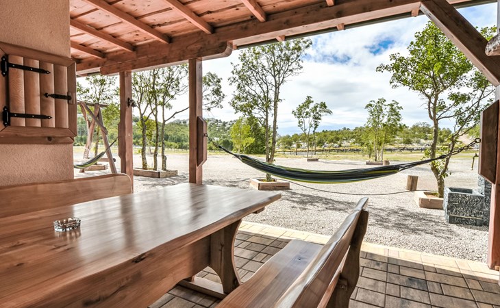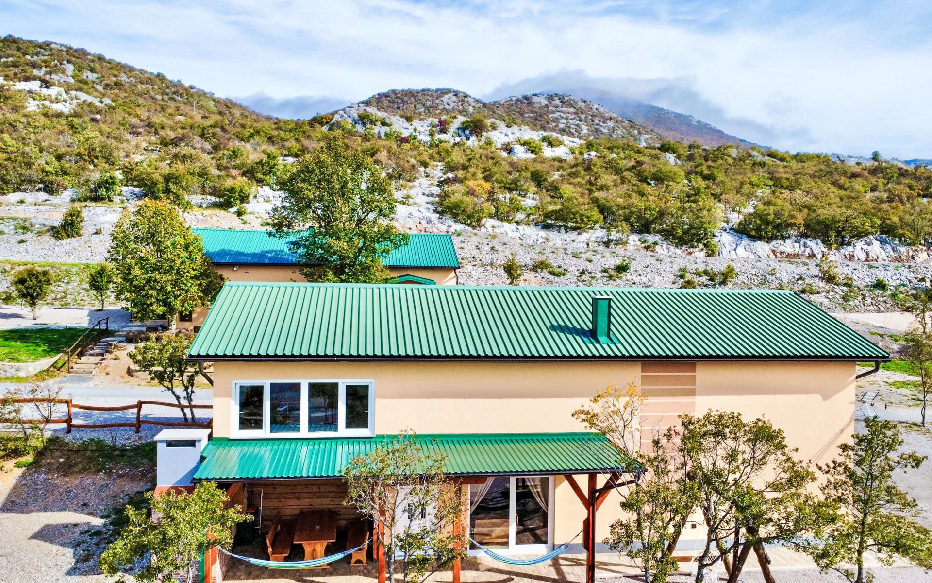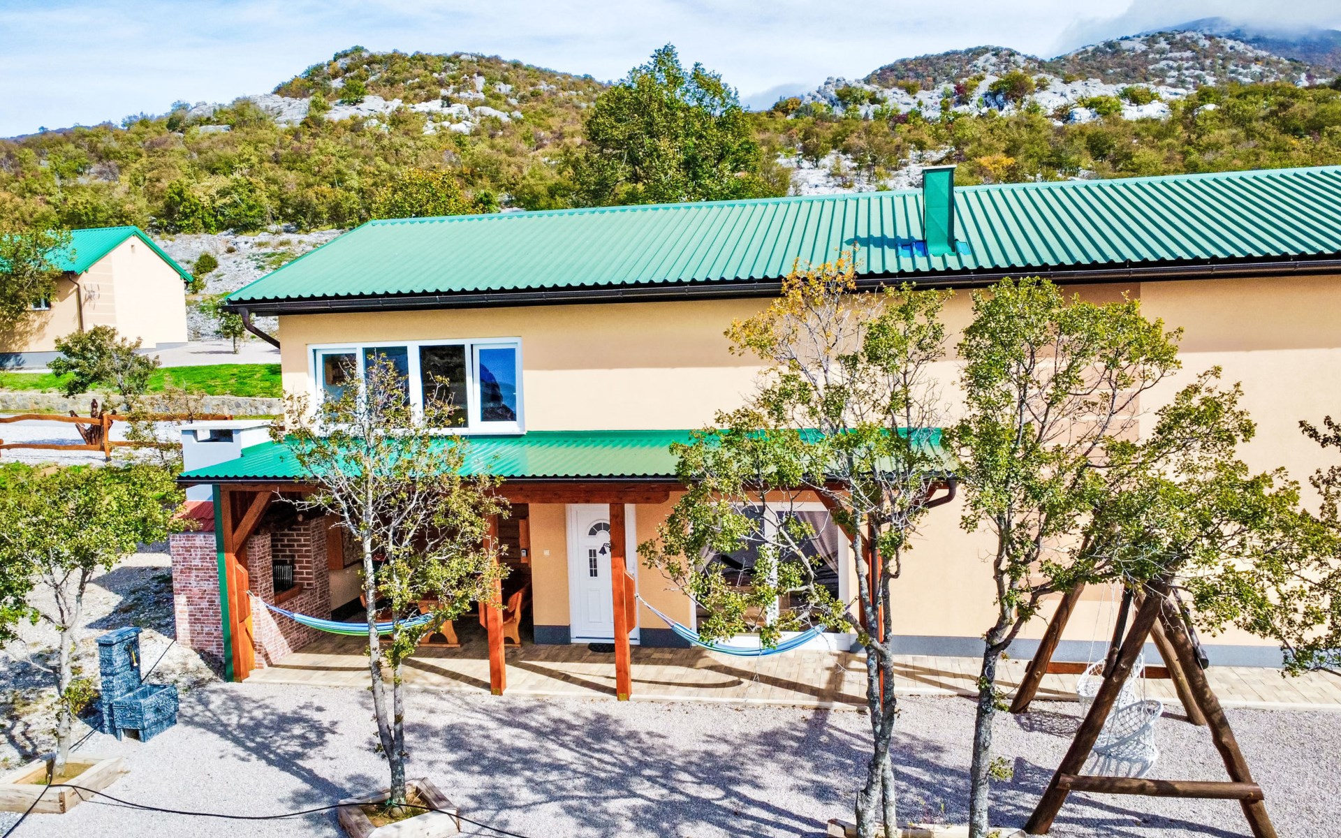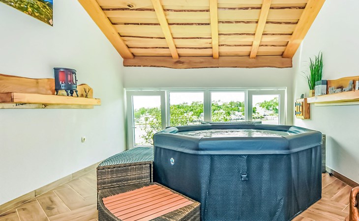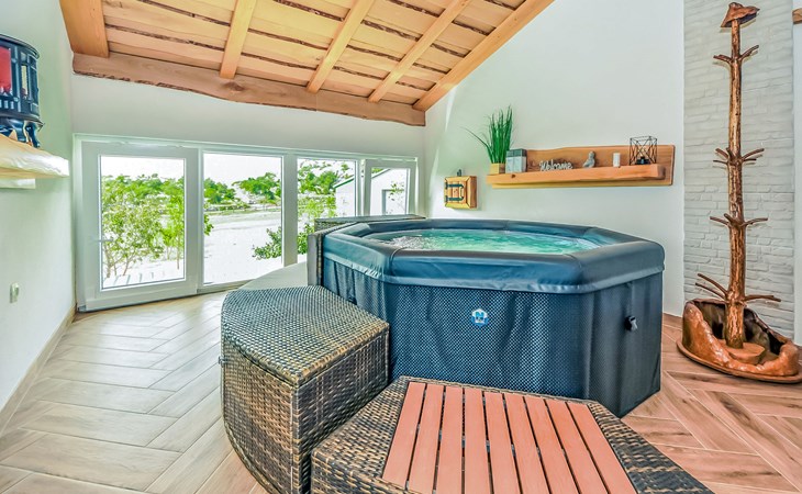 Ledenik Cesarički 10 km from Karlobag: Single-family house "Iva & Lea", built in 2024. In a sunny position, 11 km from the sea, 11 km from the beach. For shared use: property 6'000 m2. Hot tub. Private: garden furniture, barbecue. In the house: internet access, washing machine. Parking (for 3 cars) at the house on the premises. Shop 10 km, restaurant 10 m, bus stop 11.3 km, pebble beach 10 km.