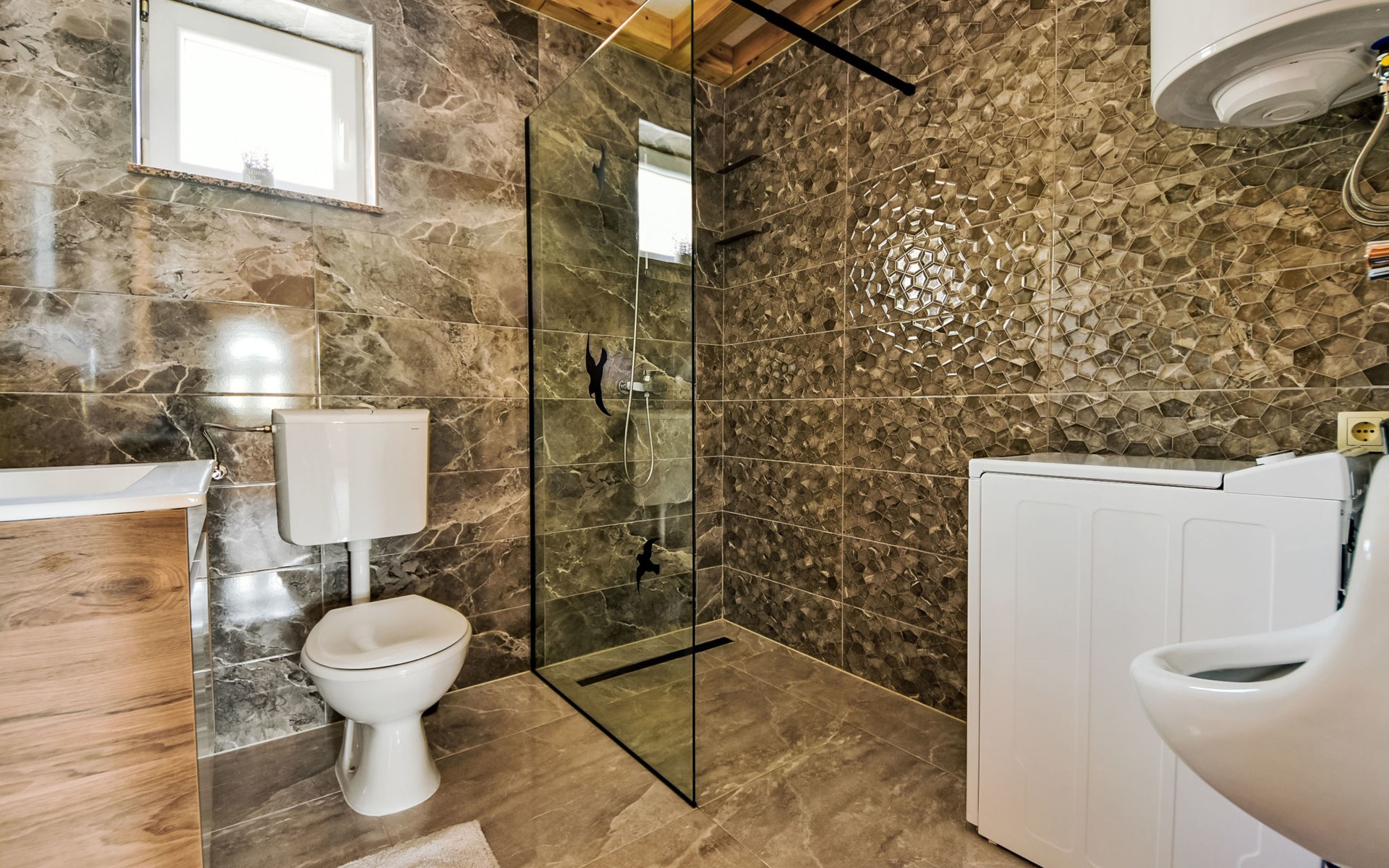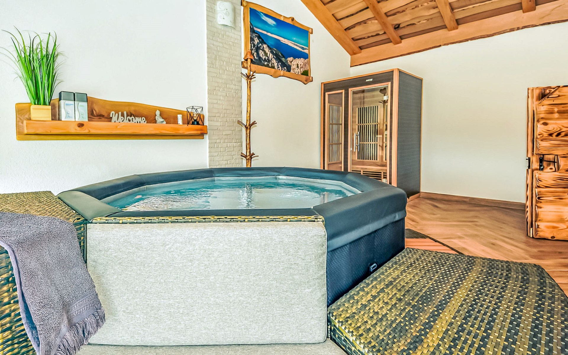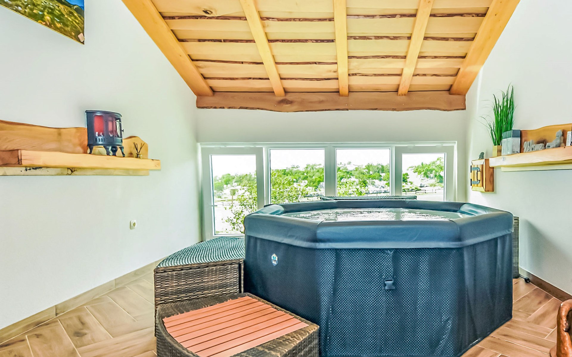 Ledenik Cesarički 10 km from Karlobag: Single-family house "Iva & Lea", built in 2024. In a sunny position, 11 km from the sea, 11 km from the beach. For shared use: property 6'000 m2. Hot tub. Private: garden furniture, barbecue. In the house: internet access, washing machine. Parking (for 3 cars) at the house on the premises. Shop 10 km, restaurant 10 m, bus stop 11.3 km, pebble beach 10 km.